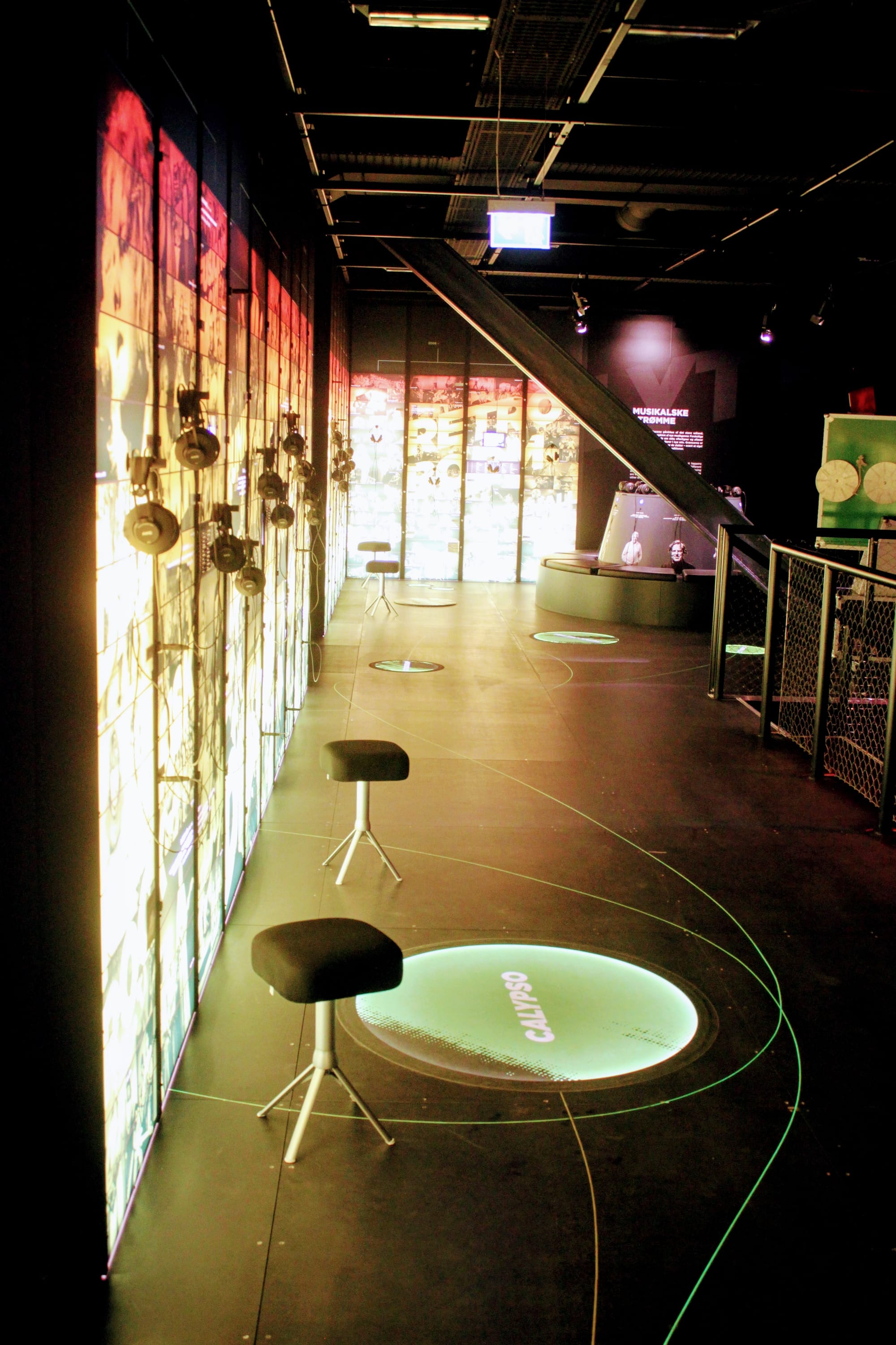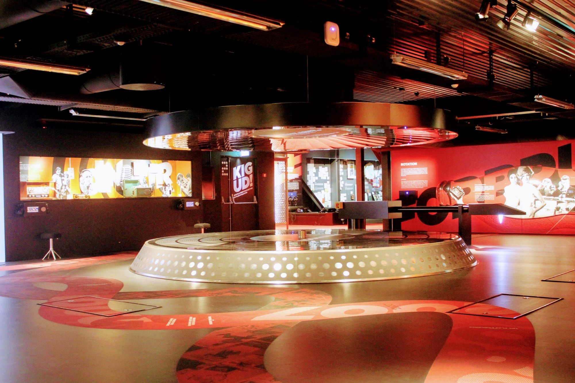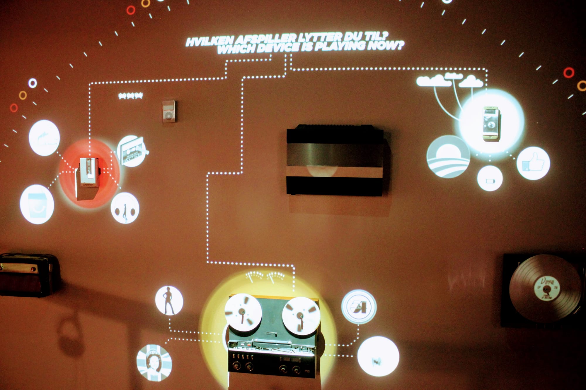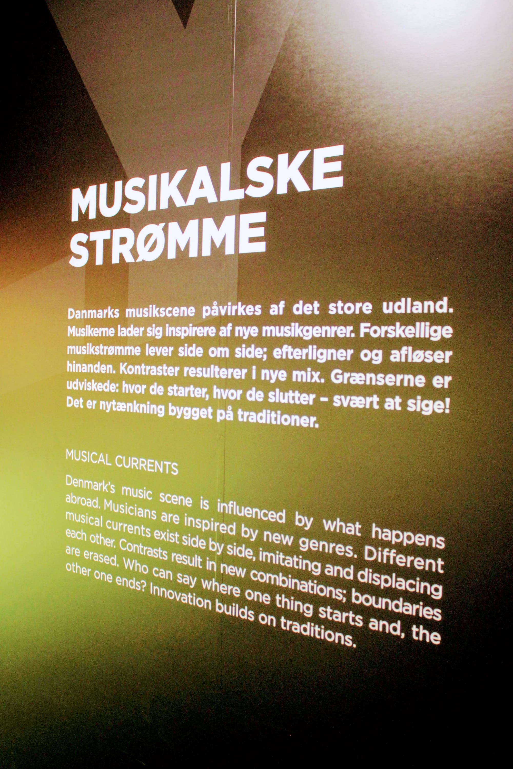 Tada buvo salė su daugybe ausinių. Jose gali klausytis žinomiausių daniškų kūrinių ir perkišti jungiklius vis klausant kitos dainos, taip naviguodamas per stilius ir laimnečius: