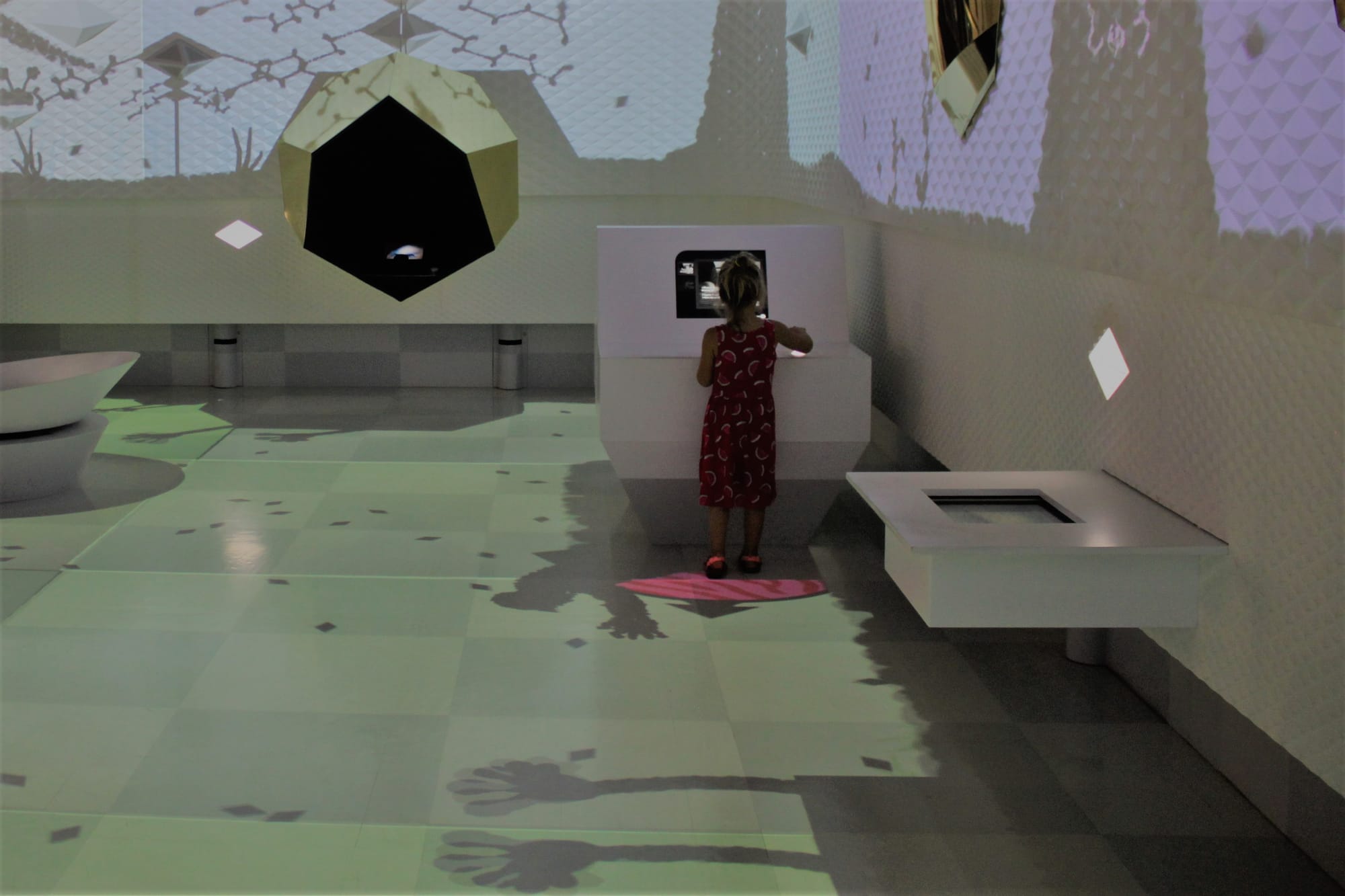 O mes su Emile tuo tarpu ėjom į animuotą ekspozicija, kur tau yra sukuriamas personalizuotas burbulas, kurį turi valdyti nesusidauždamas su kitais: