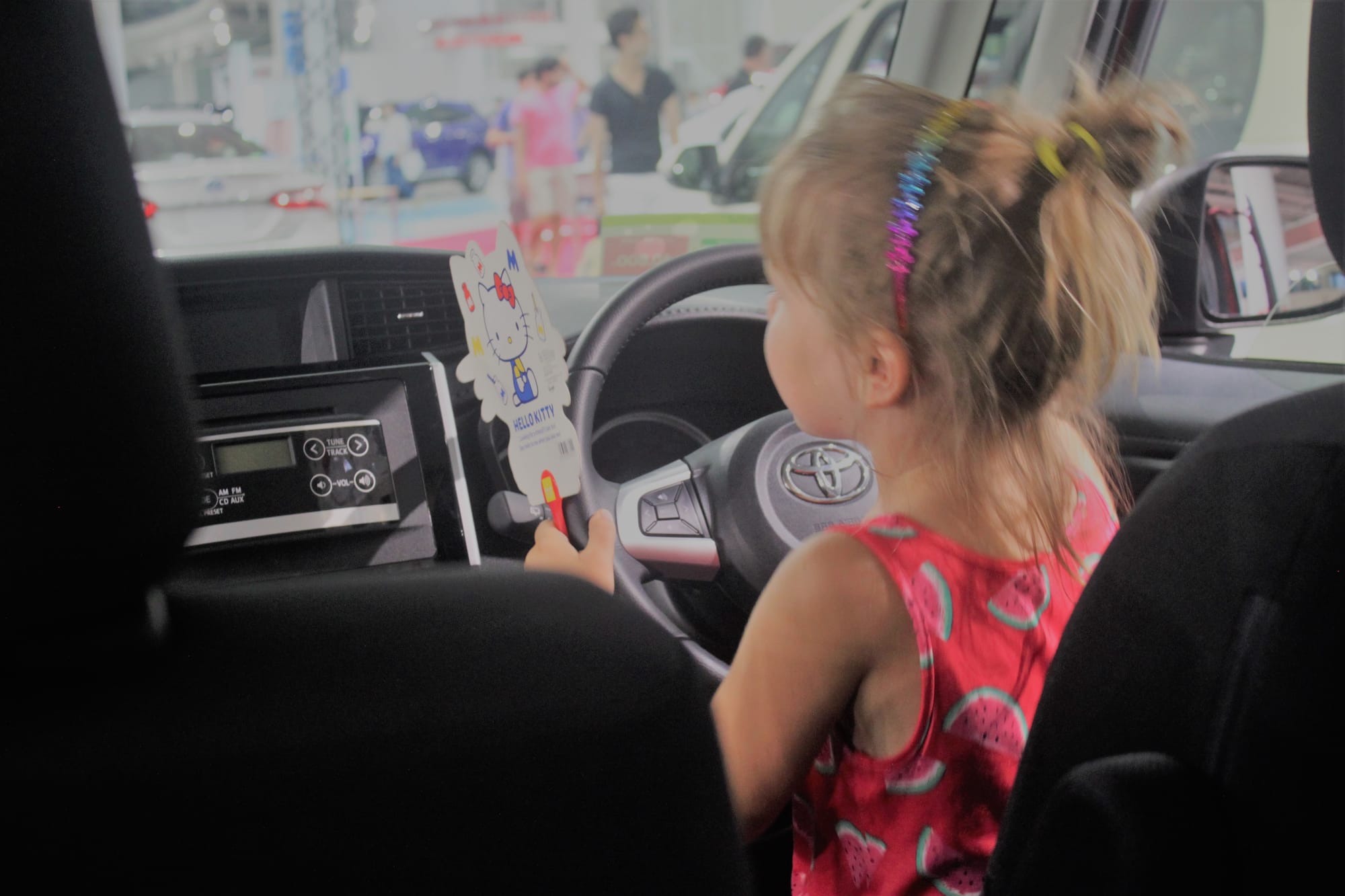 Paskui prie pat rato pamatėme tokį TOYOTOS kaip ir centrą, kuriame pristatomi įvairūs seni, nauji bei būsimi modeliai. O mes, kaip žinia, gana lojalūs gerbėjai esame, Emilė ypač, nes "vežė" mus visais automobiliais į Lietuvą, Angliją, Daniją, Kinija ir Pakistaną.