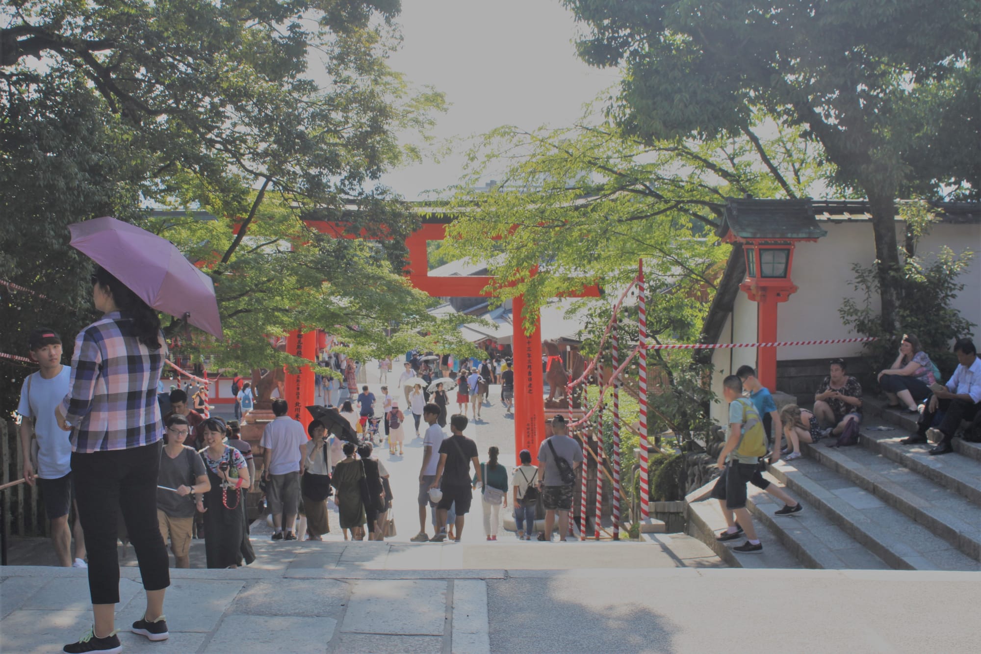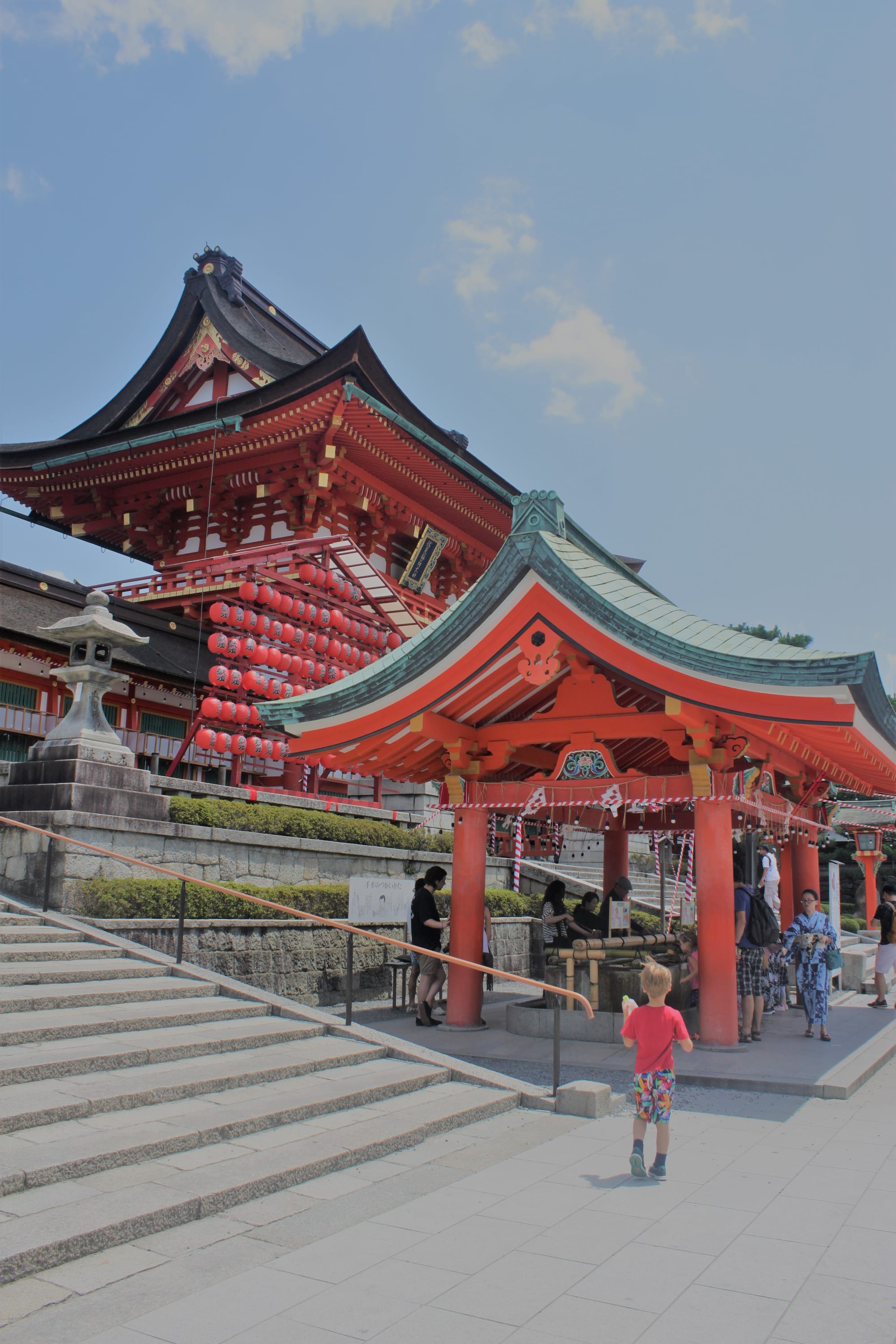 Pradėjome nuo to, kuo Kyotas ir garsus - šventyklų, o tiksliau nuo vienos, pagal atsiliepimus pačios įspūdingiausios. Na, ir mums jos pakako visai dienai. Mes religijose nelabai gaudomės, tai aprašui pasitelksiu Wikipedia. Fushimi Inari Taisha šventykla yra pagrindinė Inari (tai yra ryžių dievas) tikėjimo šventovė, įsikūrusi būtent Kyoto pakraštyje. Šventykla įsikūrusi Inari kalno papėdėje, į kurį galima užkopti ir tai trunka apie dvi valandas ir tęsiasi keturis kilometrus. Todėl mums to visai KARŠTAI dienai ir pakako, į kitas šventyklas nebesuspėjome.