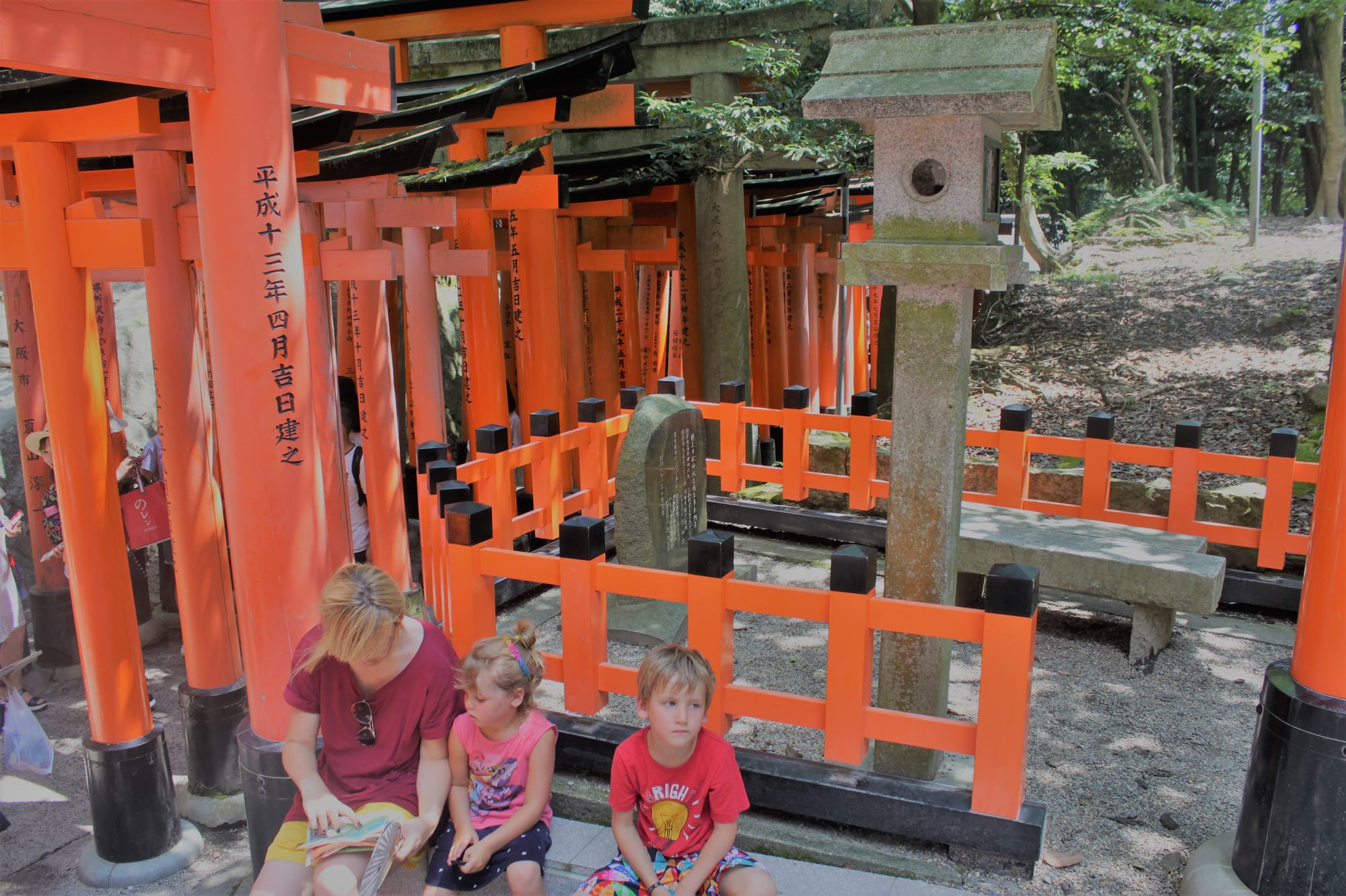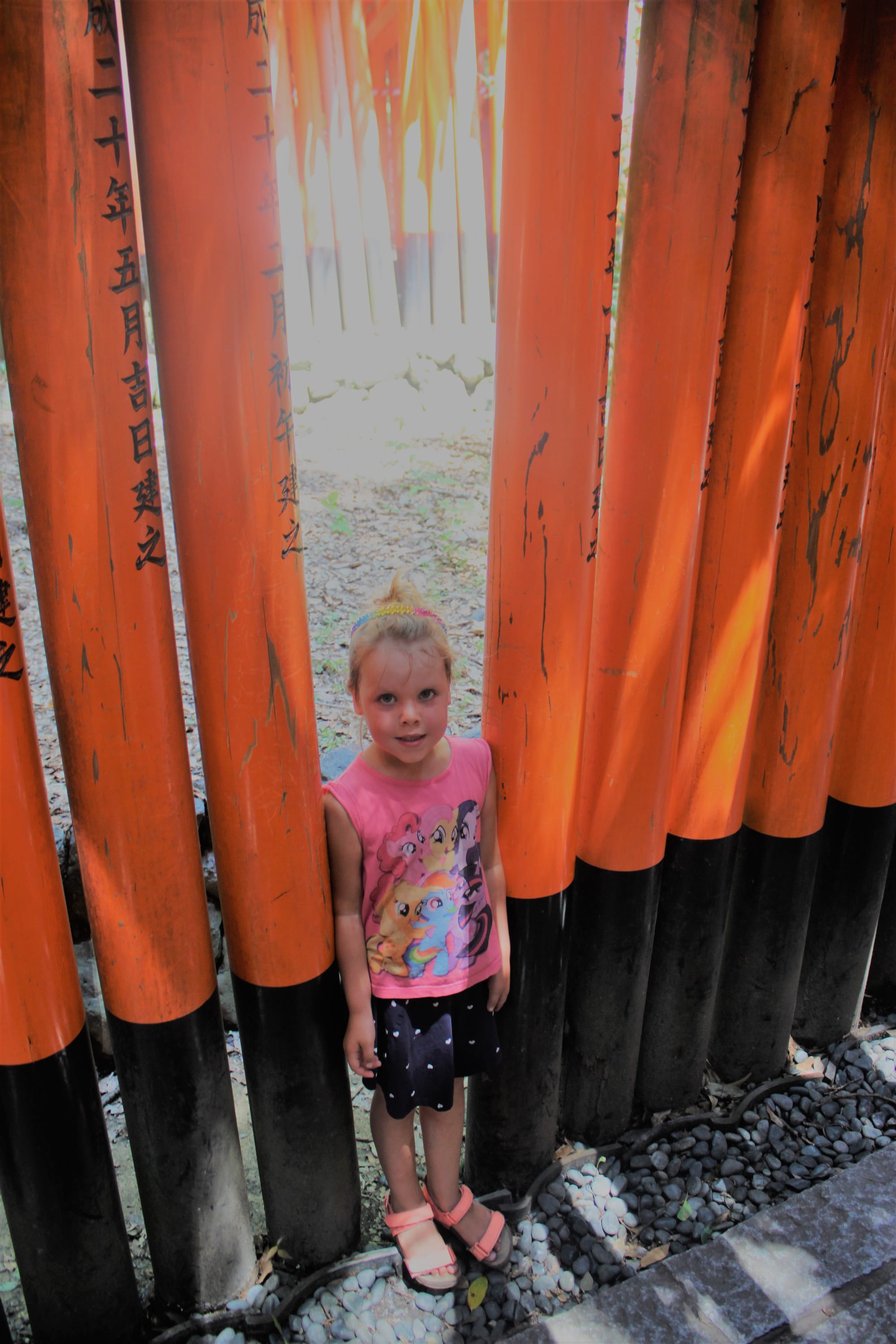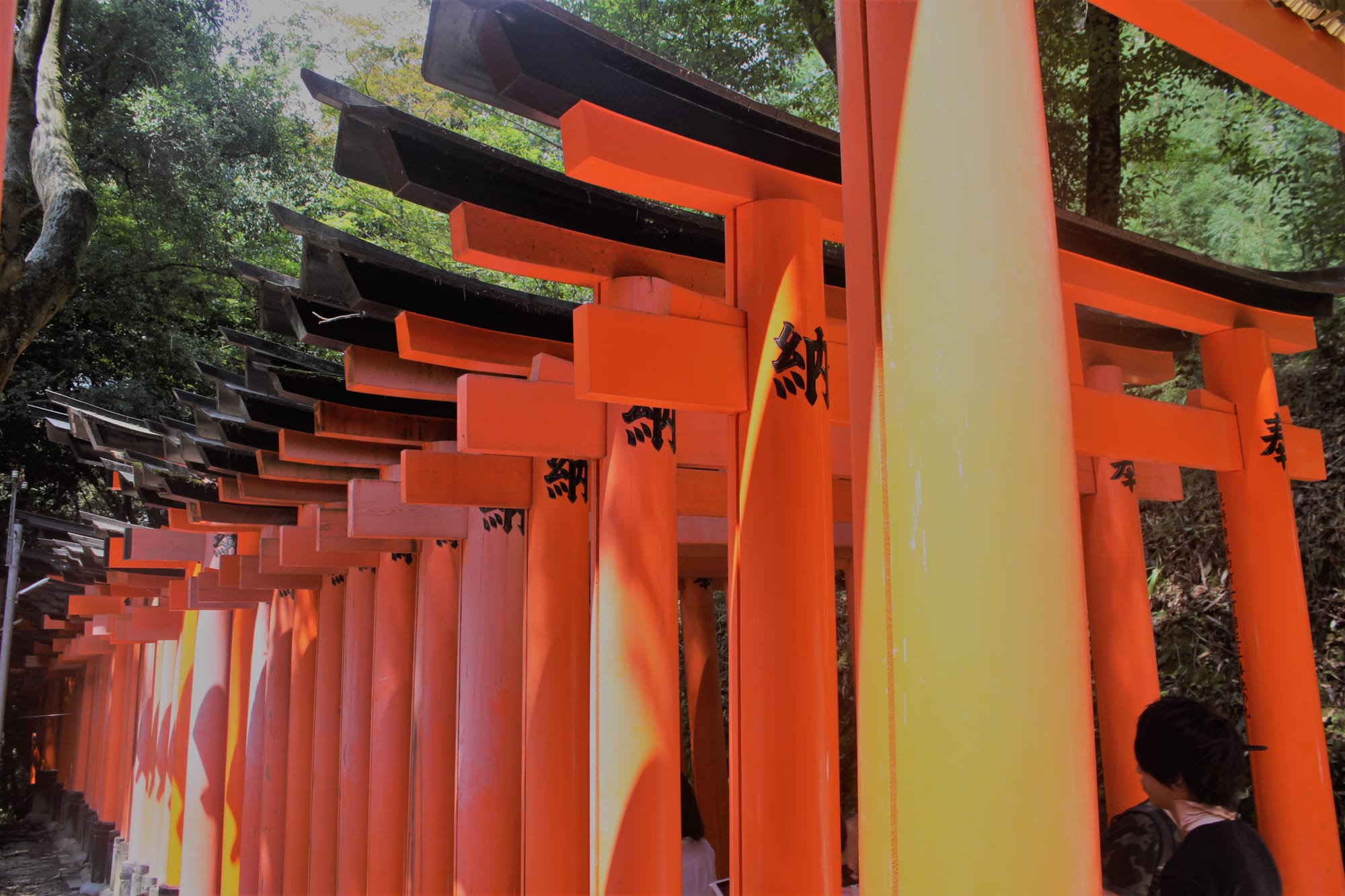 Visas tas kelias sudarytas iš daugiau nei dešimties tūkstančių tokių oranžinių vartų, suaukotų ir pastatytų žmonių. Tikrai įspūdinga. Tai vienas iš lankytiniausių objektų Japonijoje. Ir turistų tikrai buvo gausu. Mes viso kelio nepraėjome, bet tikrai nemažai.