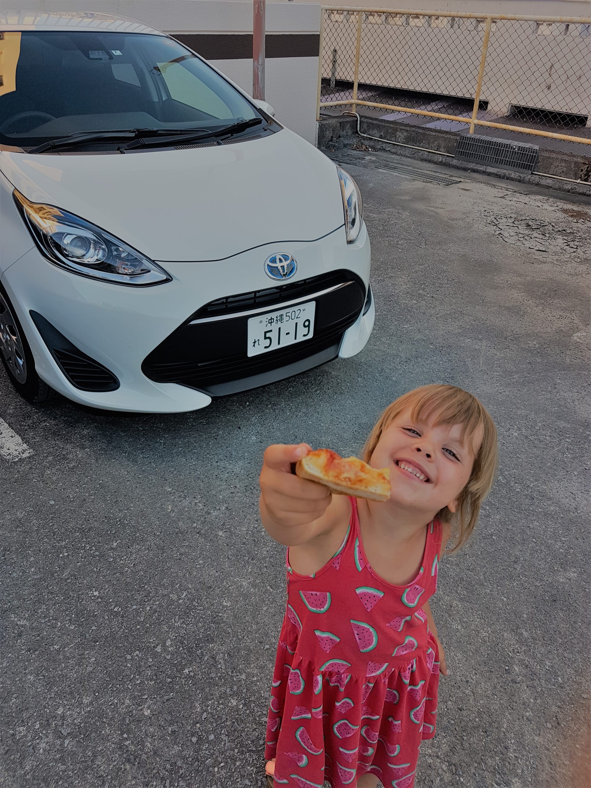 Nusileidę pasiėmėme išsinuomotą automobilį (gavome praktiškai naują hibridinę Toyotą su vaikų kėdutėmis) ir gyvenamąją vietą, kuriai pasiekti reikėjo pervažiuoti praktiškai visą salą (bet per porą valandų ji yra praktiškai visa pervažiuojama) pasiekėme jau sutemus, tad pavakarieniavom iš lūžom miegoti.
