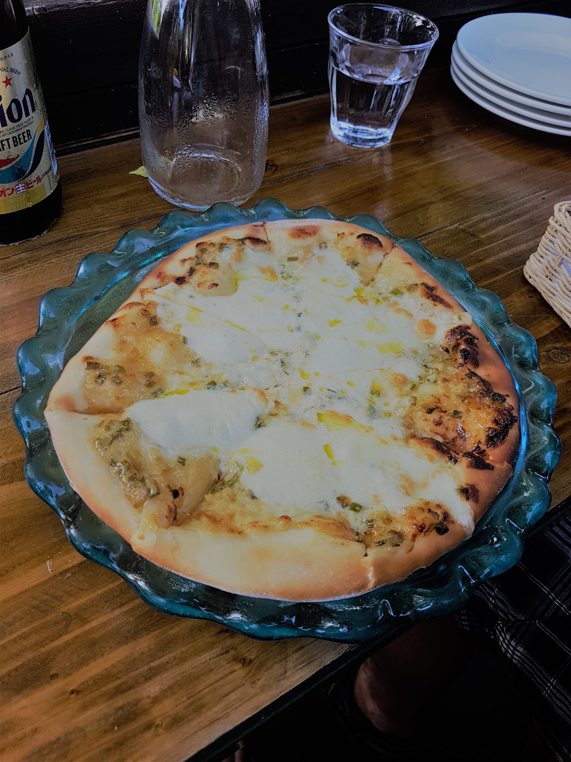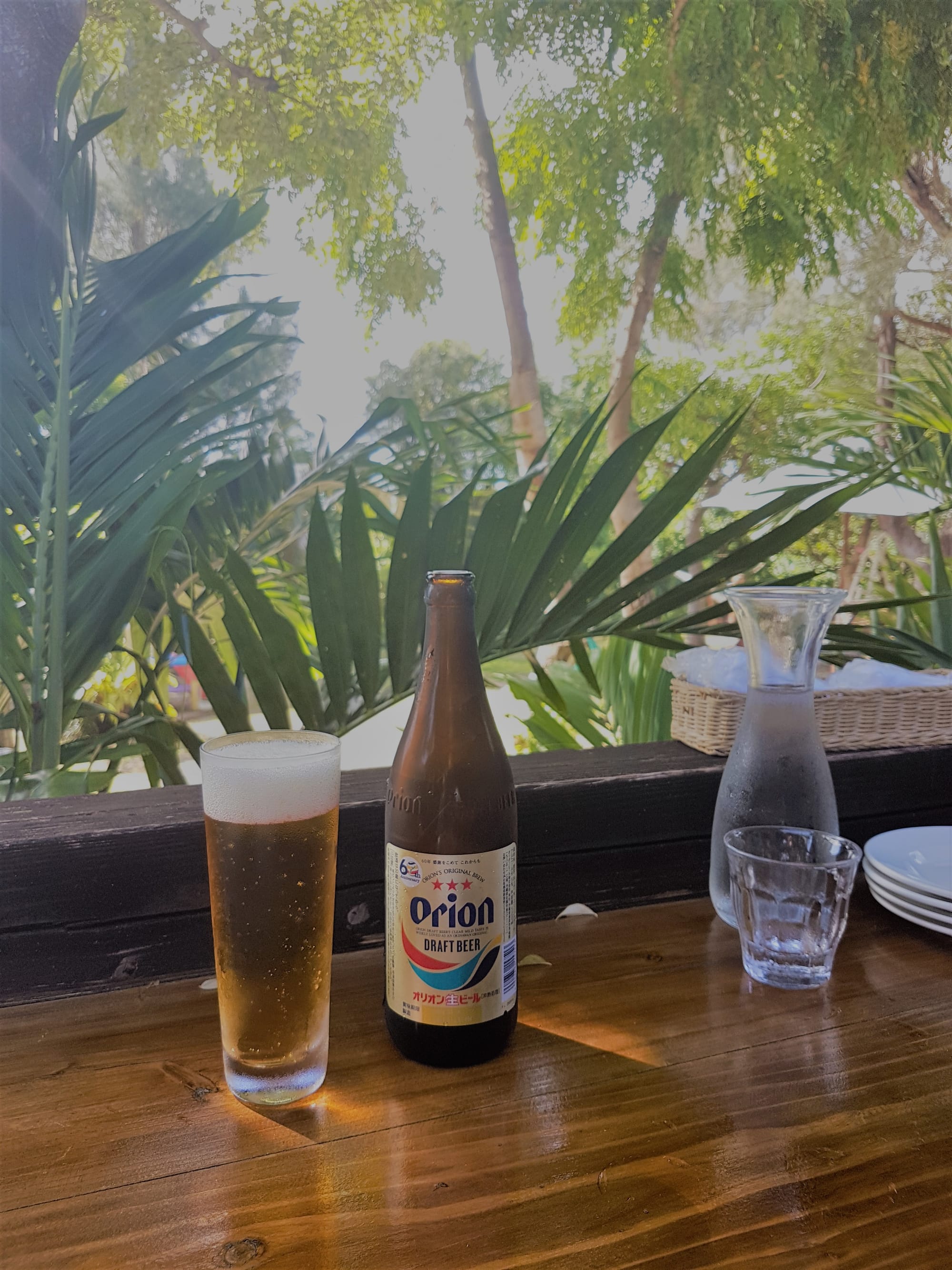 Po šių nesėkmingų maudynių sėdome į automobilį ir nutarėme pasivažinėti po apylinkes. Per tiltą nuvažiavome į kitą mažą salelę, ten radom jaukią kavinukę, atsigėrėm vietinio tikrai neblogo Orion alaus, užkandome (po truputį pagauname save grįžtant prie noro valgyti tokį maistą kaip pica ar pan. ) apsipirkome vakarienei (nes kolkas neradom aplink tinkamų kavinių). Pakeliui matėme tikrai neblogų paplūdimių, tad tikrai bus kur pasimurkdyti kitomis dienomis, nes būsime čia savaitę, iki pat atostogų pabaigos.