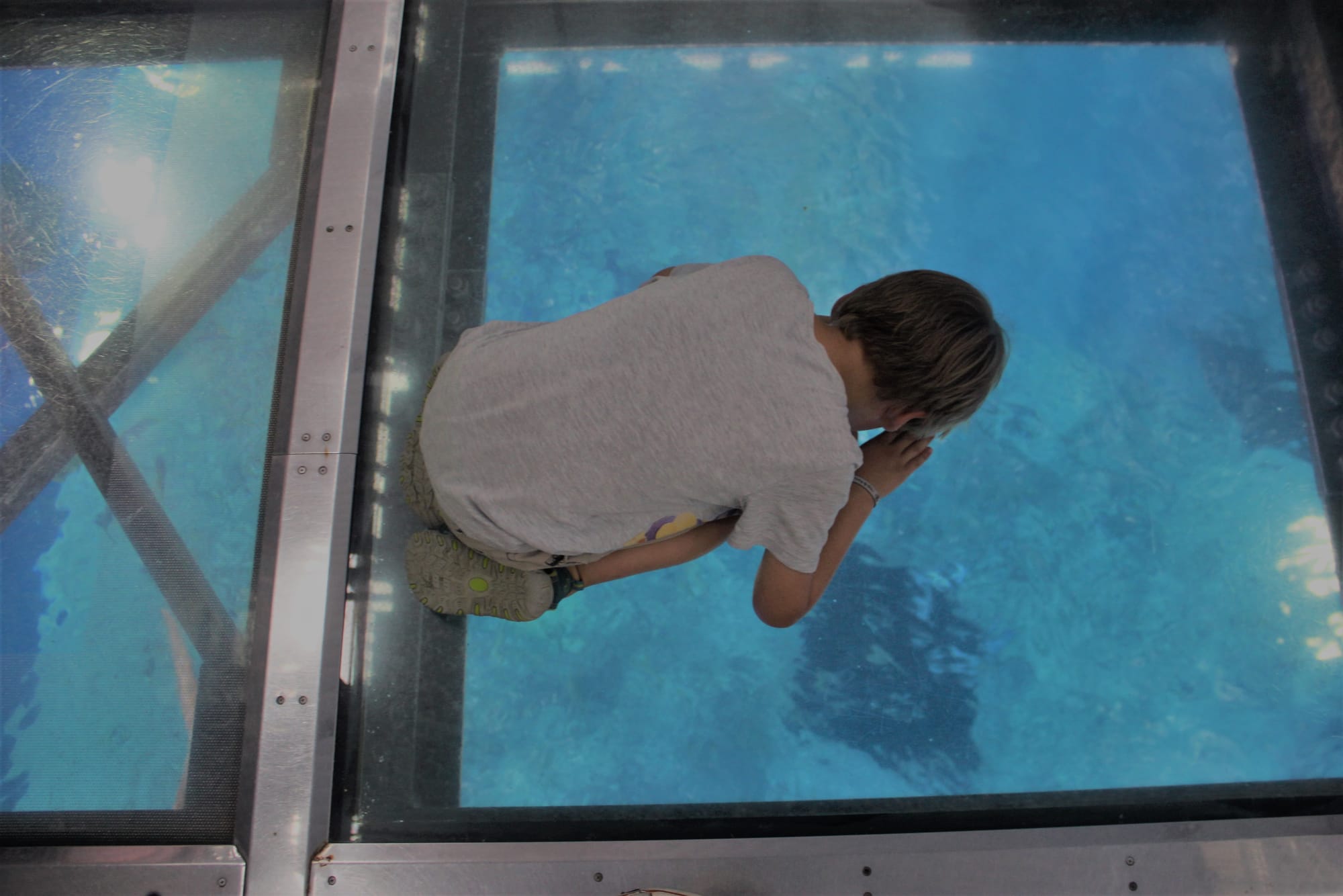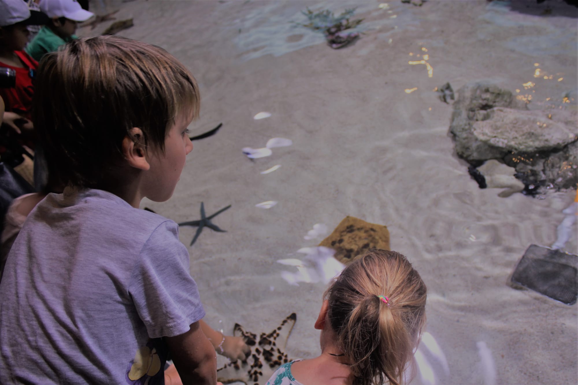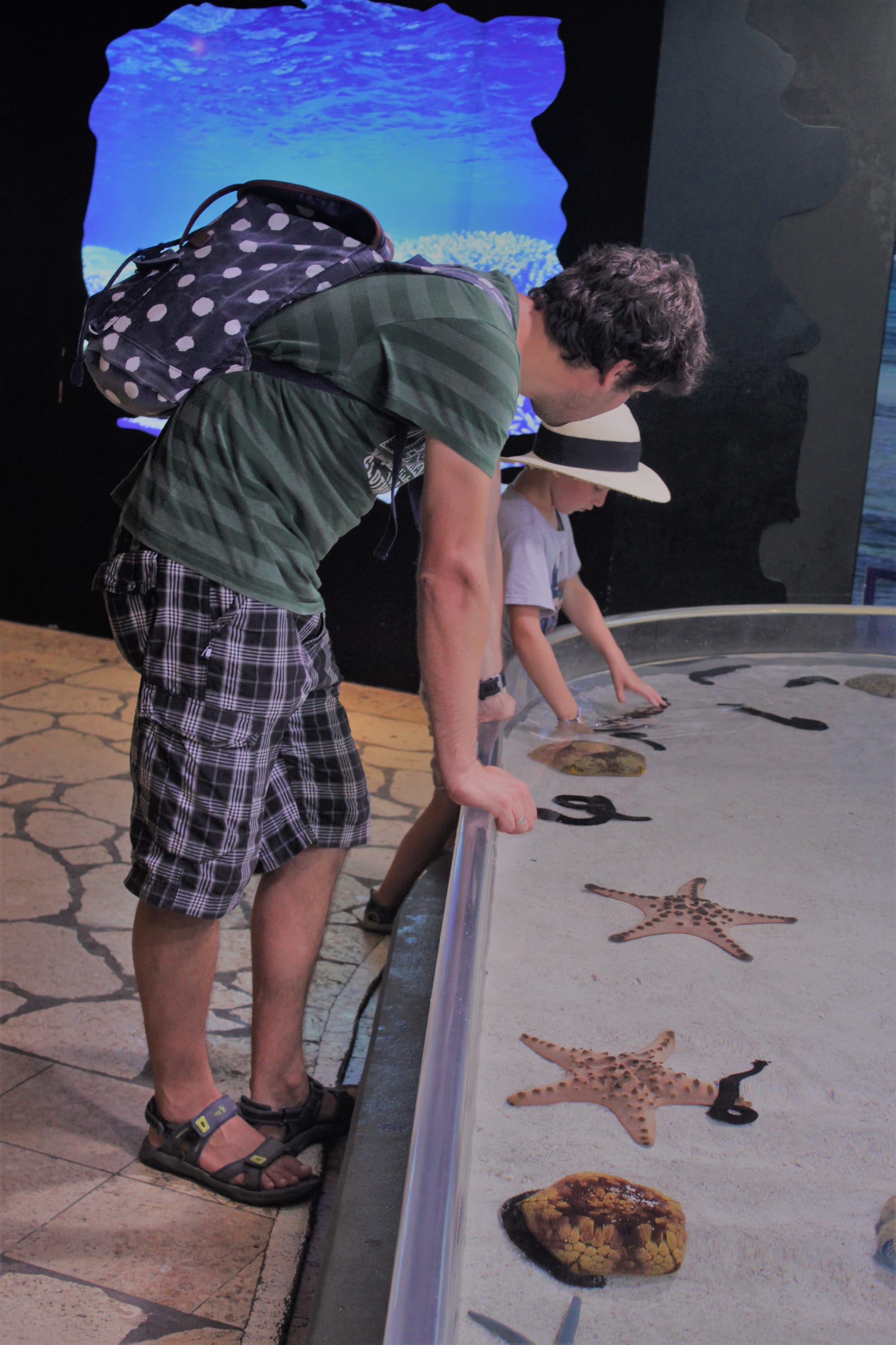 Čia va pirmasis akvariumas, kuriame Džiugas su Justu pažino jau daugelį koralų, žuvų ir jūros žvaigždžių, kuriuos pamatė nardydami su vamzdeliais jūroje prie namelio dvi dienas. Šalia mažame akvariume yra jūros žvaigždžių ir tokių jūros kirmėlių, kurios pasirodo yra vadinamos jūros agurkais ir viską tame baseinėlyje galima liesti rankomis.