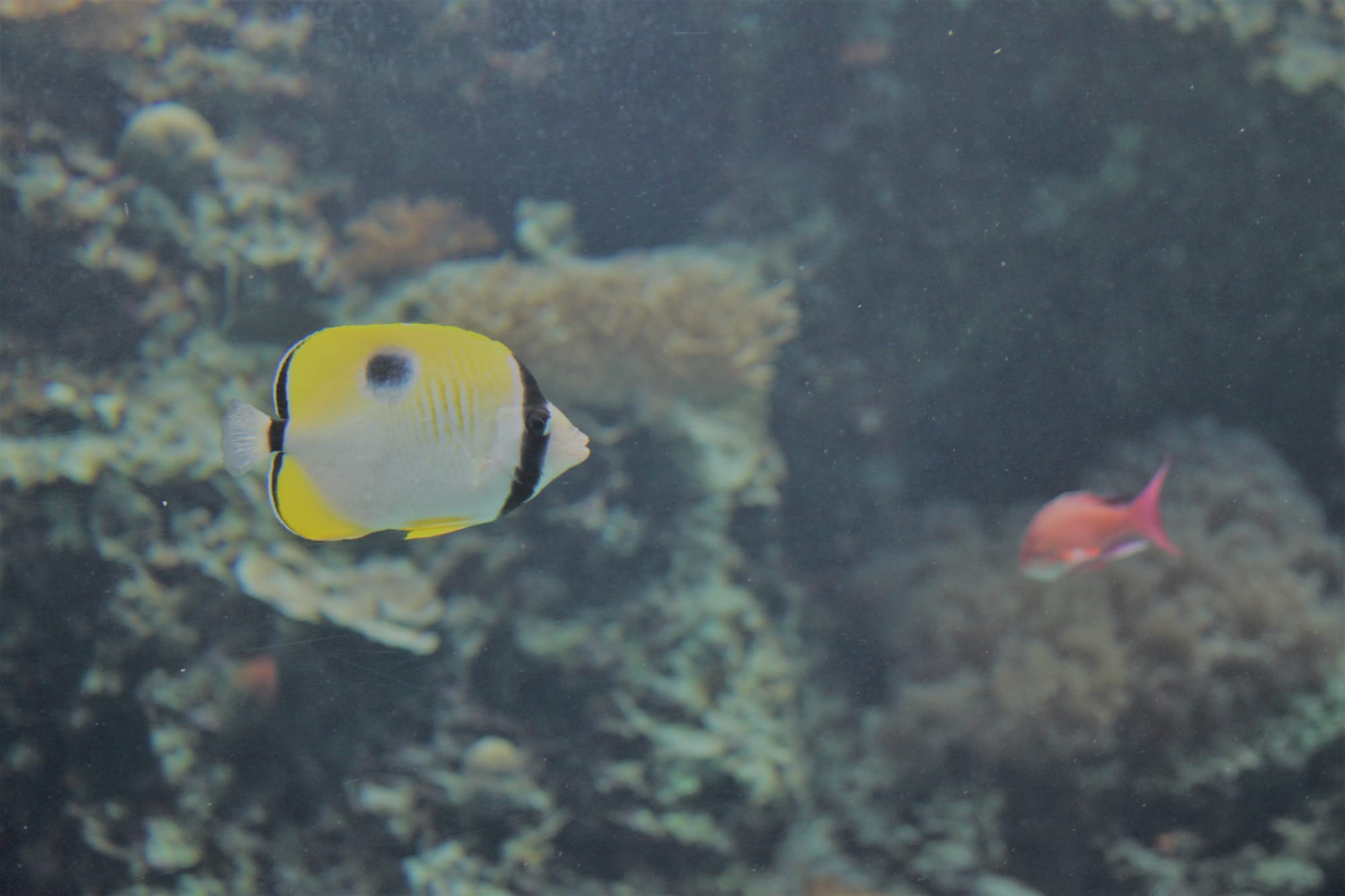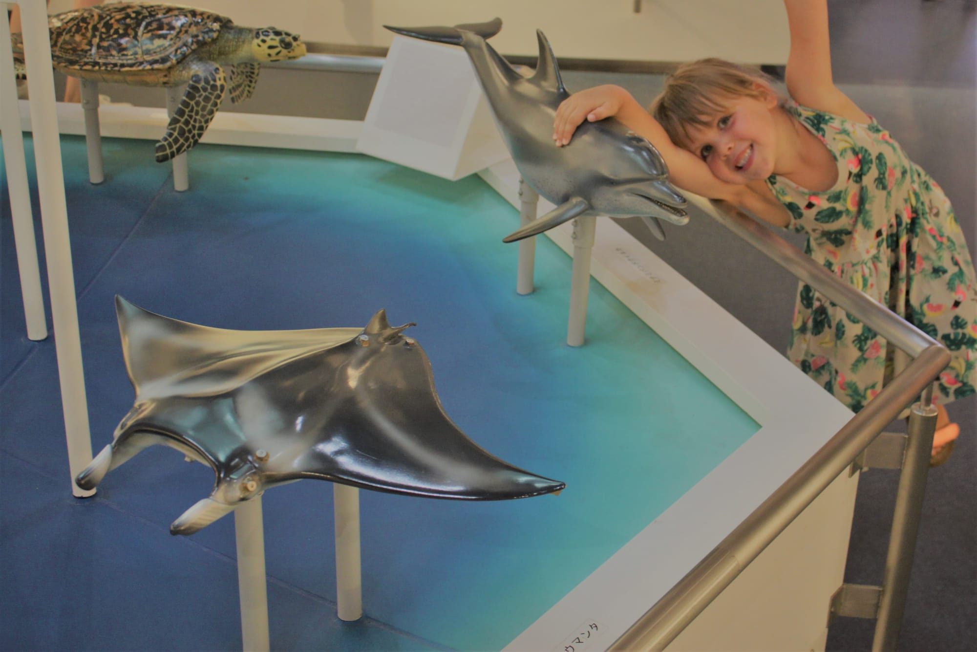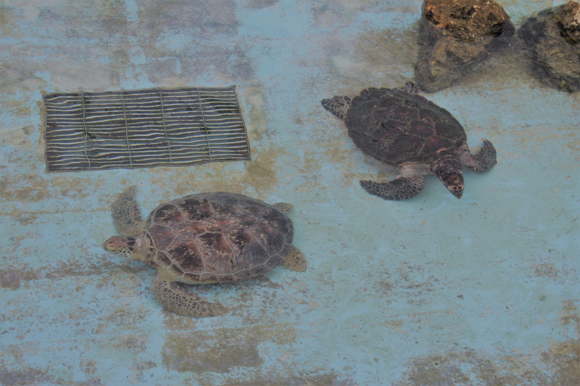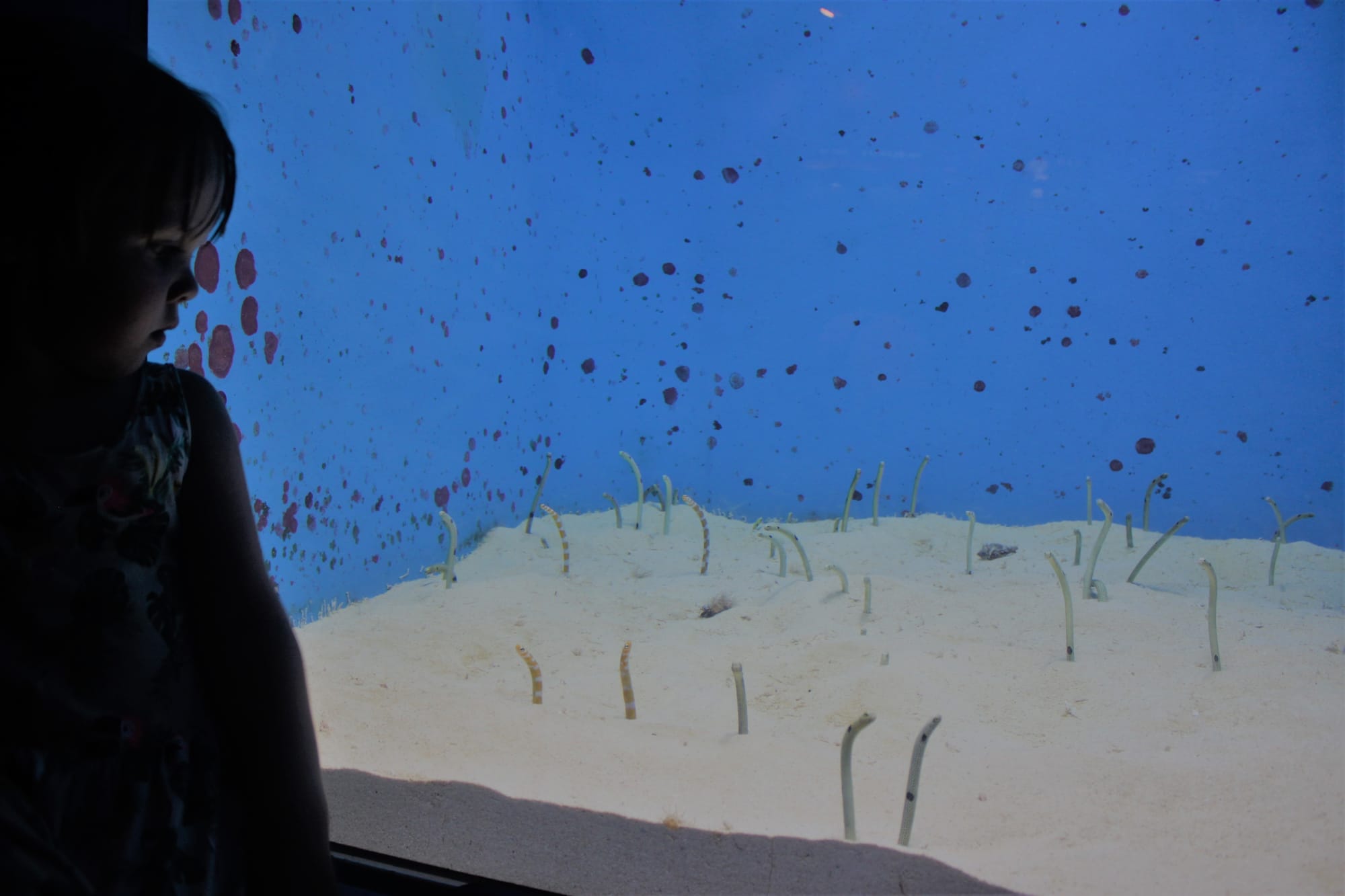 Čia va pirmasis akvariumas, kuriame Džiugas su Justu pažino jau daugelį koralų, žuvų ir jūros žvaigždžių, kuriuos pamatė nardydami su vamzdeliais jūroje prie namelio dvi dienas. Šalia mažame akvariume yra jūros žvaigždžių ir tokių jūros kirmėlių, kurios pasirodo yra vadinamos jūros agurkais ir viską tame baseinėlyje galima liesti rankomis.