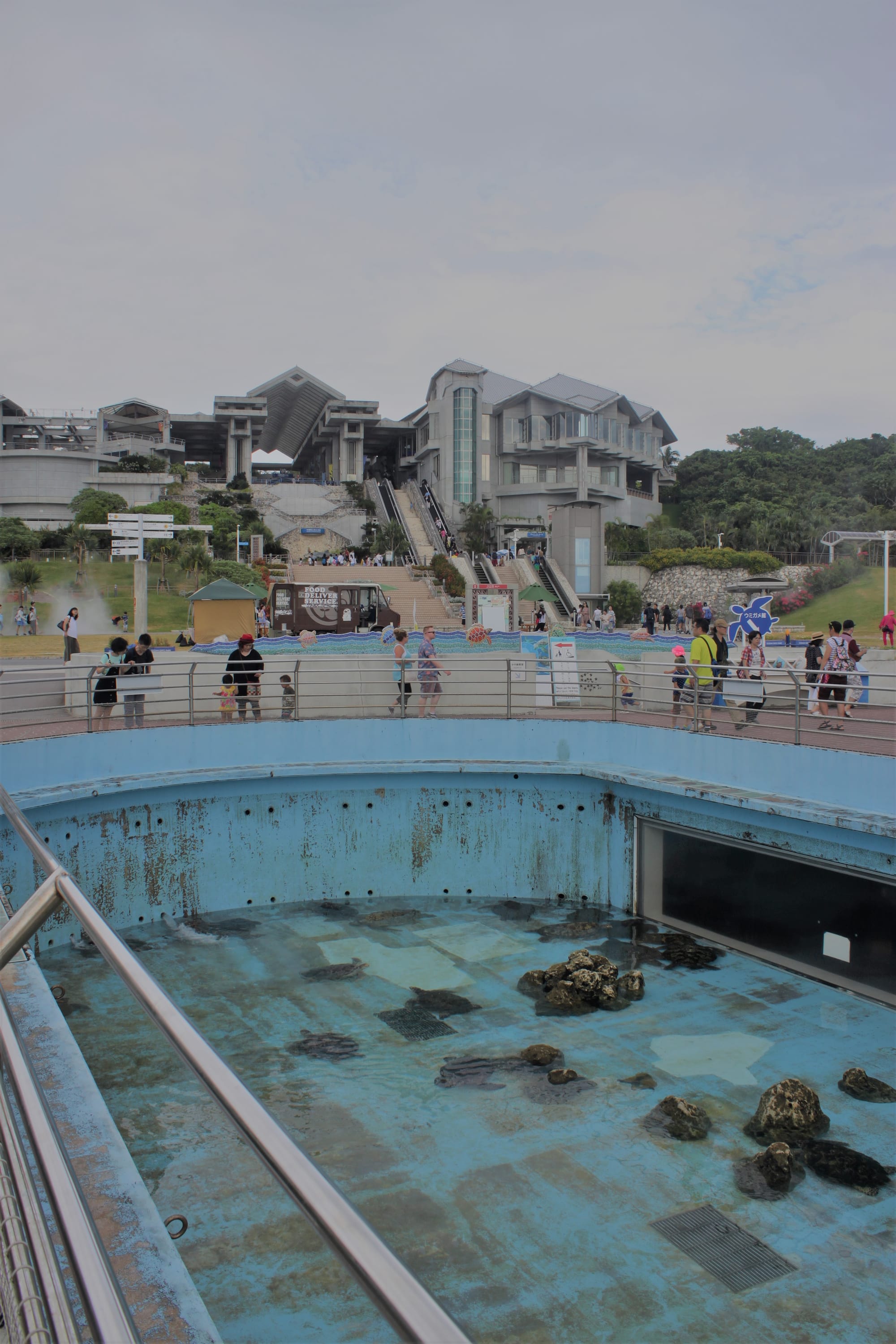 Pats akvariumas yra trijų aukštų, įsikūręs originalaus ir gana keisto dizaino pastate, bet iš jo išėjus dar lauke yra vėžlių ir delfinų zonos. Tie dūmai tai jei ką yra iš vandens, skirti atsivėsinimui.
