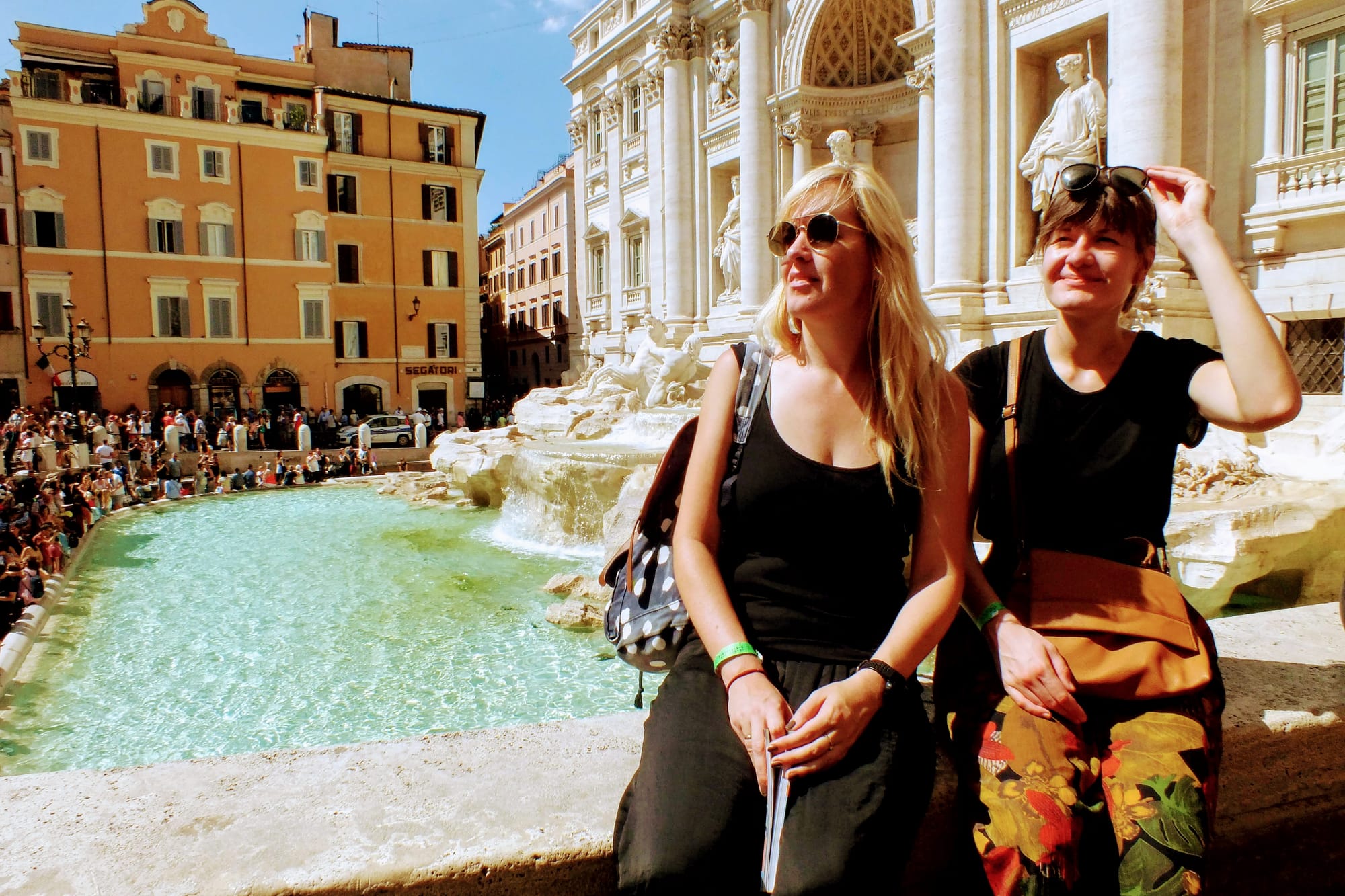 Tada praeidami Respublikos aikštę su fontanu, kuris pilnas prisiminimų apie mūsų su Justu keliones po Italiją dviese, pasiklysdamos keliose gatvelėse, pasiekėme žymųjį Trevi fontaną. Ypatingas jis tuo, kad yra įkurdintas pastato fasade. Žmonių - MILIJONAS. Mesdami ten monetą jie stipriai prisideda prie Romos miesto gyvavimo finansiškai.