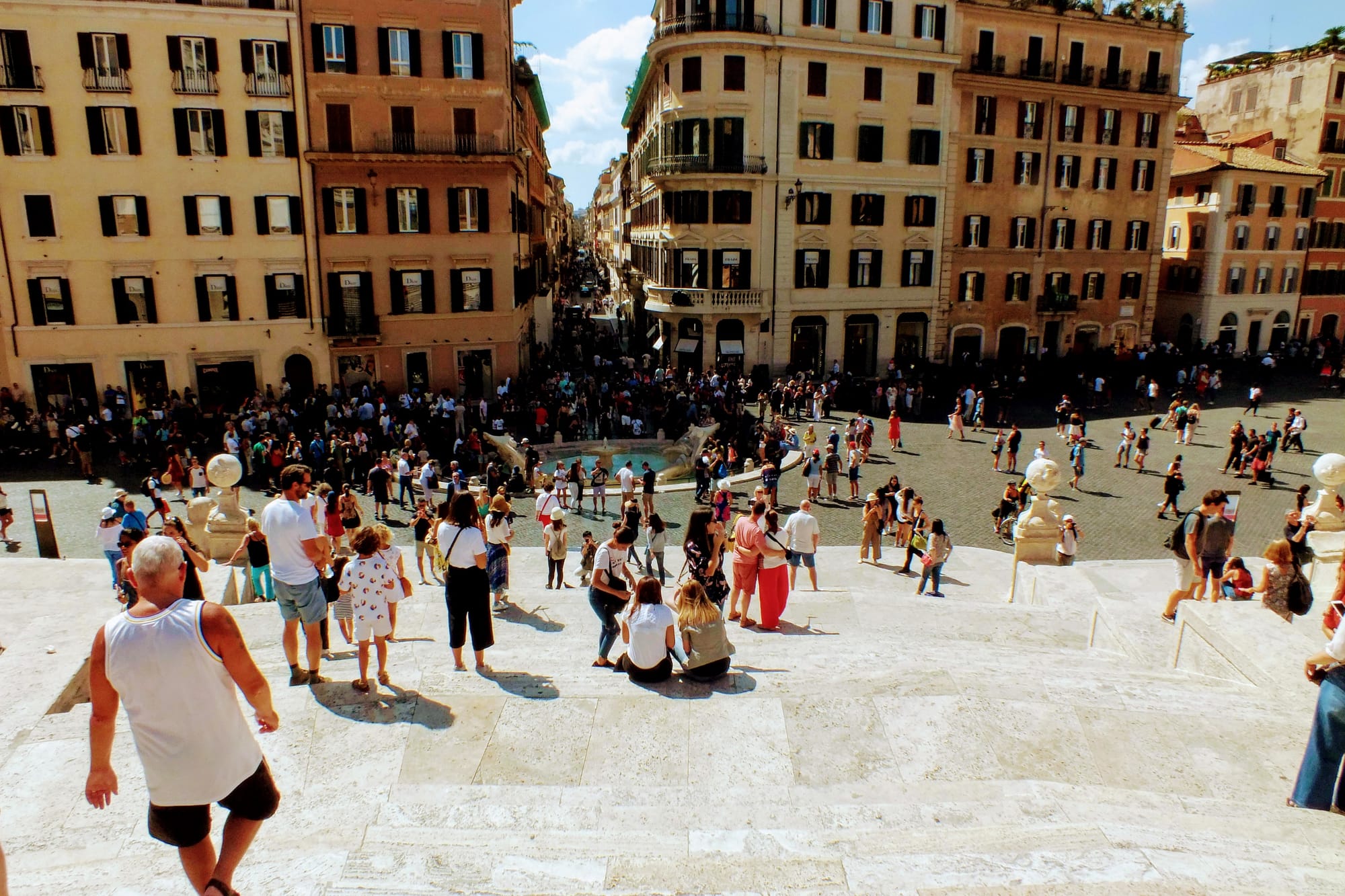 Toliau keliavome mes link Ispanijos laiptų, kopėme viršun ir pasivaikštinėdamos mėgavomės Romos vaizdas iš aukštai, keliavome iki Piazza del Popolo, paskui po truputį turistų gausiomis gatvėmis judėjome link senamiesčio, kur dar aplankėme Panteoną, Campo dei Fiori aikštę (buvo pilna šiukšlių po turgaus dienos) Navona aikštę ir pavakarianiavome.
