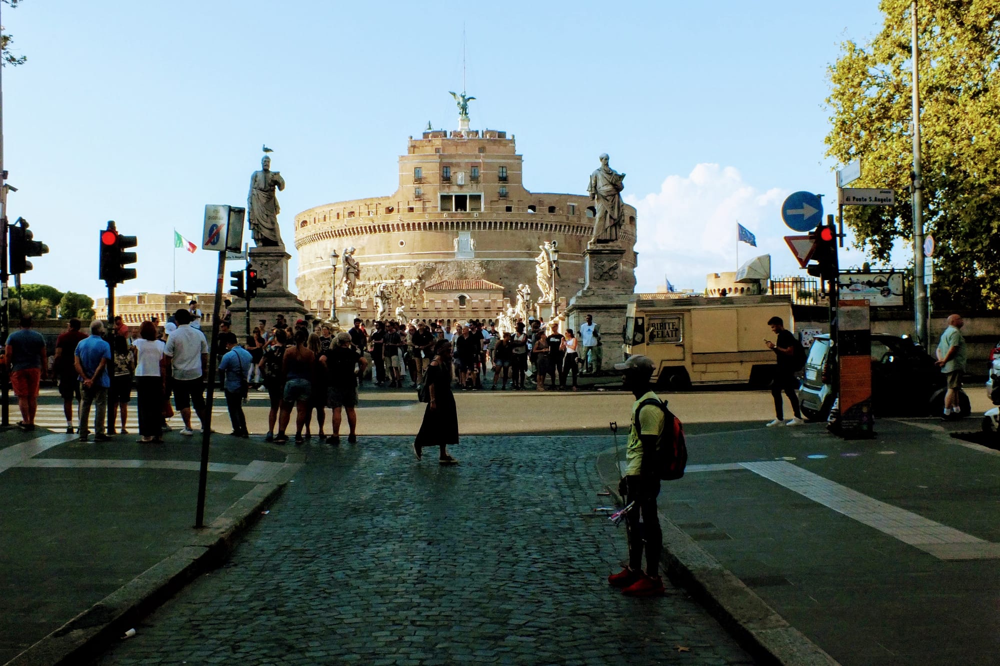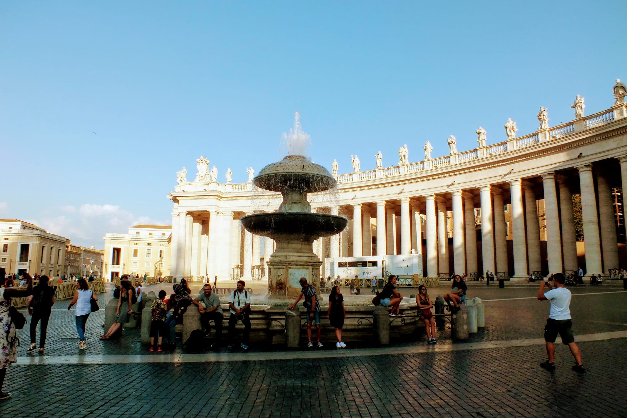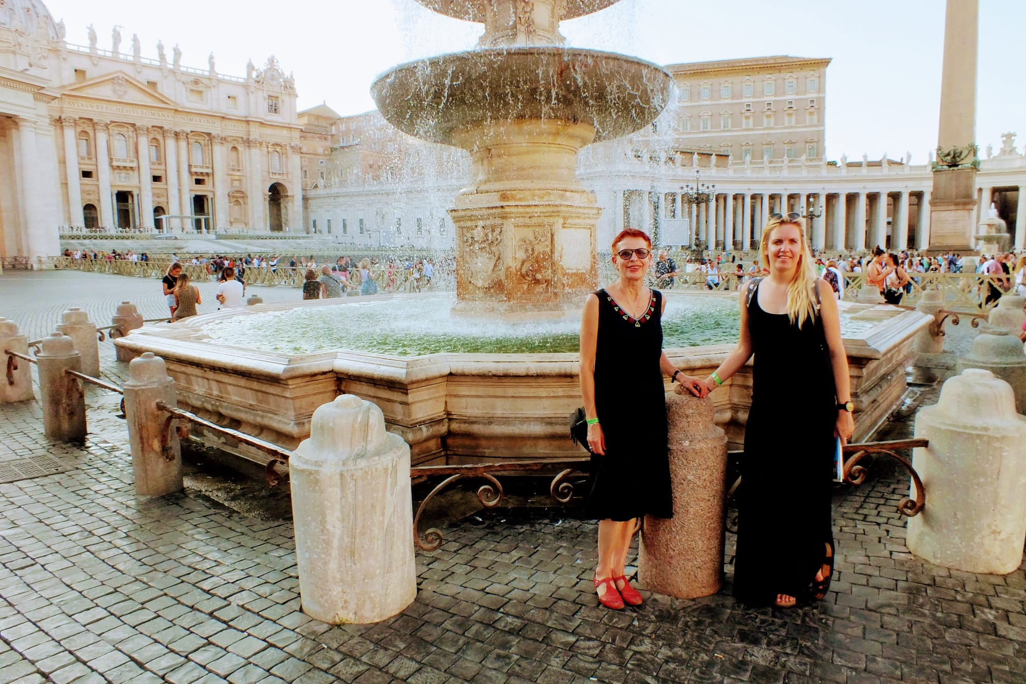 Dienos pabaigoje, lekiant link stoties dar praėjome Angelo tvirtovę ir Švento Petro aikštę, bet čia grįžome dar ir kitą dieną. Tiesa, visų trijų dienų nuotraukos yra mano, Giedrės ir mamos. Daugiausia mamos, tad ačiū jai, kad įamžino. Dėl to daugybėje nuotraukų mes su Giedre sėdim and laiptų ir laukiam, kol bus įamžintas fontanas, bažnyčia ar aikštė.