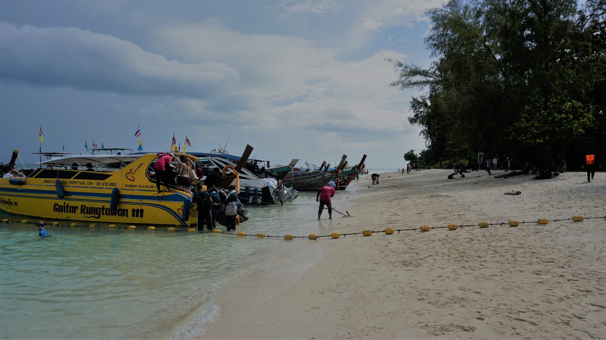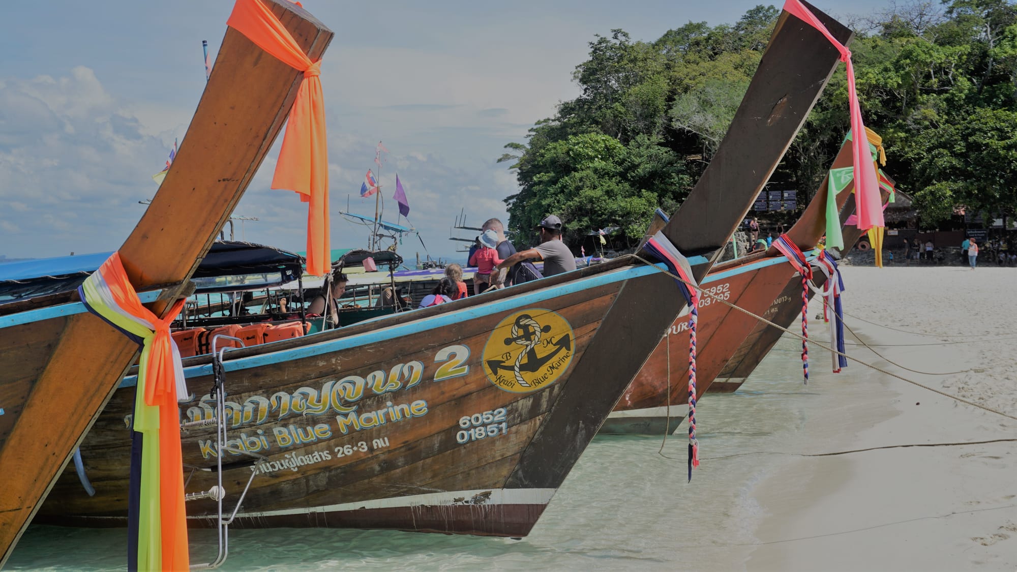 Antrajai dienai Krabyje susiviliojome suorganizuotu turu po 4 gražias regiono salas. Paprastai patys viską organizuojamės, bet laivo neturim, tai atsidavėm į kitų rankas. Jei ne milijonai turistų, ko mes visada norime išvengti, tai išvyka buvo tikrai puiki. Bet ir tų turistų visai gal net ir ne milijonai, mažiau nei Palangoj vasarą hahaha. Aštuntą ryto mus paėmė nuo viešbučio ir pristatė į prieplauką, kur kiek palaukę sėdom į taip vadinamą ilgauodegį laivą su grupe kitų turistų. Turą sudarė keturių salų lankymas.