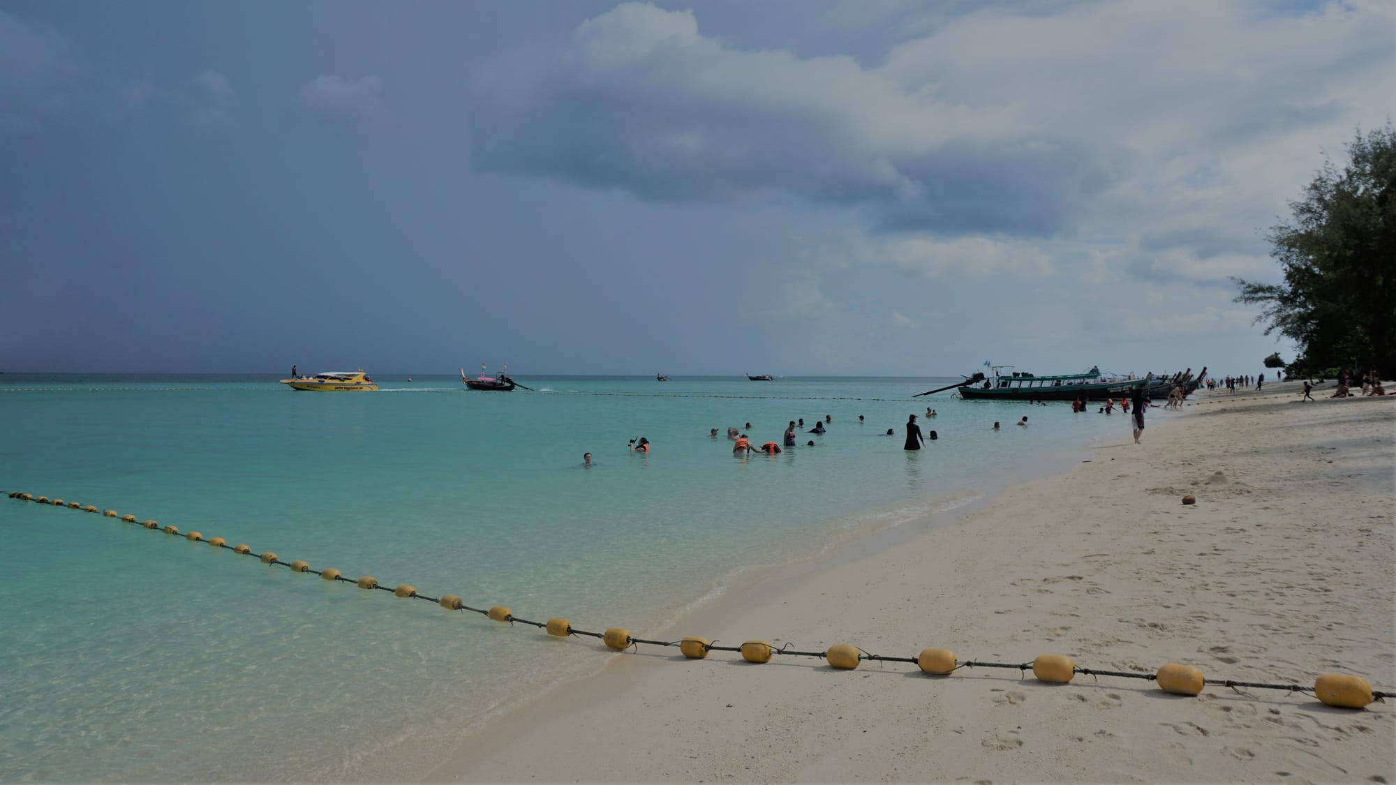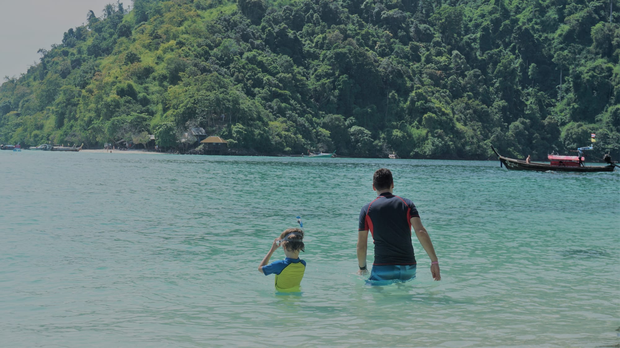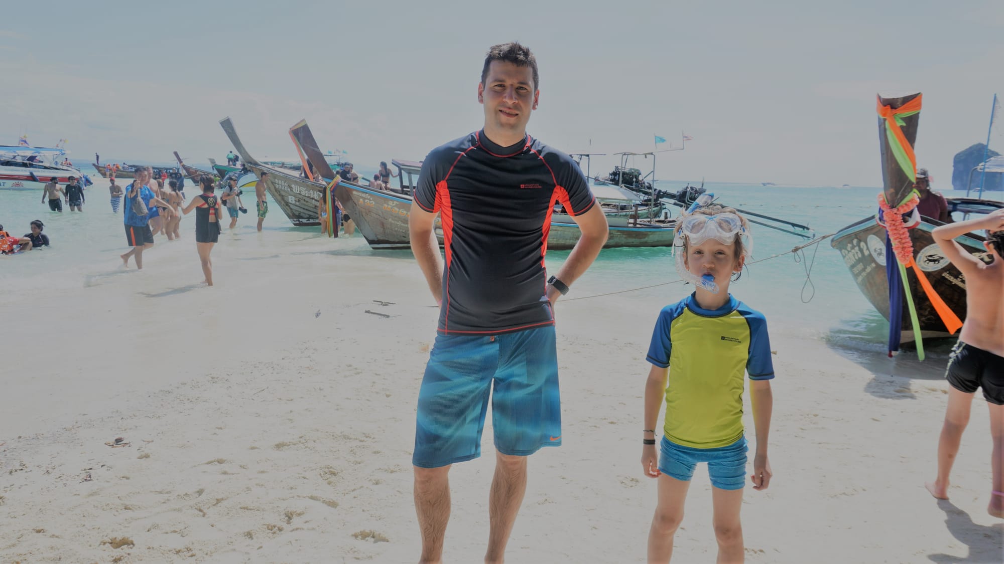 Paskui netoliese stojome vandenyje, ne paplūdimyje ir snorkelinome trijų keturių metrų gylyje. Vaikams puikiai sekėsi, norėjo dar ir dar. Aplinkiniai stebėjosi jų drąsa. Matėm įvairiaspalvių žuvyčių ir koralų. Paskutinis sustojimas su pietumis buvo Poda saloje. Man gal ji labiausiai patiko, jei vertinti vandens mėlynumą ir smėlio baltumą. Ji didesnė, tad ir turistų srautai tokie pasiskirstę.