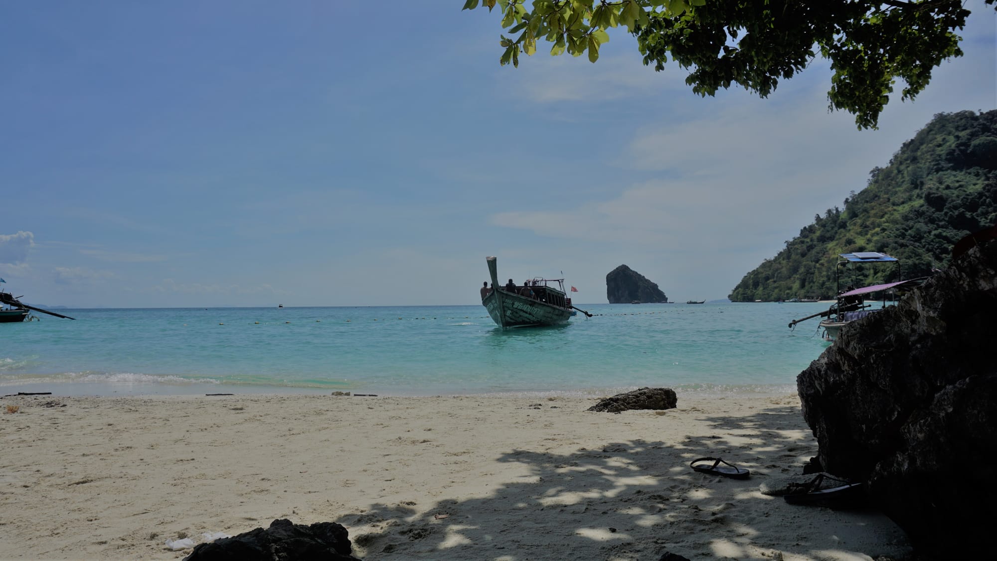 Pirmasis paplūdimys vadinasi Ao Phra Nang ir turi įspūdingo dydžio uolą, kuria mėgėjai kopinėja ir tai viena geriausių vietų pasaulyje šiam pomėgiui. Ten nardėm, deginomės ir ilsėjomės, nes daugiau ten nieko ir nėra – tik daug priparkuotų laivų ir tą patį ką ir mes veikiančių turistų.