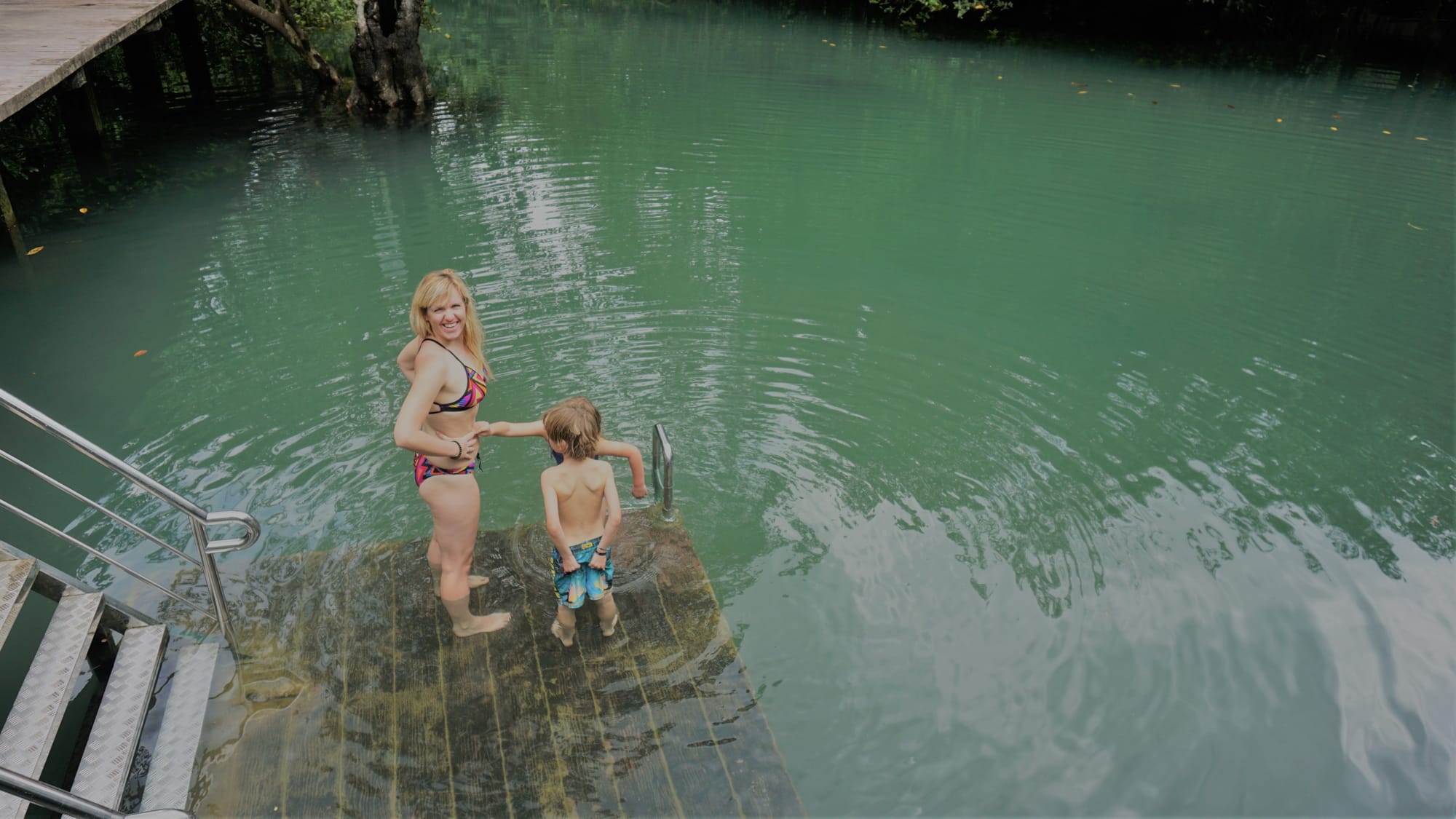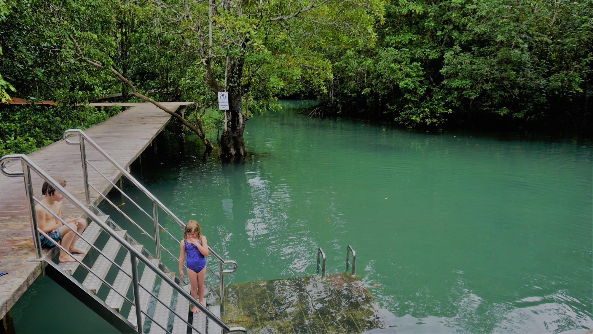 ...bei užsukome į pasivaikščiojimo taką, vedantį pro mažus žydrus ežerėlius ir upelius Tha Pom Klong Song Nam, kur smagiai murktelėjome į vėsų vėsų vandenėlį.