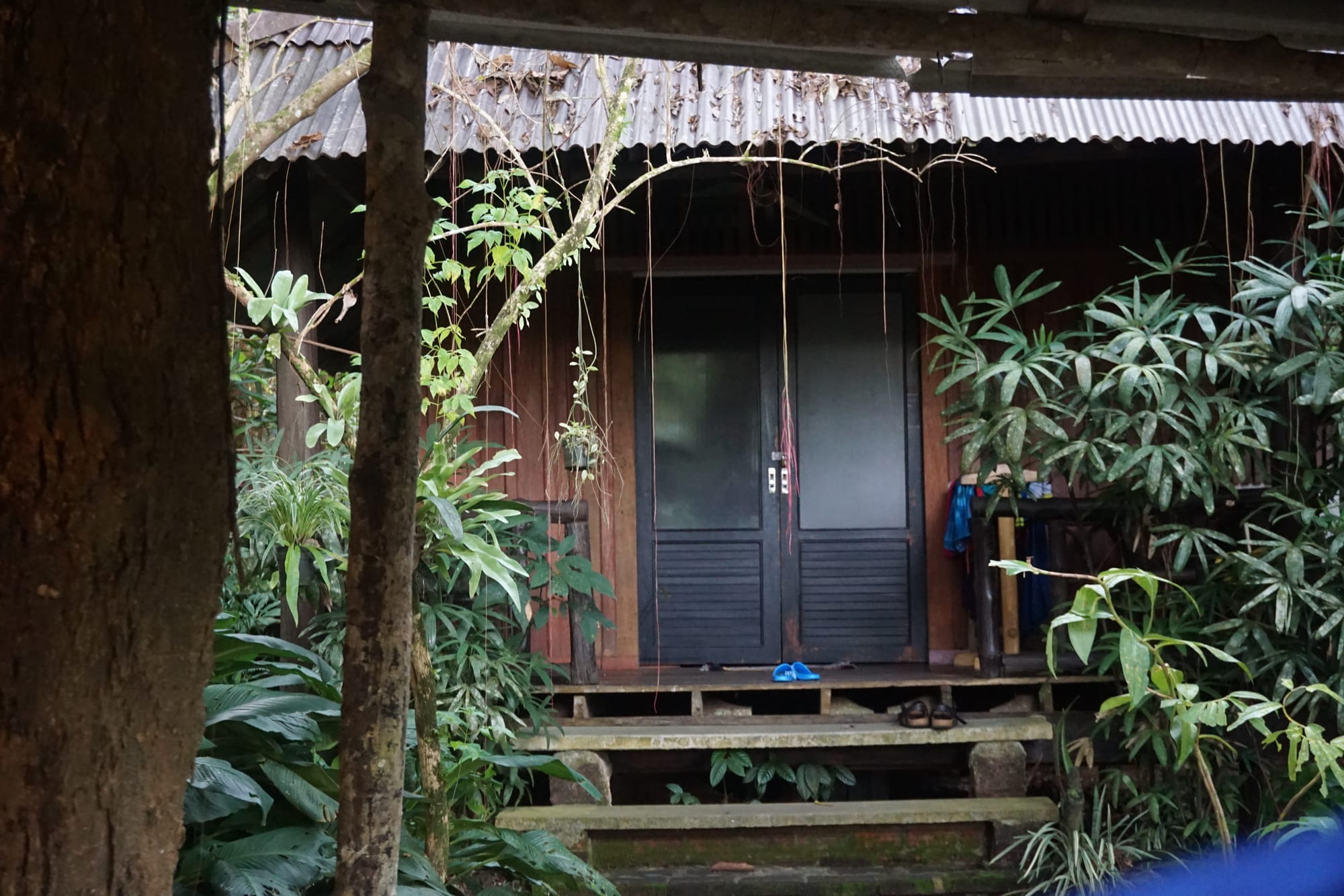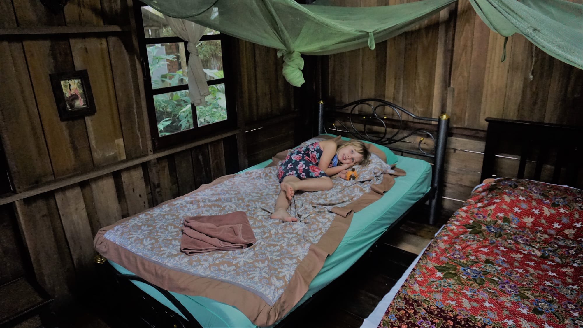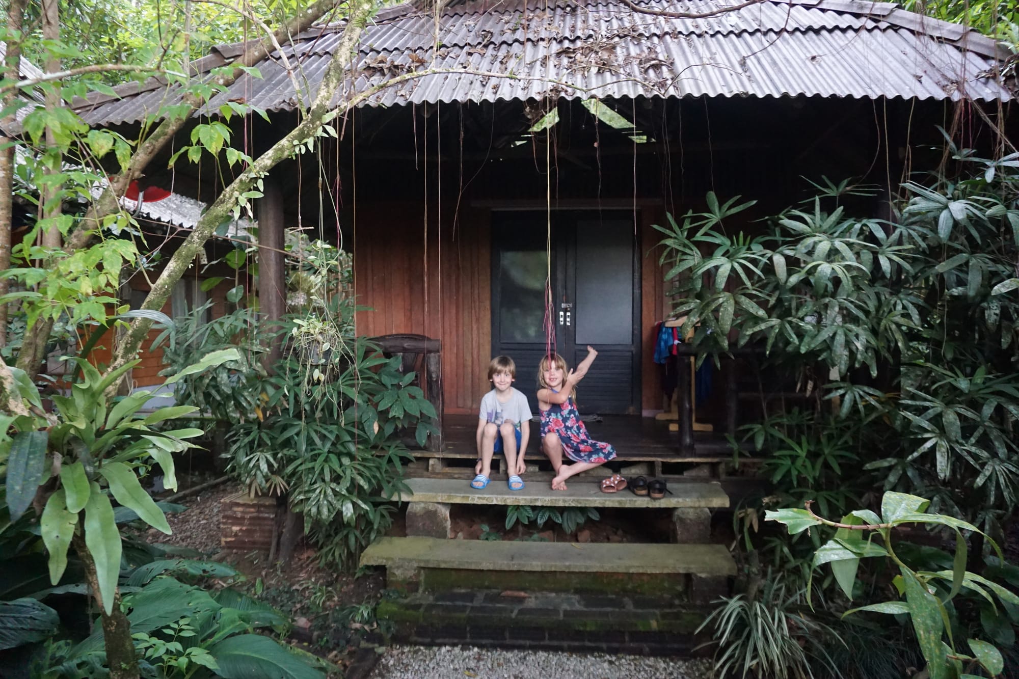 Vakarop pasiekėme savo nakvynės vietą nacionaliniame parke - Monkey Mansion Bungalows. Tai labai jauki vietelė, su nedaug namelių, bendra erdve ir draugišku šeimininku. Čia kitaip nei pirmojoje vietoje – pilna visokių driežų, vabalų ir garsų. Taigi, mūsų vieta ateinančioms keturioms naktims. Nuo jūros prie džiunglių.