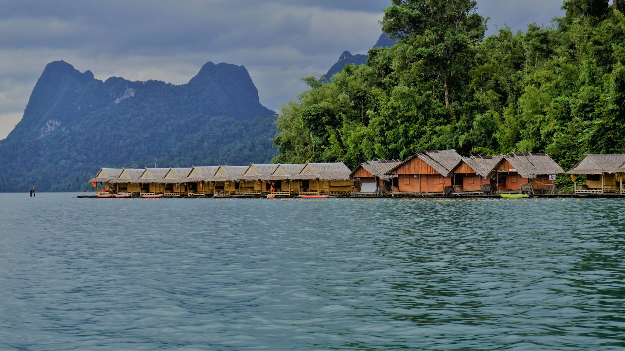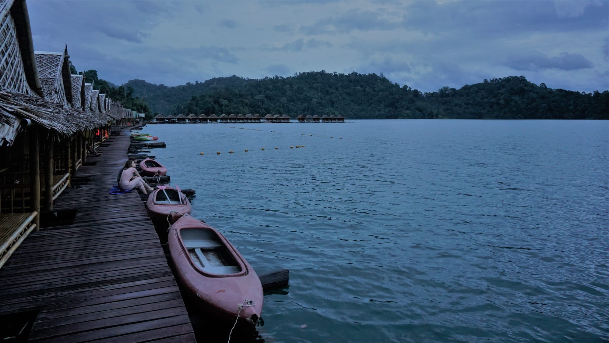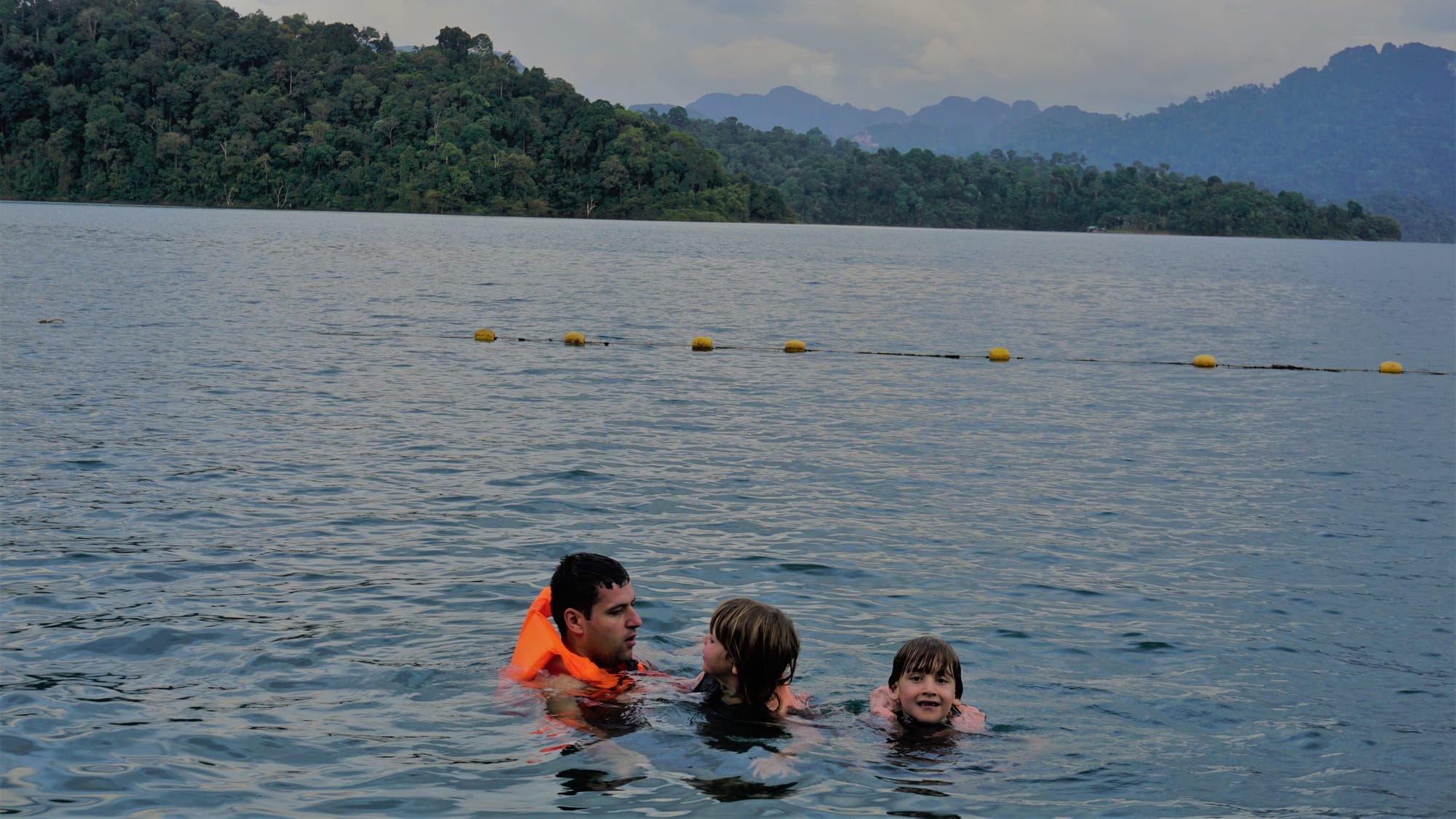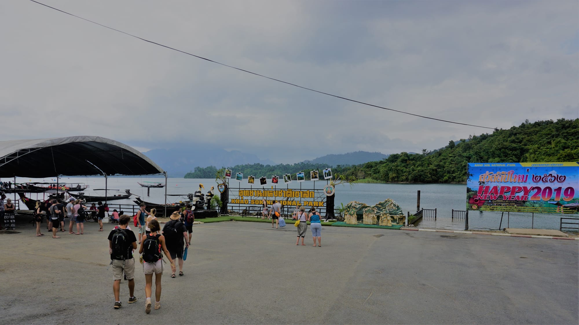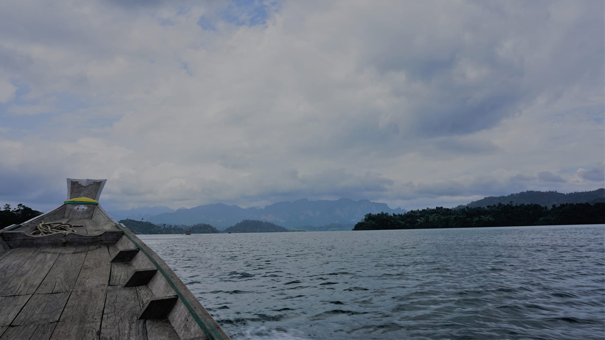 Vis dar esame Khao Sok Nacionaliniame parke. Buvome visiškai pradingę be telefono ir interneto ryšio dviems dienoms. Buvome užsisakę dviejų dienų kelionę prie didelio dirbtinio Cheow Lan ežero, kur nakvojome mediniuose namukuose ant vandens. Mūsų rajonėlyje susirinko grupė keturiolikos žmonių iš įvairių šalių ir vairuotojas mus nuvežė iki ežero. Ten sėdome vėlgi į ilgauodegį laivą ir valandą plaukėme iki namelių, kurie įkurdinti ežero pakraštyje, ant bambukinių plaustų. Ežeras yra 185 kv. kilometrų dydžio. Po kelionės buvom šlapoki. Atvykę gavome savo namelį, įsikūrėme, papietavome (viskas vietoje, įeina į turo kainą) ir keliavome į žygį.