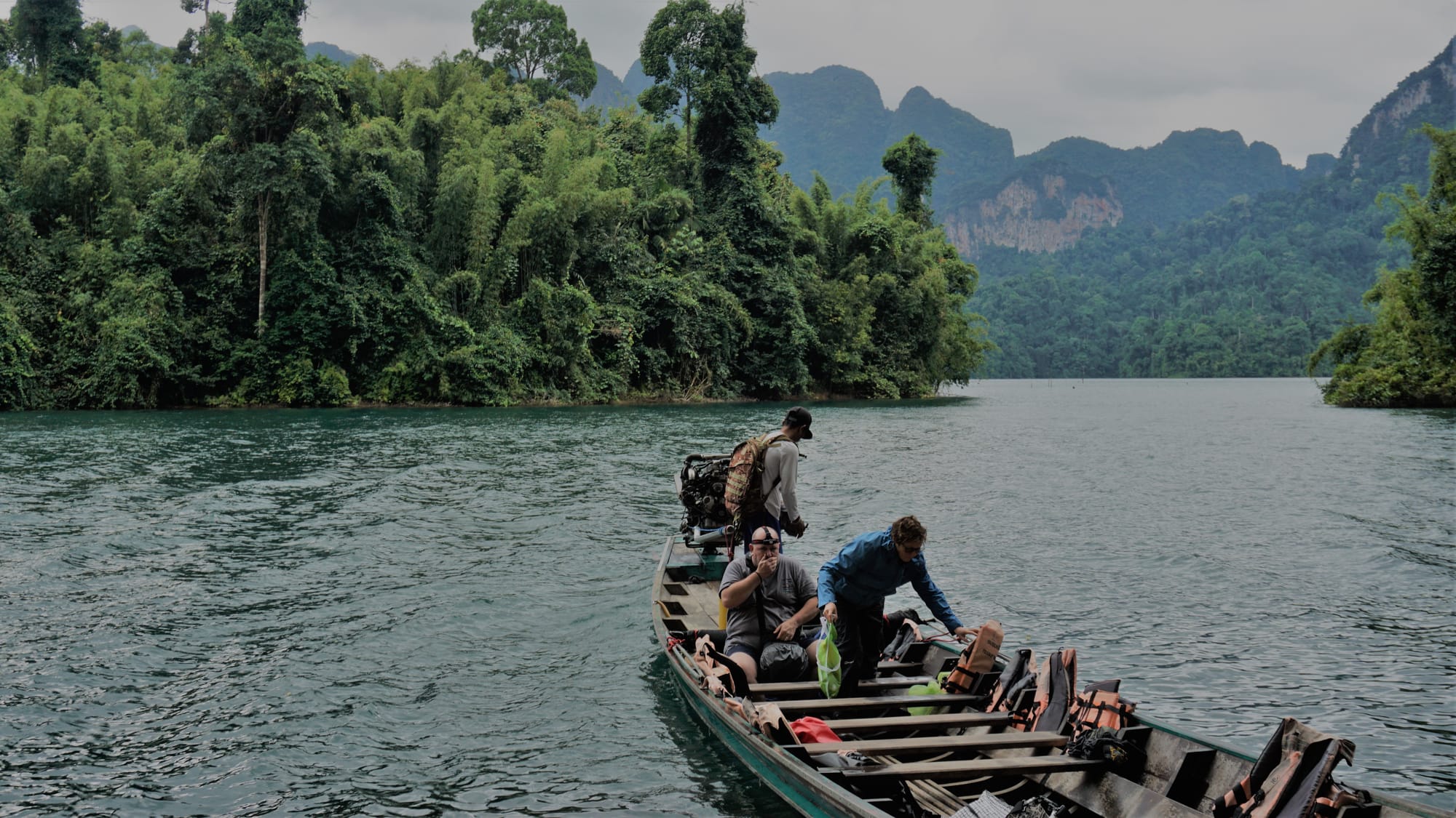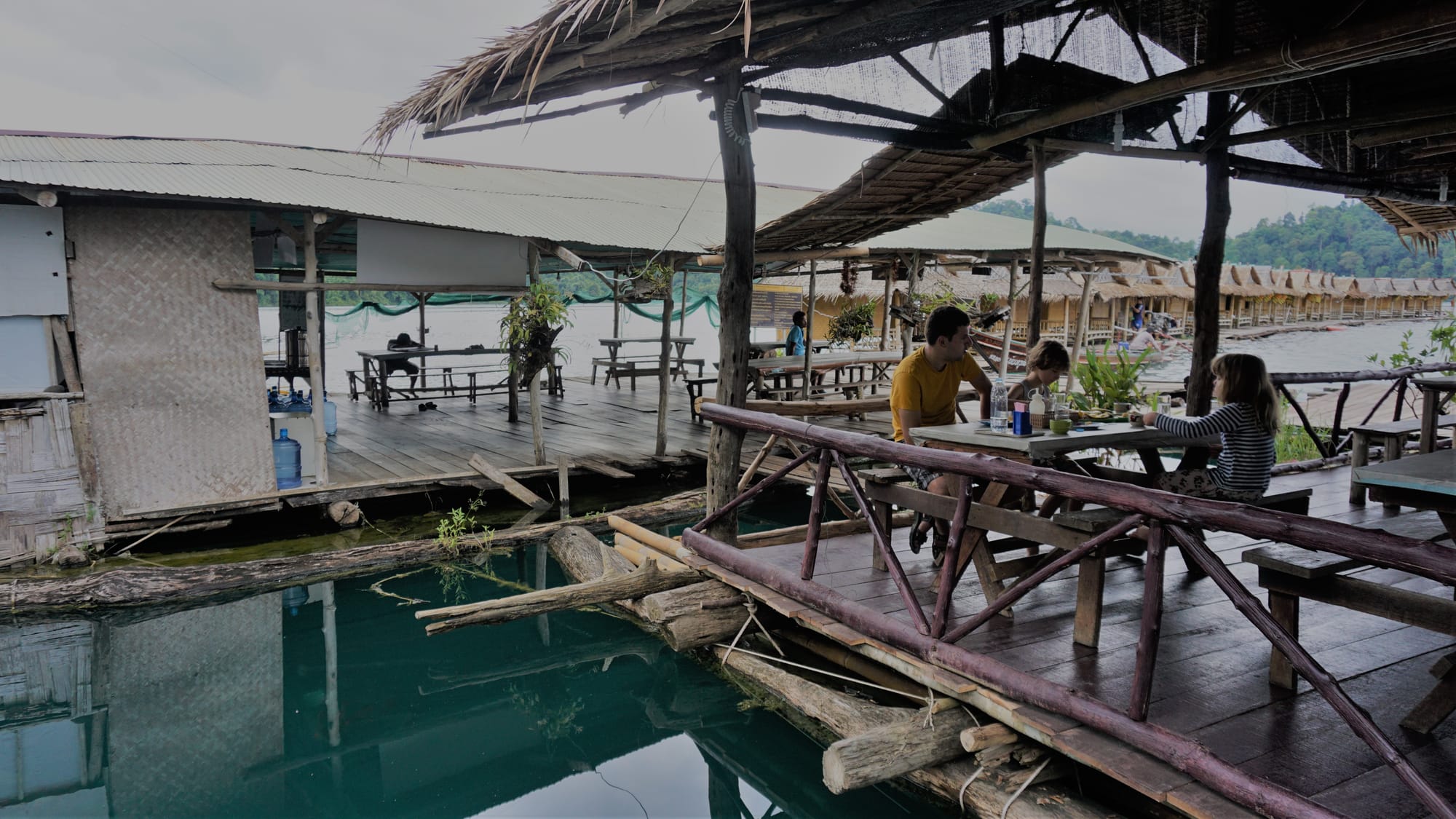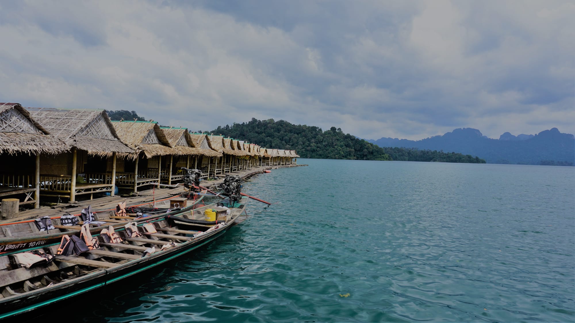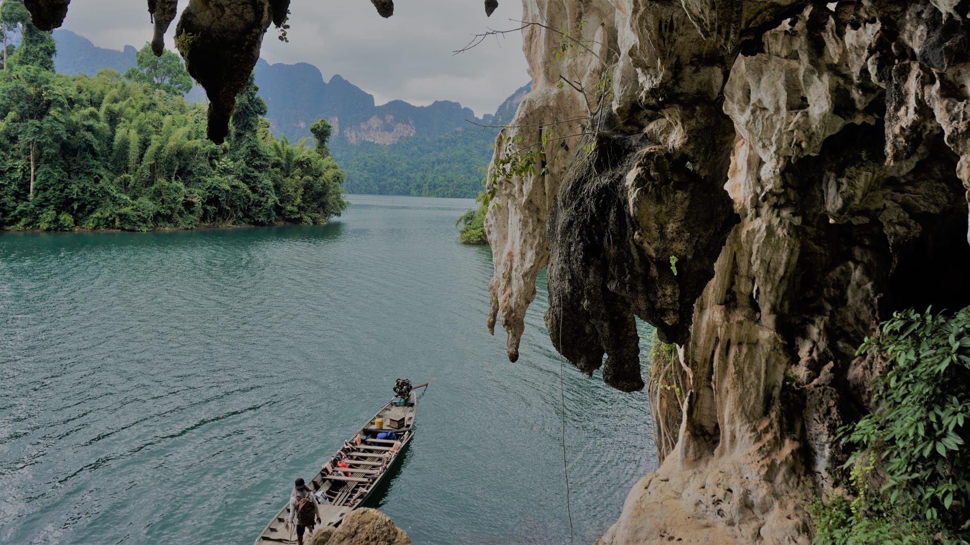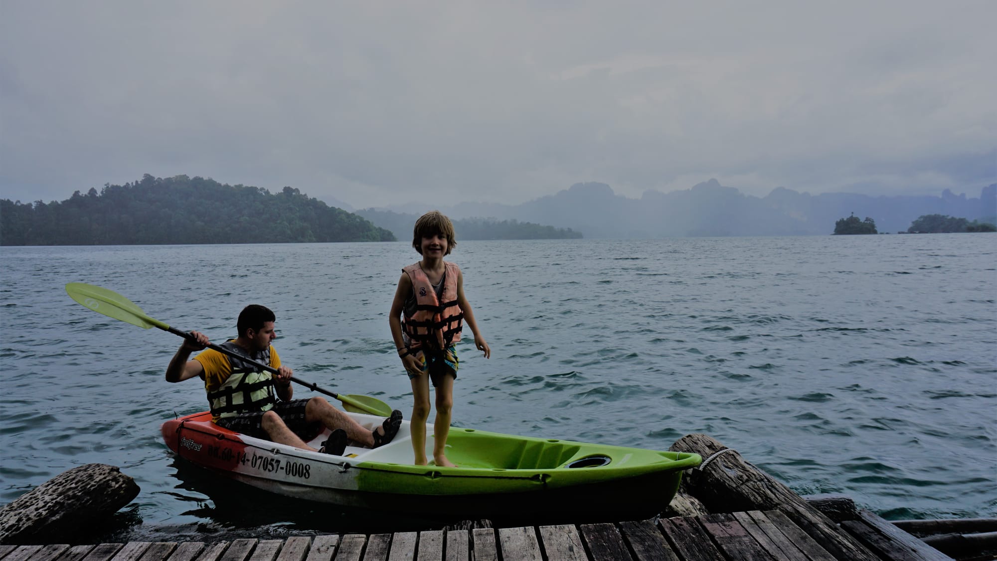 Vis dar esame Khao Sok Nacionaliniame parke. Buvome visiškai pradingę be telefono ir interneto ryšio dviems dienoms. Buvome užsisakę dviejų dienų kelionę prie didelio dirbtinio Cheow Lan ežero, kur nakvojome mediniuose namukuose ant vandens. Mūsų rajonėlyje susirinko grupė keturiolikos žmonių iš įvairių šalių ir vairuotojas mus nuvežė iki ežero. Ten sėdome vėlgi į ilgauodegį laivą ir valandą plaukėme iki namelių, kurie įkurdinti ežero pakraštyje, ant bambukinių plaustų. Ežeras yra 185 kv. kilometrų dydžio. Po kelionės buvom šlapoki. Atvykę gavome savo namelį, įsikūrėme, papietavome (viskas vietoje, įeina į turo kainą) ir keliavome į žygį.