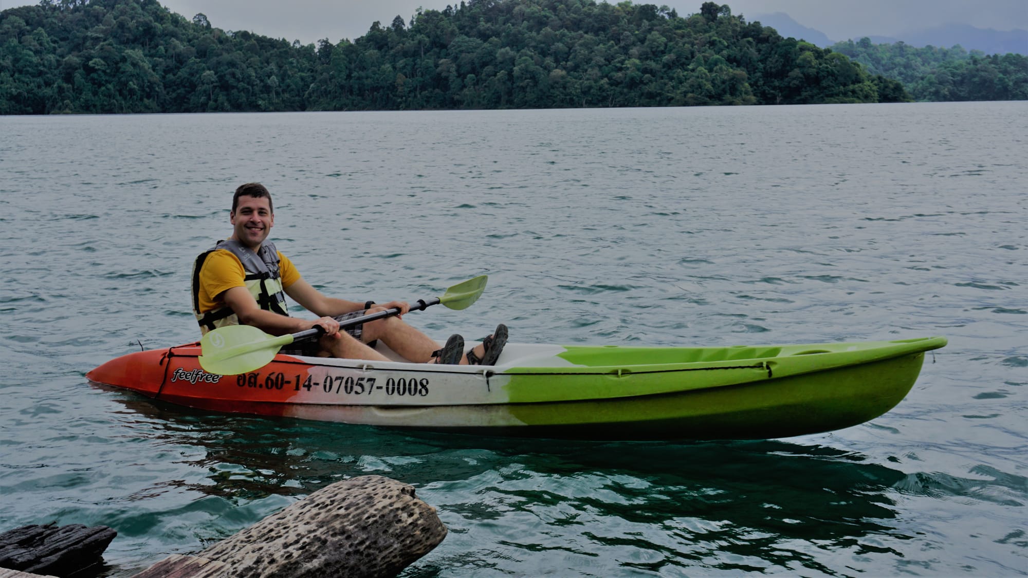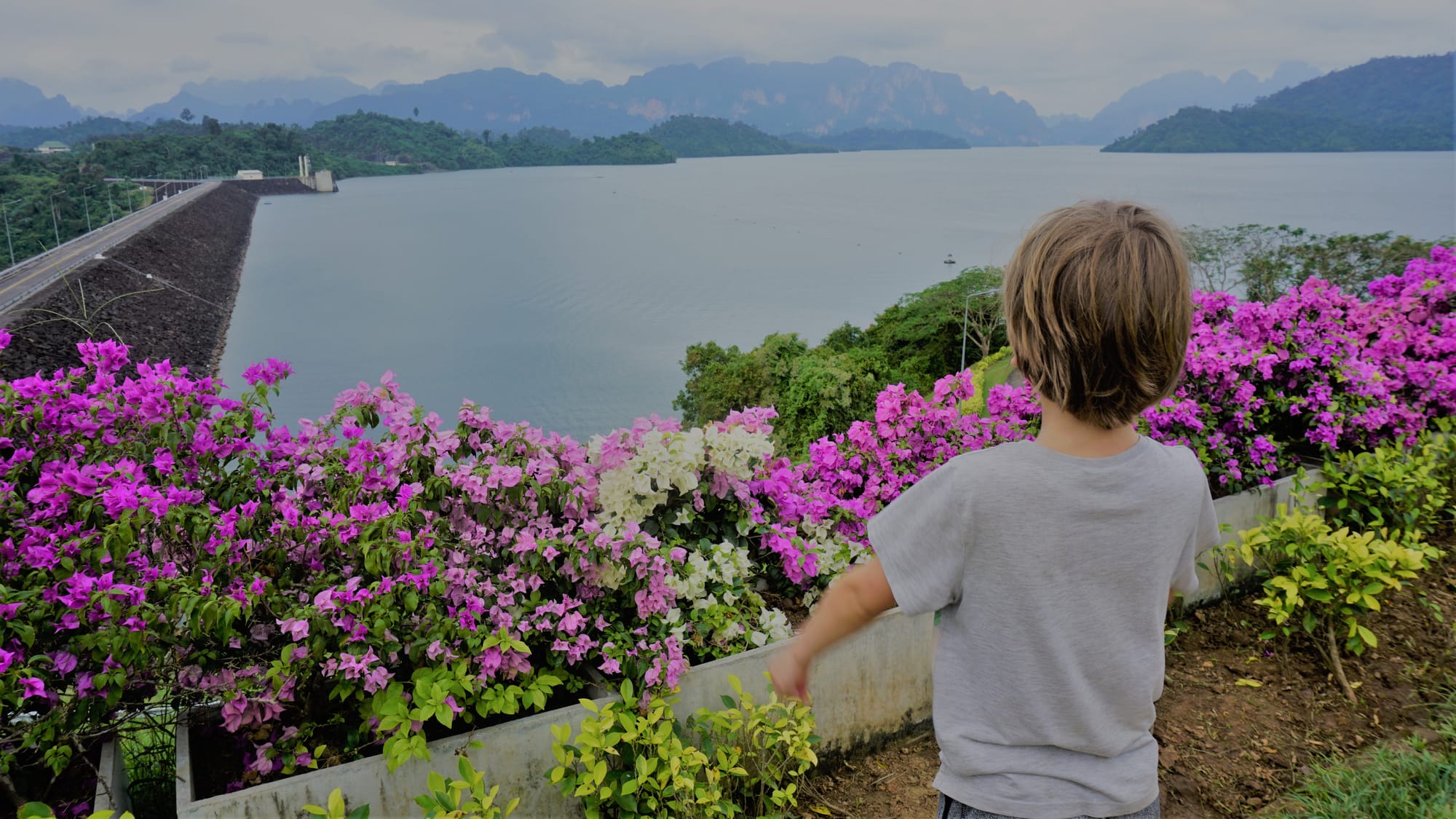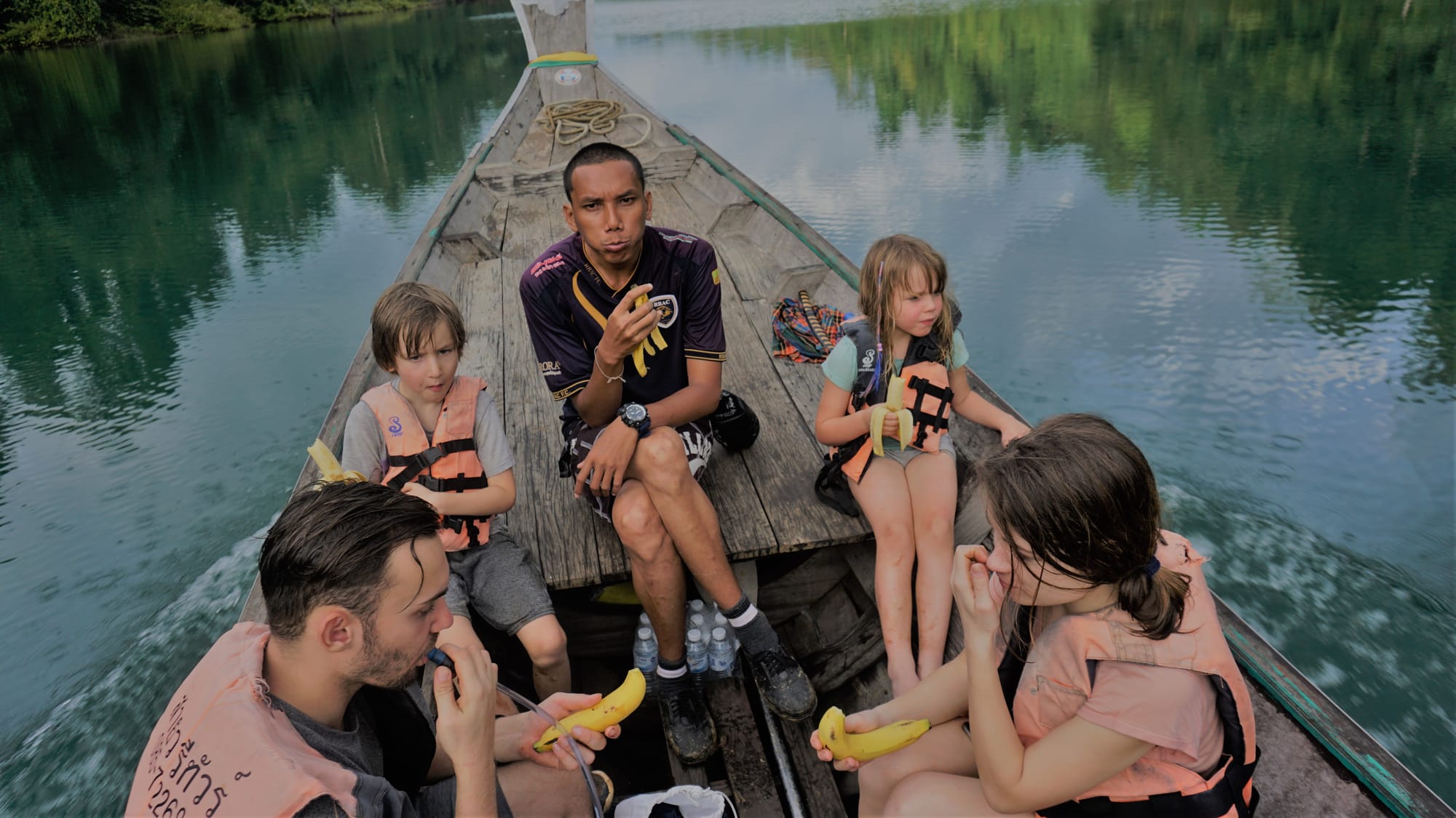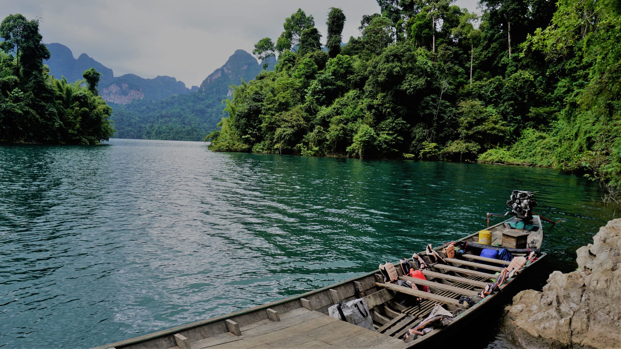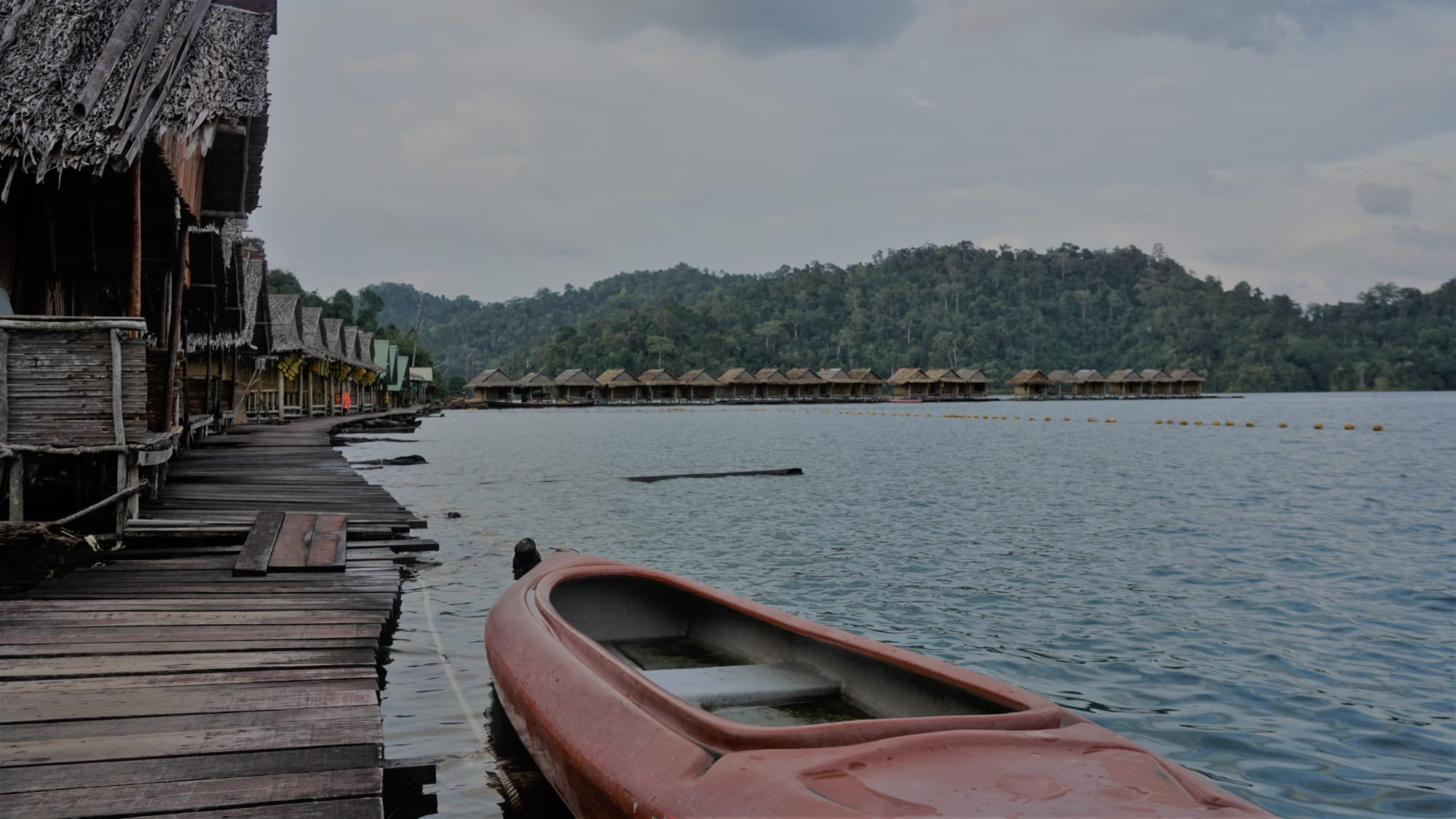 Vis dar esame Khao Sok Nacionaliniame parke. Buvome visiškai pradingę be telefono ir interneto ryšio dviems dienoms. Buvome užsisakę dviejų dienų kelionę prie didelio dirbtinio Cheow Lan ežero, kur nakvojome mediniuose namukuose ant vandens. Mūsų rajonėlyje susirinko grupė keturiolikos žmonių iš įvairių šalių ir vairuotojas mus nuvežė iki ežero. Ten sėdome vėlgi į ilgauodegį laivą ir valandą plaukėme iki namelių, kurie įkurdinti ežero pakraštyje, ant bambukinių plaustų. Ežeras yra 185 kv. kilometrų dydžio. Po kelionės buvom šlapoki. Atvykę gavome savo namelį, įsikūrėme, papietavome (viskas vietoje, įeina į turo kainą) ir keliavome į žygį.