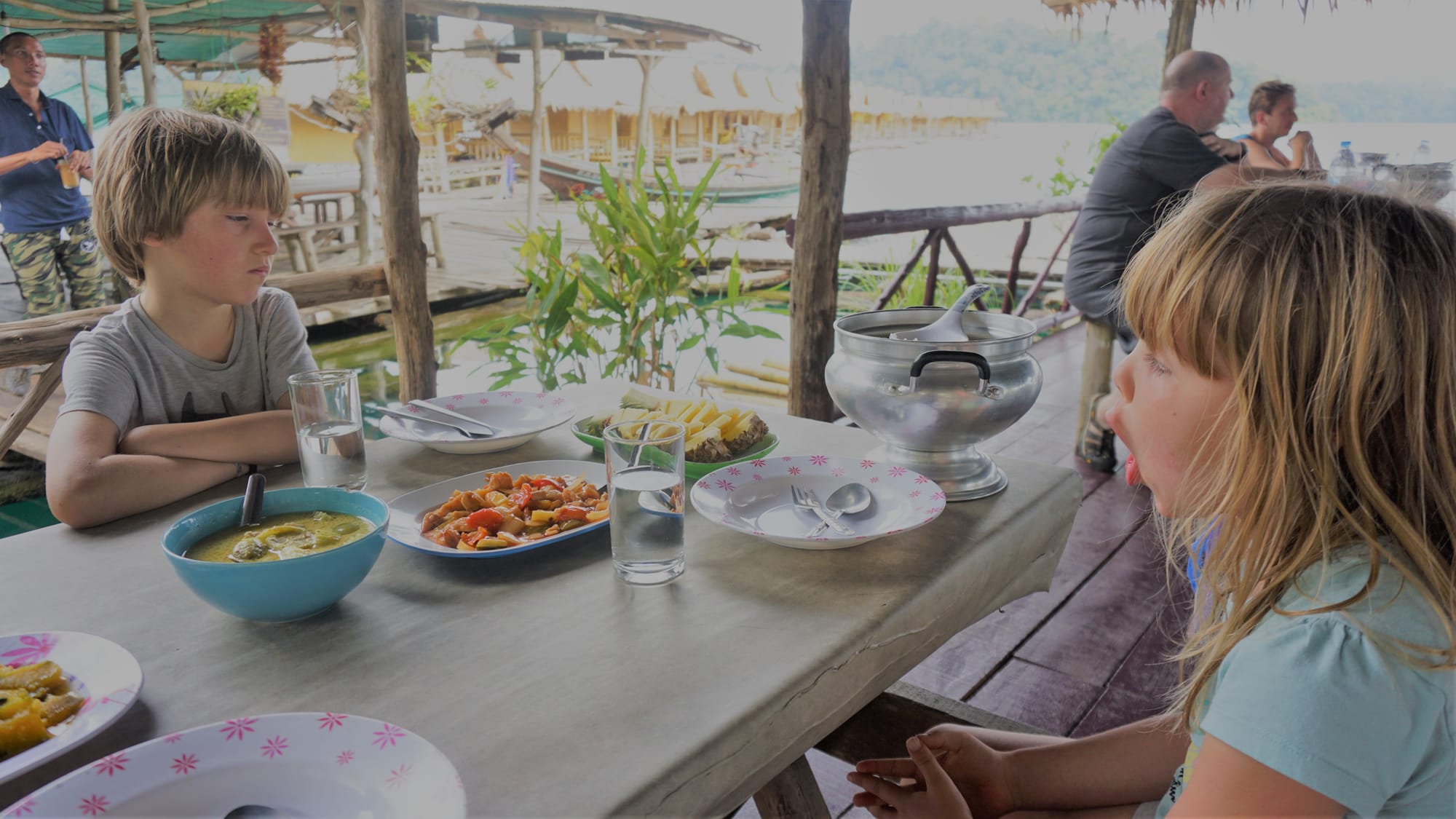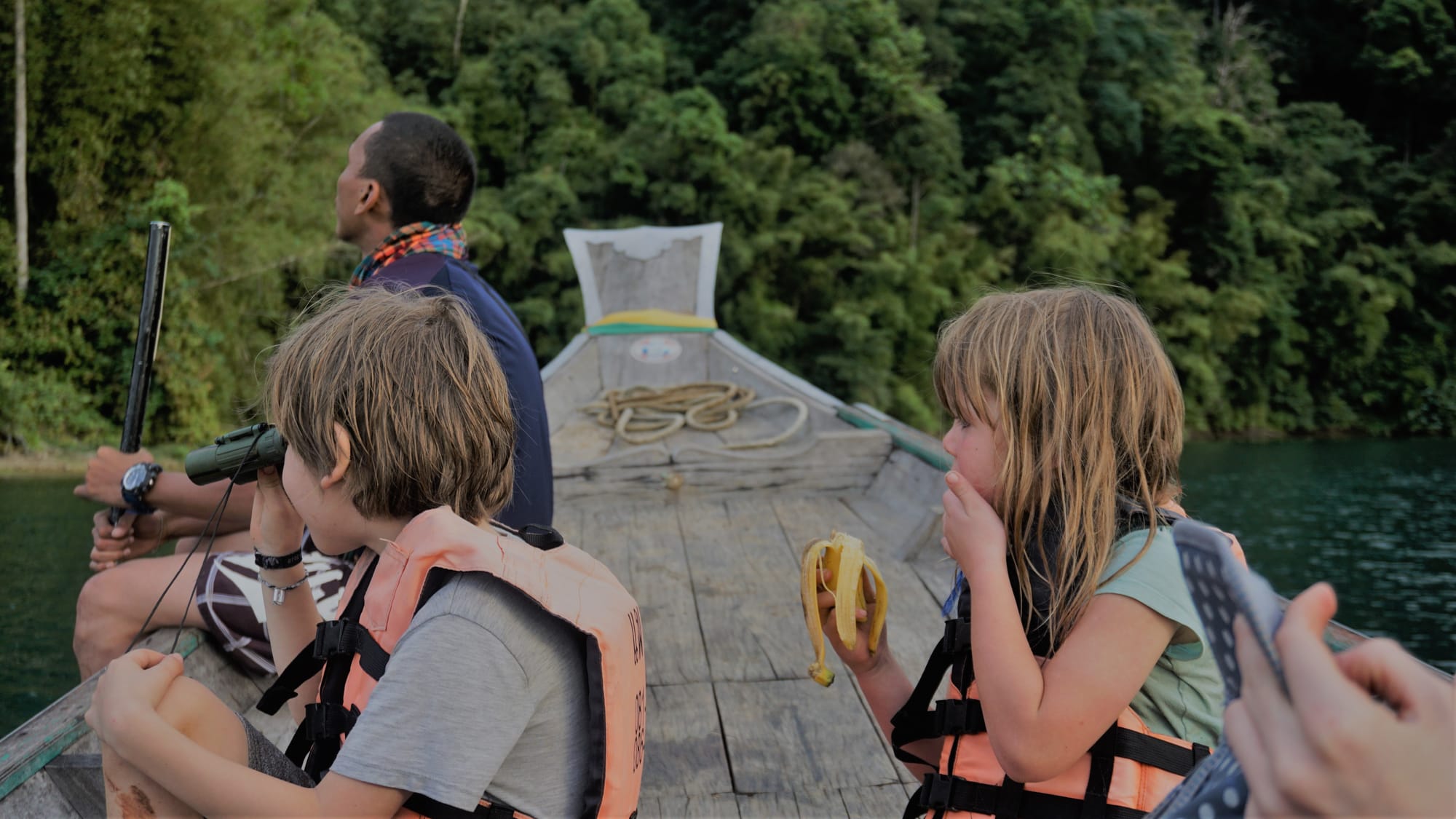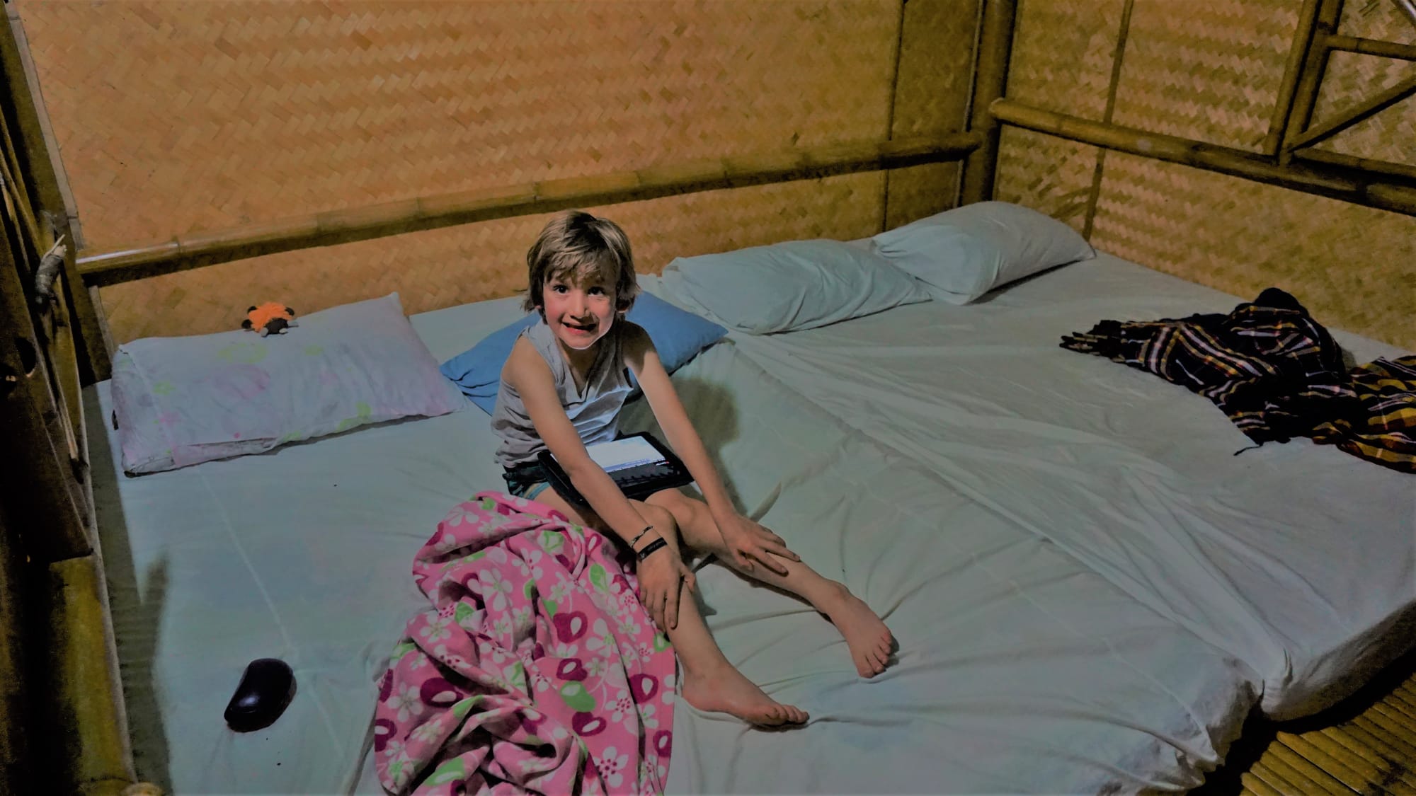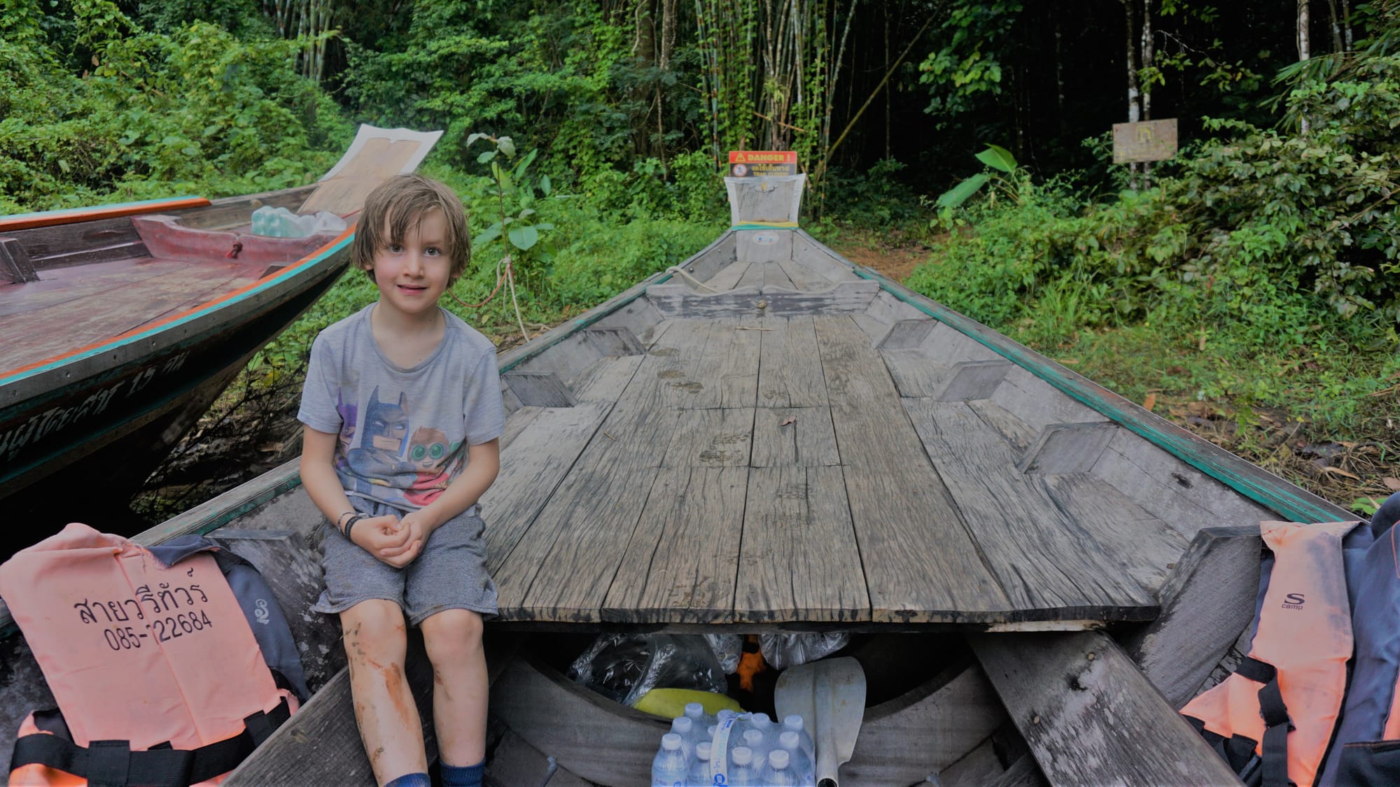 We went to sleep early as there was electrocity only from 6pm to 11pm and nothing else to do. Justas woke up early and had a boat trip around to watch some birds. We had some more sleep as we did not have enough of sleep recently. Then we had breakfast and guide changed the programme a little bit because of the rainy weather. So, after relaxing a little bit, we have visited an interesting cave and back to the pier. We are spending our last night at Monkey Mansion Bungalow tonight and we will move more to the north tomorrow. This trip was of the perfect balance of activities and relaxation and kids were really doing great again.
