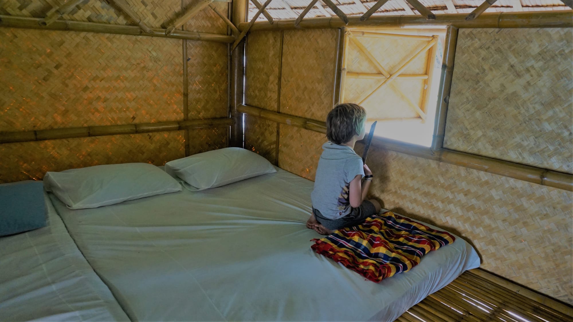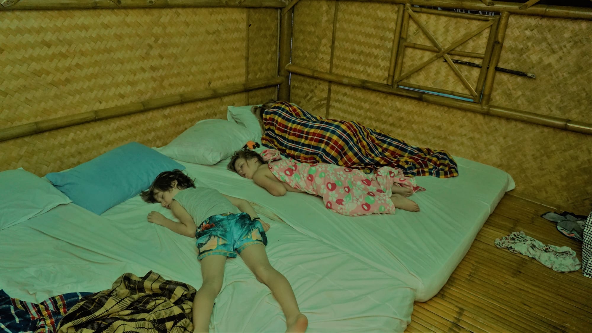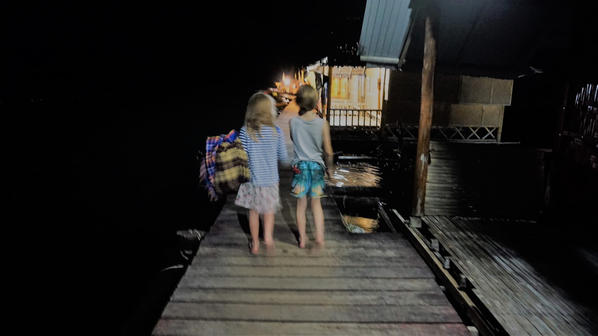 Vakare sugulėme anksti, nes ten, gyvenvietėje ant vandens, elektra veikia tik nuo 18 iki 23 valandos, o veiklų daug nėra. Išvis nėra. Ryte Justas kėlėsi su saule ir su kitais plaukė pasižvalgyti į gyvūniją. Mes likome dar pamiegoti valandėlę, nes pastarosios kelios naktys buvo sunkios kai kuriems dėl varlių kurkimo. Paskui papusryčiavome ir programa buvo kiek pakeista dėl prasto, lietingo oro. Tad pailsėjome prie namelių, tada plaukėme į įdomią uolą ir atgal į uostą bei Monkey Mansion namuką, kur praleisime paskutinę naktį ir keliausime toliau. Šita kelionė, sakyčiau, smagi buvo, pakankamas balansas poilsio ir aktyvumo, vaikai vėlgi laikėsi puikiai.