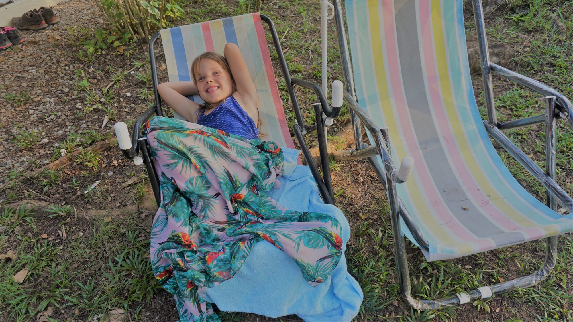 Paskutinę dieną gamtoje mes irgi buvom kažkokie be jėgų. Ryte nukeliavom į gražią vietą papusryčiauti, šalia buvo įspūdinga, bet rekonstruojama švebtykla. Likusią dienos dalį sėdėjom namelyje, valgėm vaisius, skaitėm, Justas nukeliavo iki kokios tai maudyklėlės džiunglėse.