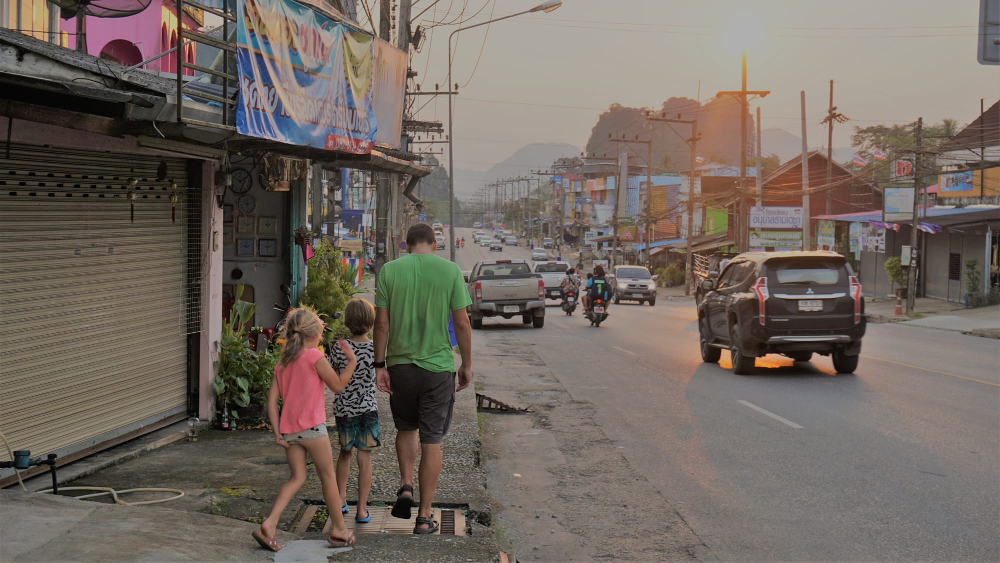 Šešioliktąją atostogų dieną palikome Ranong regioną ir judėjome vėl į pietus link Krabio, iš kurio jau po kelių dienų skrisime į Bankoką. Kelionė iki Ao Luek Paradise, kuriame susiplanavę dviems naktims apsistoti, su keliais sustojimais truko apie šešias ilgas valandas. Sustojome Khao Lak paplūdimyje, kur jau sutikome vien tik milijoną turistų (kuris laikas sutikdavome tik vieną kitą), drybsančius šezlonguose. Paskui aplankėme vieną iš šventyklų – vaikams kažkodėl jos labai patinka. Galiausiai pasiekėme Ao Luek miestelį, kuriame skaniai pavakarieniavome ir apsistojome Ao Luek Paradise vietoje, pilnoje jaunimo ir muzikos, bet labai jauku ir tvarkinga.