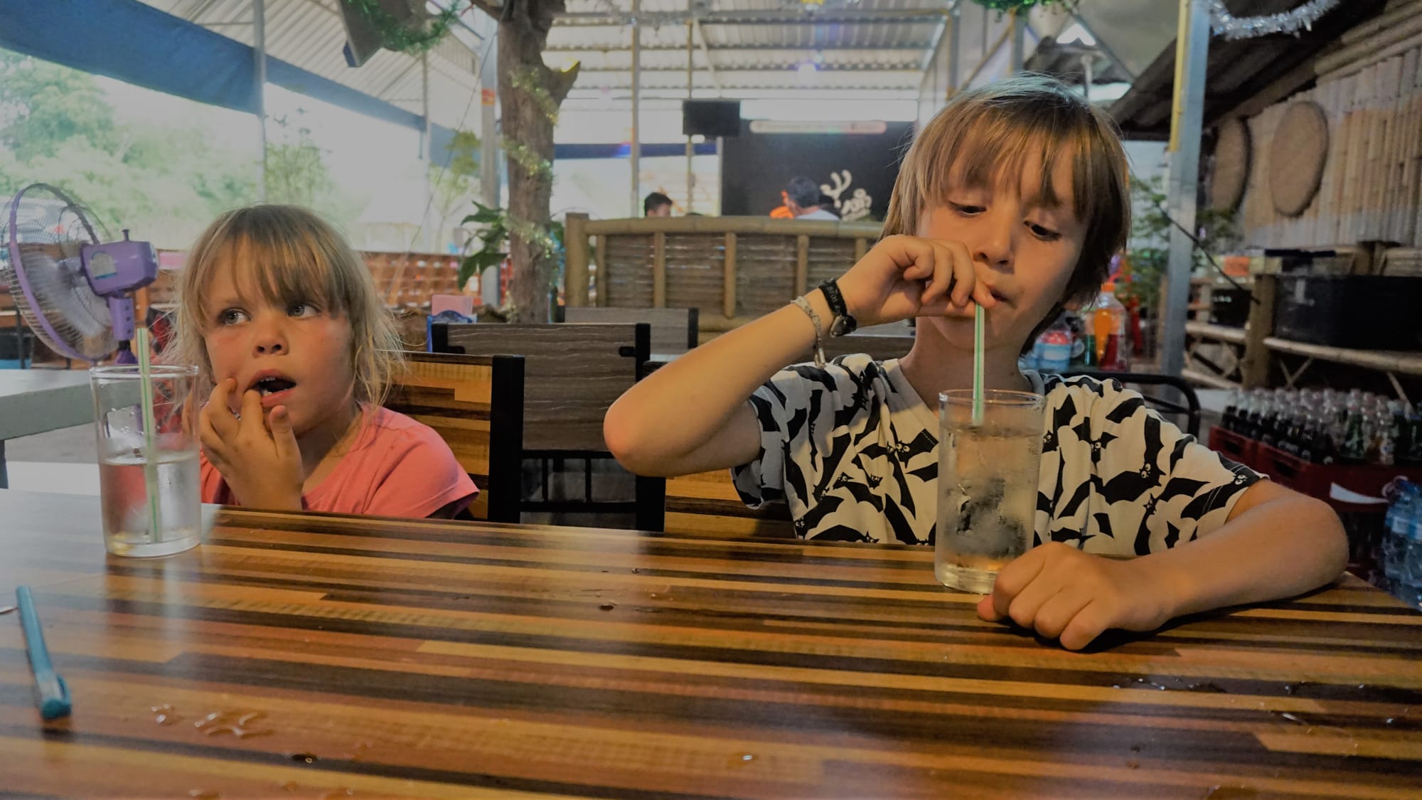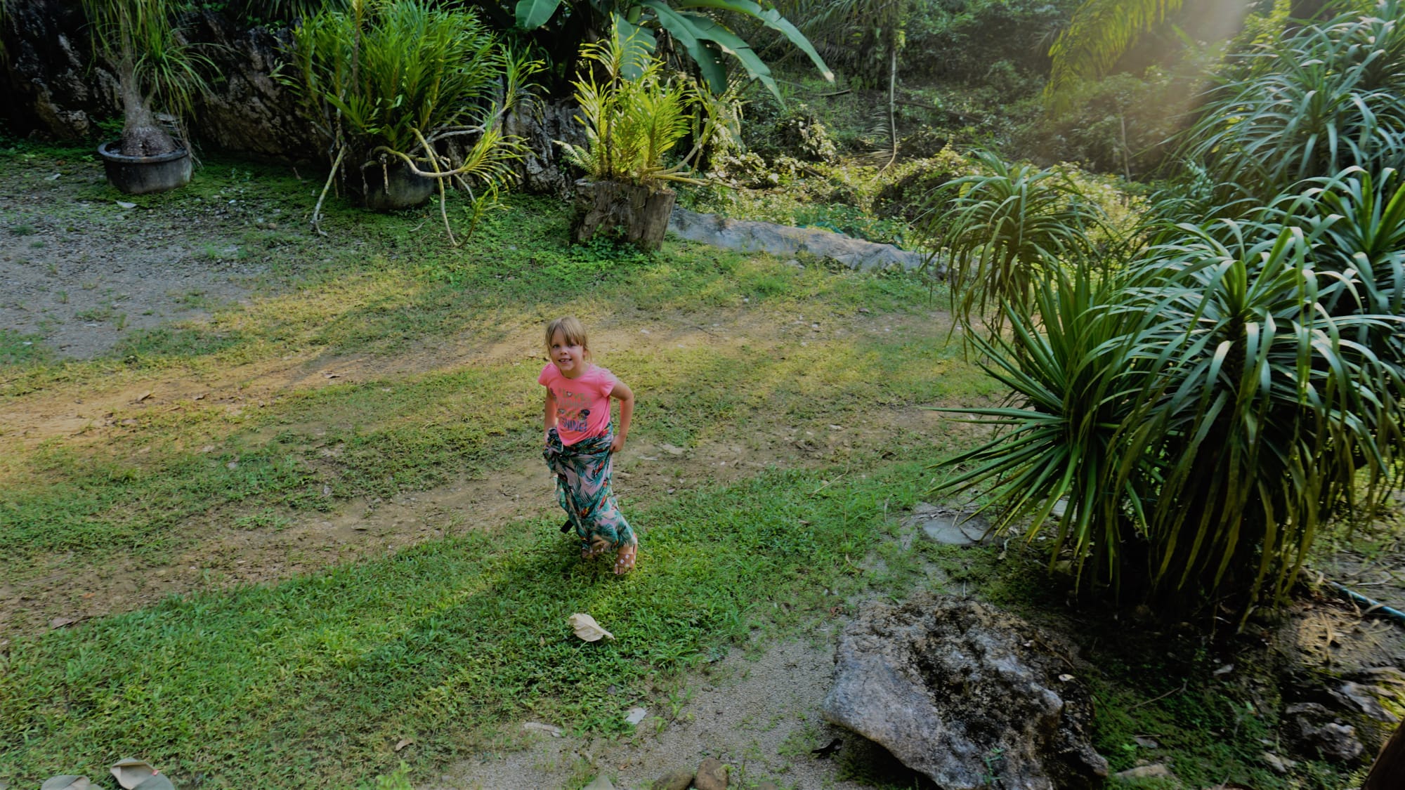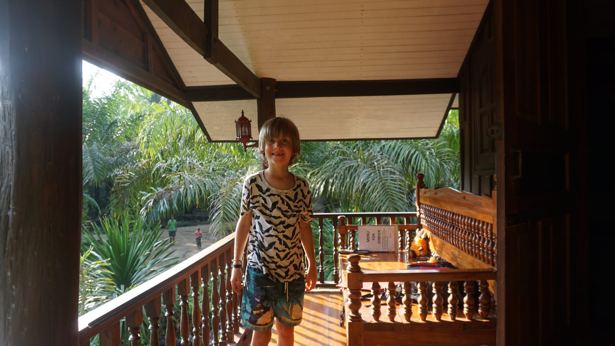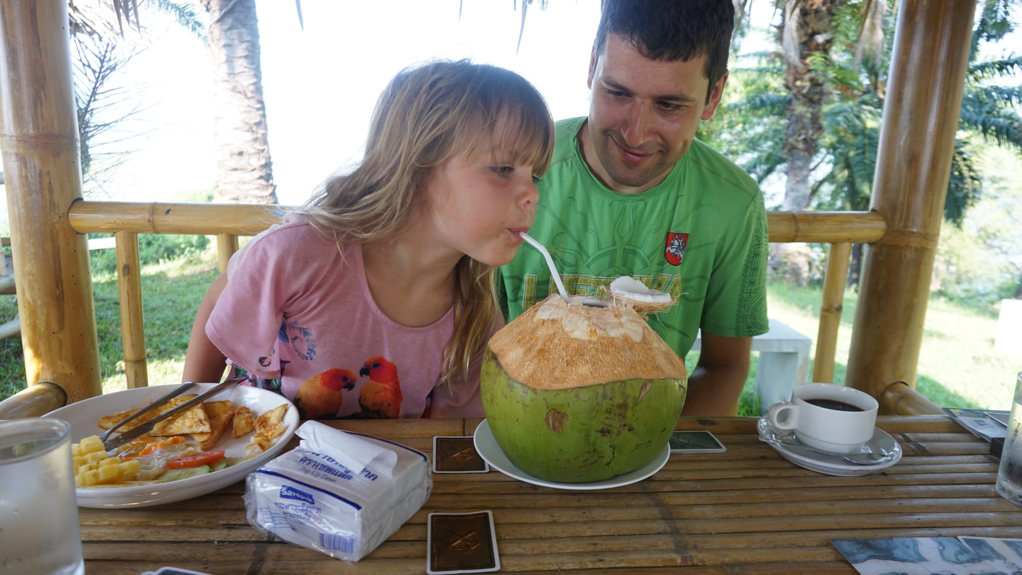 Penkioliktoji kelionės diena mums visada kažkokia krizinė. Būnam gana pavargę nuo aktyvių kelionių ir įspūdžių, netgi gana suirzę. Tad tą dieną su vaikais likome kondicionuojamame wasana resort namelyje, kalbėjomės, išdykavom ir žaidėm stalo žaidimus. Tuo tarpu Justas aplankė dar vieną iš krioklių. Vakare netoliese išsirengėme nusimaudyti tokiam nekokiam paplūdimyje, nusekusiame ir grįždami atgal pamatėm, kaip treniruota beždionė skina kokosus. Netikėjom, kad taip būna, kai Justas pasakojo, bet pamatėme savo akimis. Tik penkios fotkės 😄