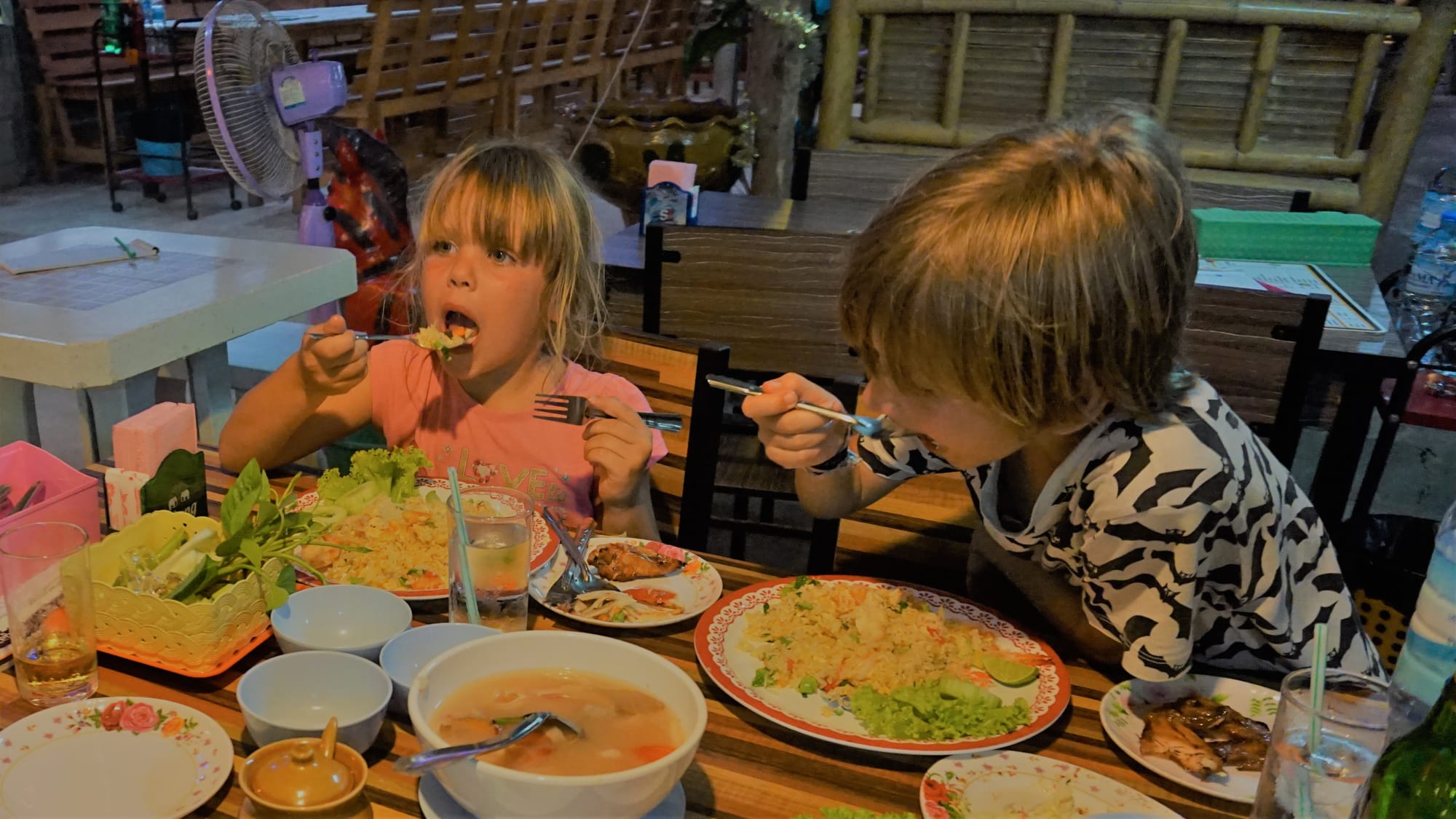 We left Ranong province on the sixteenth day of our holidays and started moving back to Krabi, where we will have a flight to Bhangkok in few days. Trip to Ao Luek Paradise, where we are staying for few nights, was 6 hours longs with all the short stops. We had a stop at Khao Lok Beach, where we met a lot of tourists on shezlongs (we haven ‘t met a lot of them recently in the places we have visited). Then we have visited one of the temples as kids really like them. Finally, we have reach Ao Luek town, where we had a nice dinner and stayed in Ao Luek Paradise, full of young couples, music, very clean and cosy.