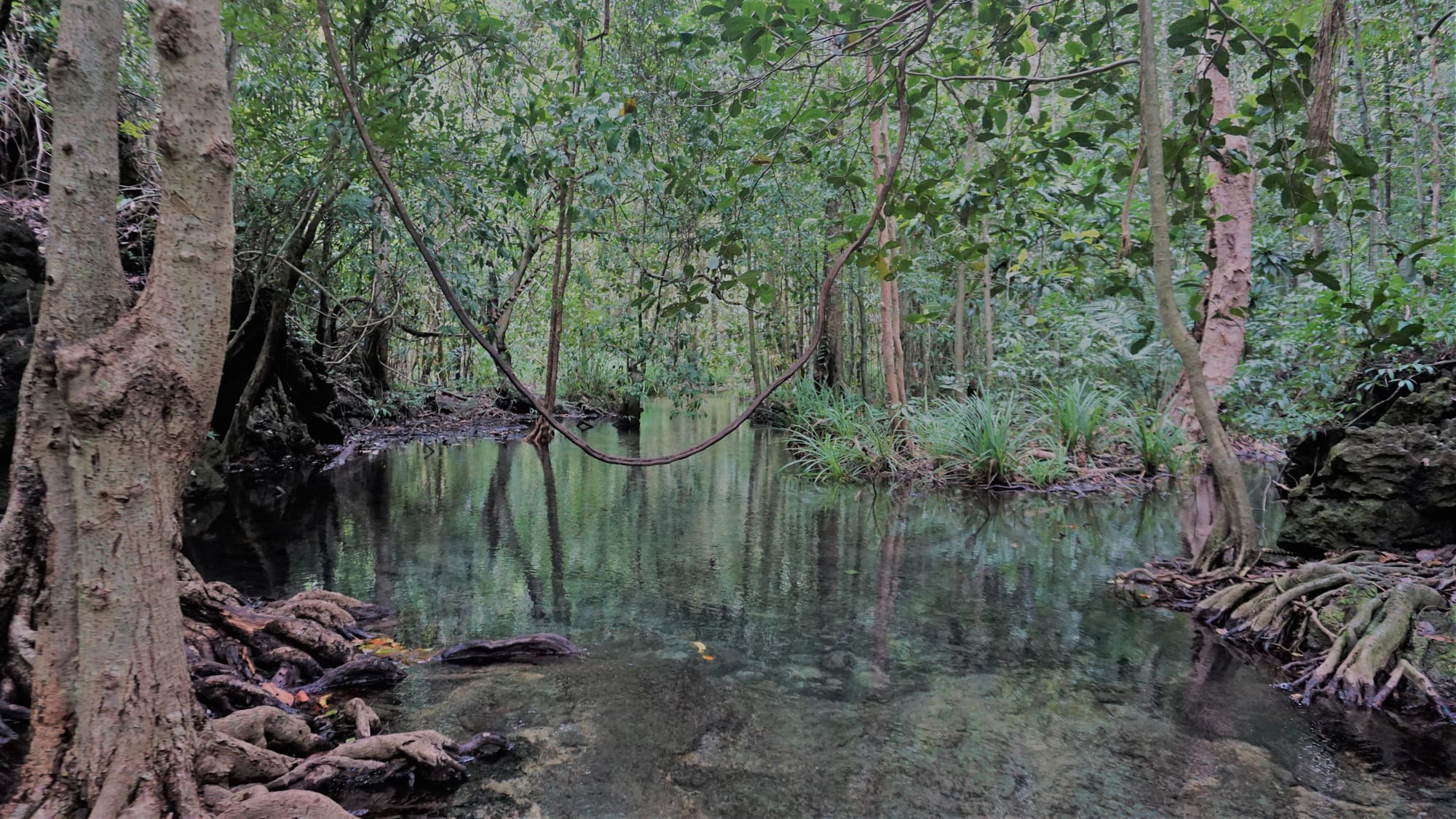 On the last day in South Thailand we were also quite tired. We had a short trip to have a breakfast in a nice place with a beautiful view, there was also an amazing temple, but on under construction. We spent the rest of the day in the bungalow reading and eating fruits. Justas managed to visit a small lake in the jungle.