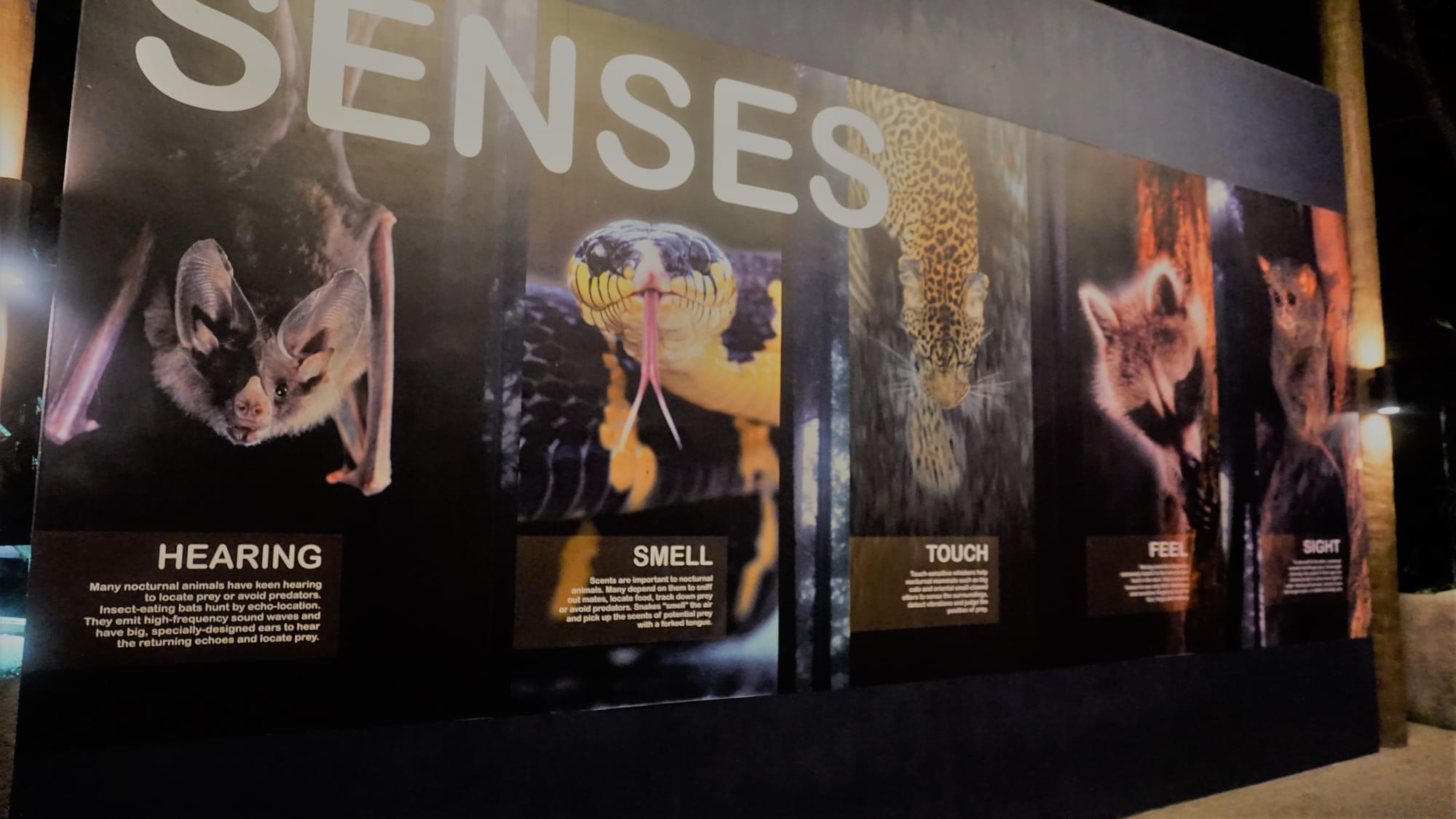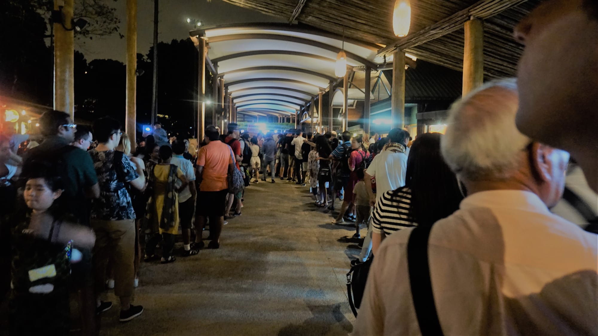 Paskui pavakarieniavome vėl viename iš hawker centrų ir judėjome dar toliau už miesto, į zoologijos sodą, kur turėjome bilietus į naktinį safarį nuo 19 val. Na o tada mes stovėjome eilėse vėl ir vėl. Žinoma, švenčių periodas, na bet tokių mes nematėm ir tokio neorganizuotumo taip pat. Pirkom bilietus internetu, bet virš valandos stovėjome eilėje, kad pasiimti fizinius bilietus. Įeiti mums buvo leista 21.15 ir kad tą padaryti, reikėjo vėl stovėti eilėje, o kad nuskenuoti bilietą, dar vienoje. Tada dar vienoje, kad patektum į traukinuką ir t.t. ir t.t. Tad įspūdis buvo gan nekoks nuo pat pradžių.