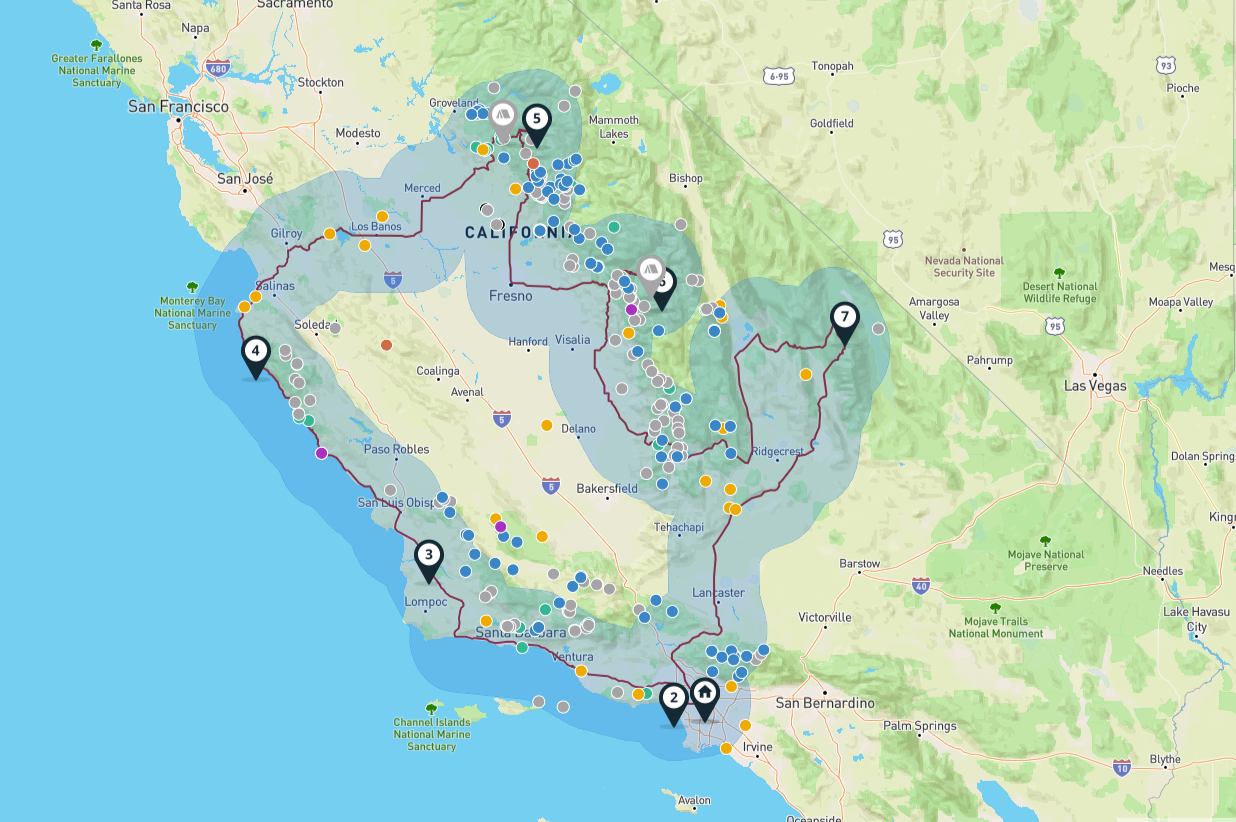 Į Kaliforniją skridome per Frankfurtą ir leidomės Los Andžele. Ten pirmąją dieną praktiškai skyrėme pripratimui prie vietinio laiko ir įsikūrimui per airbnb surastame kambaryje Los Andželo pakraštyje. Išsinuomavome kabrioletą ir nemažai laiko Los Andžele praleidome tiesiog kamščiuose.