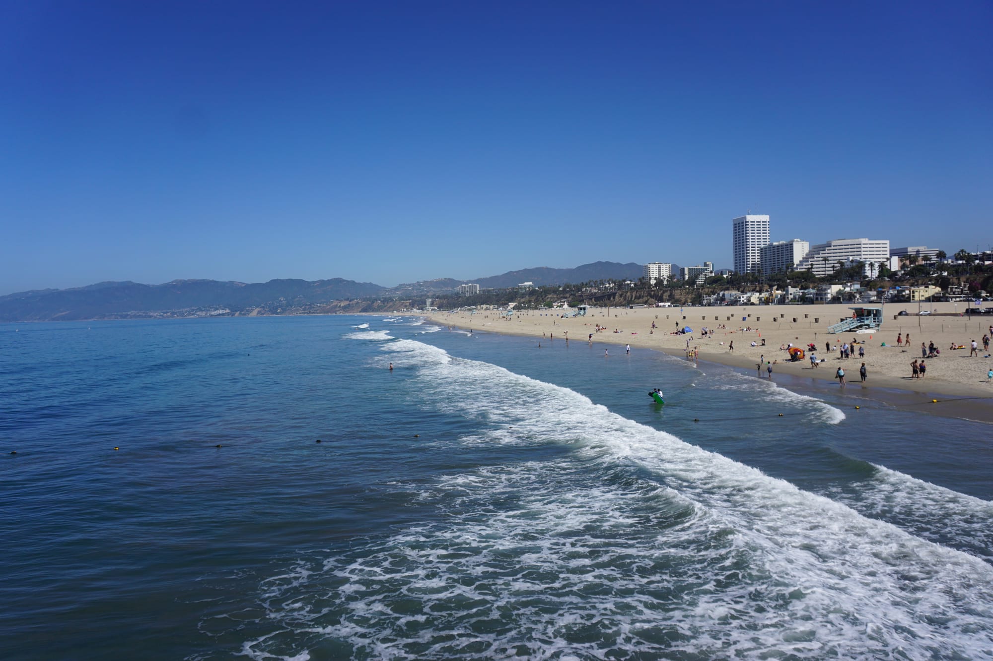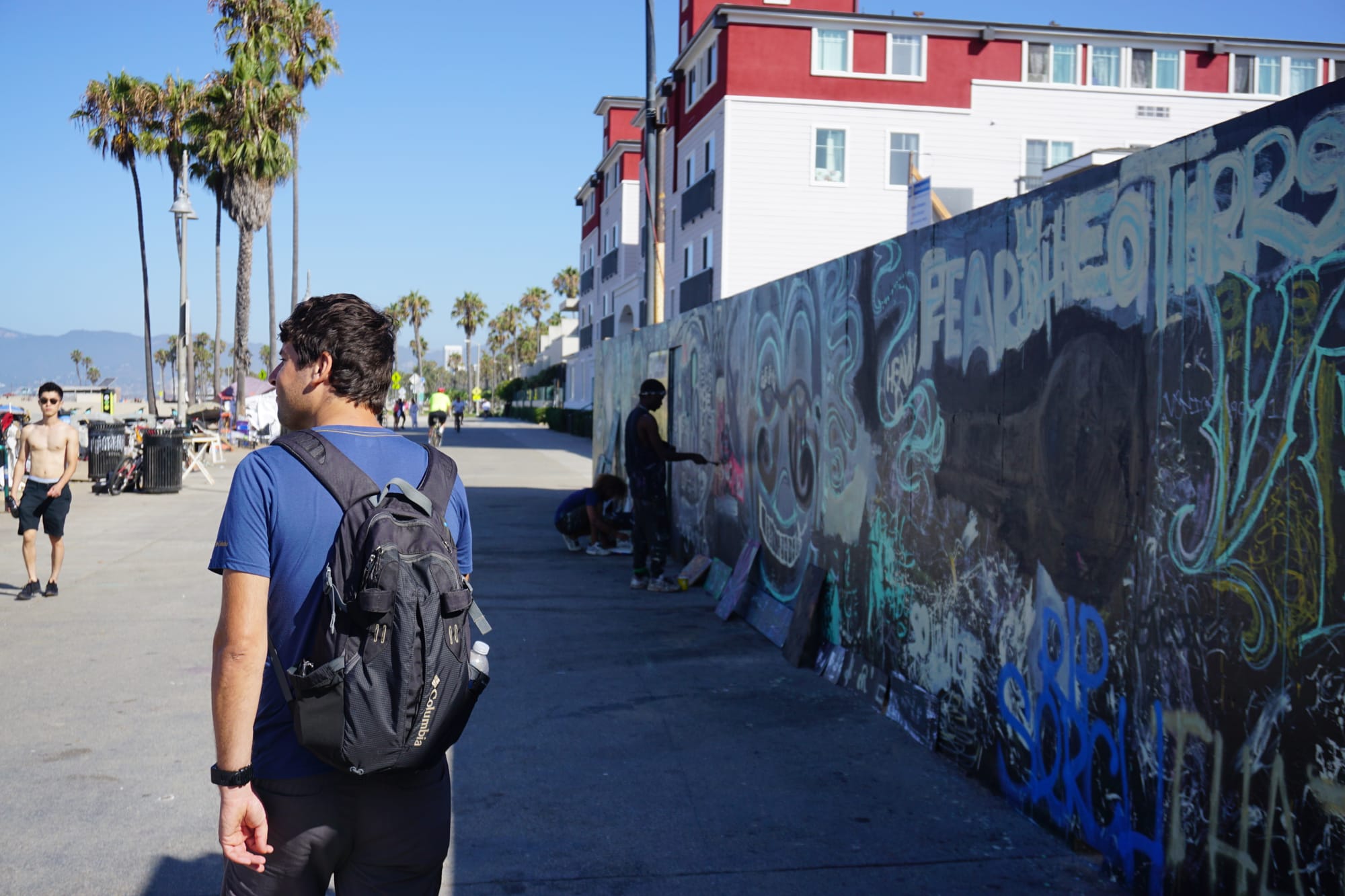 Mūsų kelionės tikslas buvo labiau gamta nei miestai, tad Los Andžele praleidome tik vieną pilną dieną. Ir visai nesigailėjome, džiaugėmės ištrūkę iš kamščių ir karščio. Pirmiausia nukeliavome į paplūdimius - Santa Monica ir Venice, nes troškome įmerkti kojas į vandenyną. Tikrai patiko ten pasivaikštinėti ir pasimaudyti, nors nemažas kiekis benamių badė akis. Įdomu dar ir tai, kad ten yra įkurta savotiška "Venecija", kuri toli gražu ne tokia gera kaip tikroji.