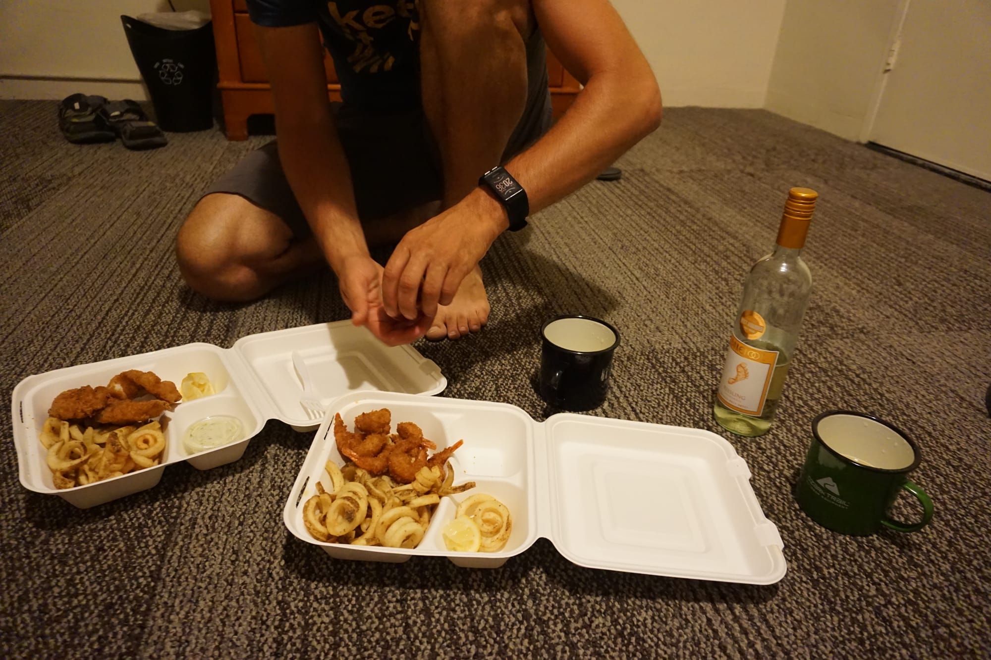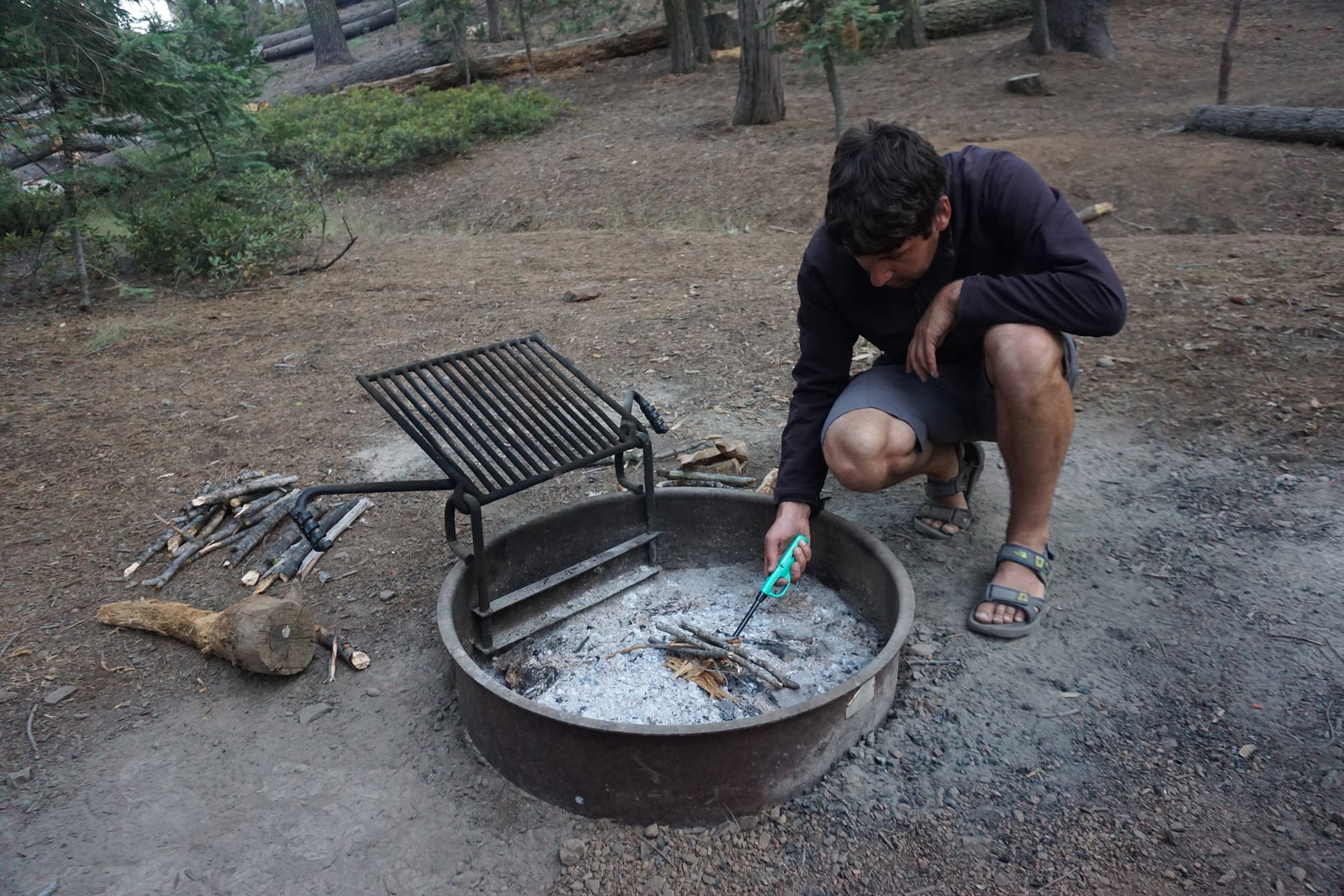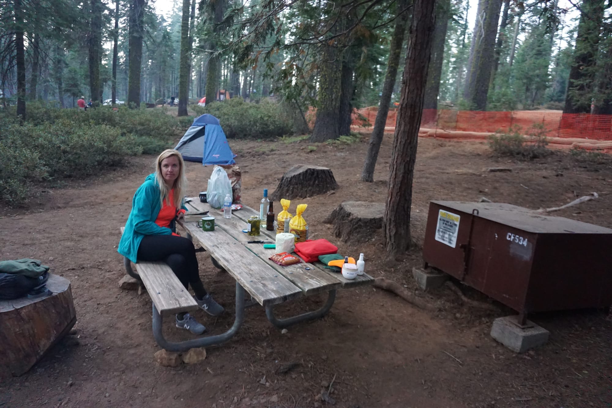 Tuomet mes dvi naktis nakvojome tokiame tarsi kempinge, bet jis be patogumų, tiesiog stovyklavietė su vieta palapinei, laužaviete, stalu ir dėže, į kurią reikia sudėti maistą ir kosmetiką, kad nerastų meškos.