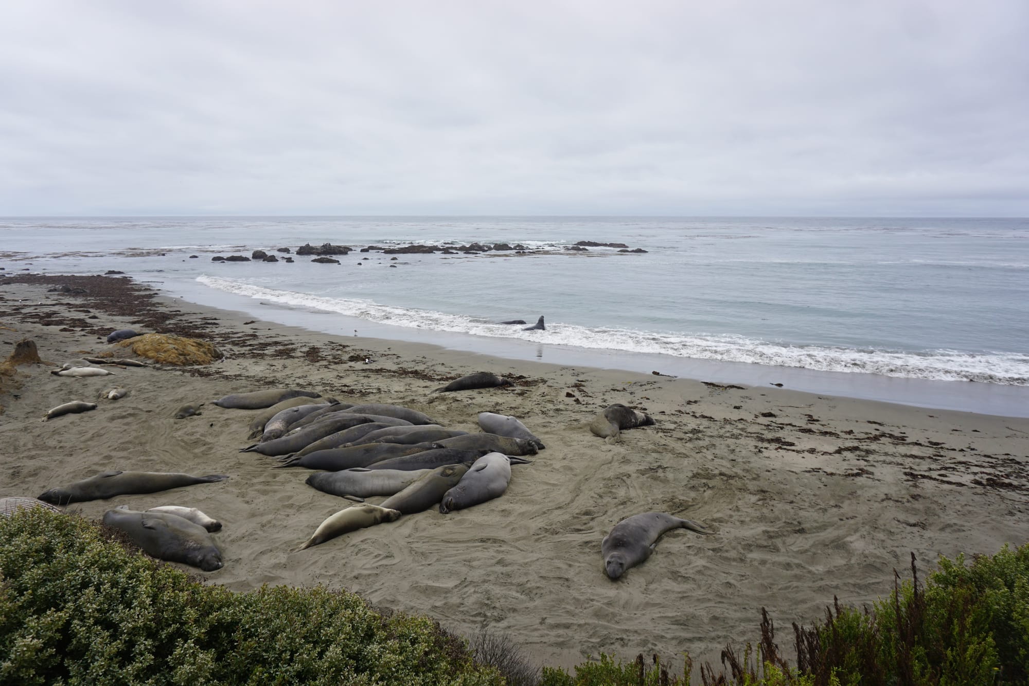 We were usually sleeping until 7am, I think, that we had a jet lag the whole trip. We left Pismo Beach and spent one day driving by the amazing coast. We saw sea lions resting, visited one of the most popular Brixby bridges, waterfalls and saw a lot of very blue water. We stopped at Monterey for a night - small and cosy fishing village with sea lions under the pier, getting ready for the night sleep.