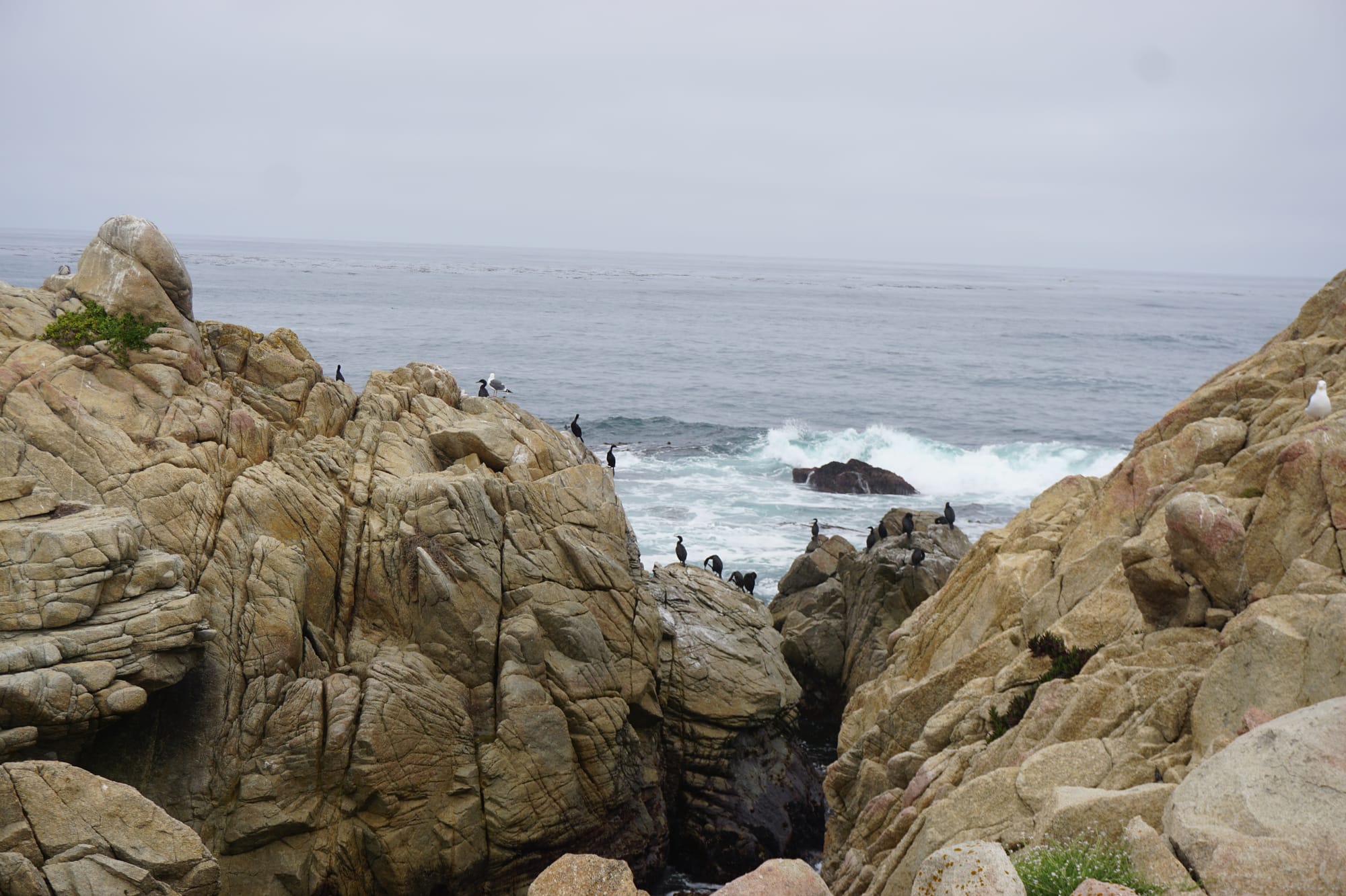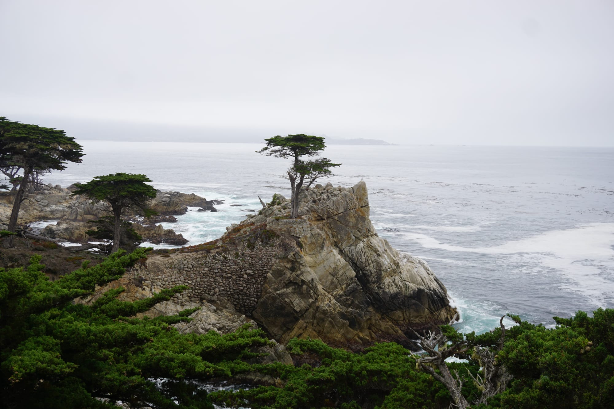 Kitą rytą leidomės į 17mylių mokamą kelią, einantį per Monterey pusiasalį. Labai gražus, ramus kelias, su nuostabiais vaizdais tiek į mišką, tiek į vandenyną. Nuotraukoje su tokia uola matysite, kad ji visa aplipusi ruoniais.