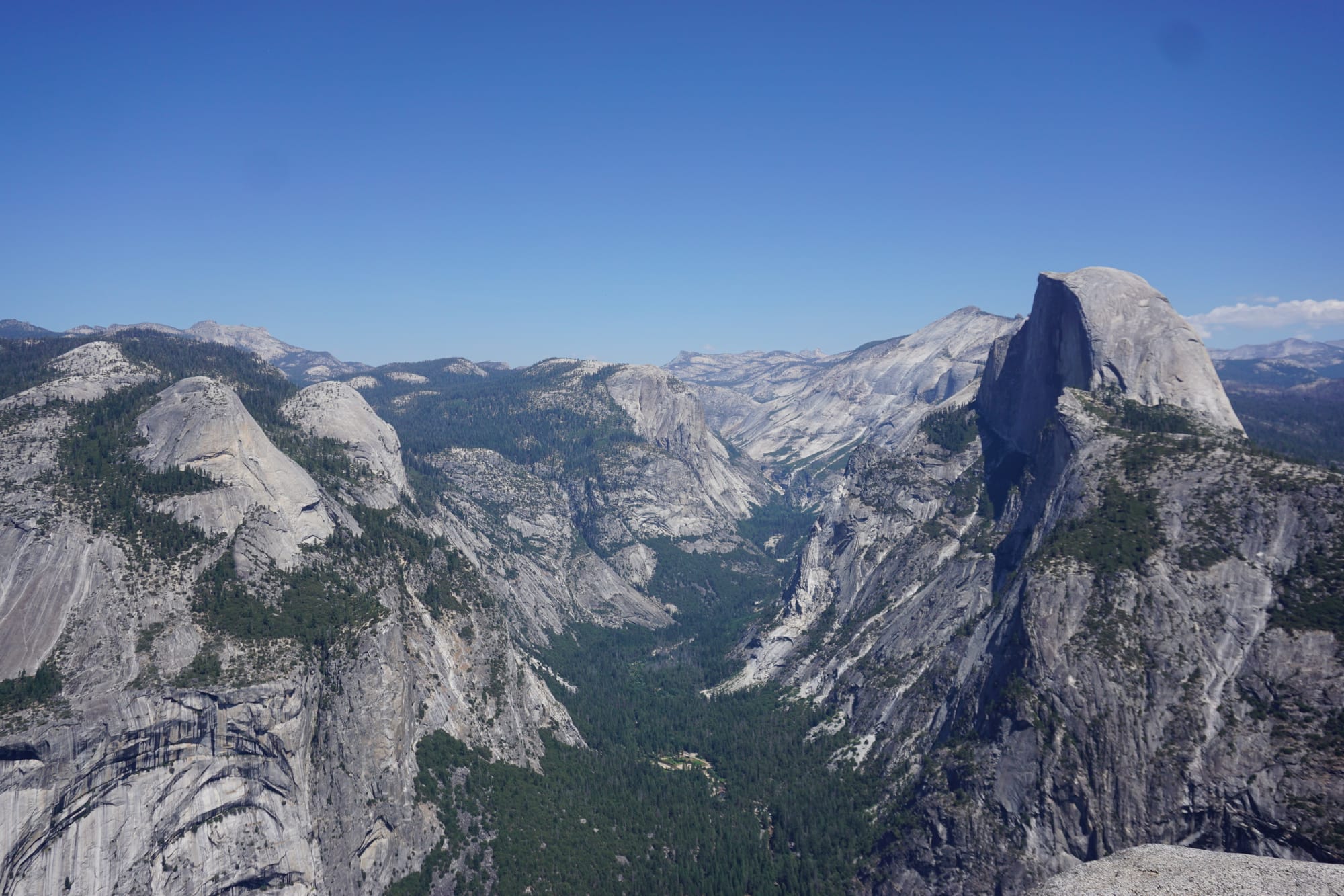 Ir tuomet mes nukeliavome į kalnus! Yosemite Nacionalinis parkas yra tikras gamtos stebuklas, bet ir žmonių buvo gana nemažai. Pradėjome nuo aukštybėse esančio Glacier taško, nuo kurio matosi pagrindinės parko grožybės - Half Dome uola, El Capitan uola ir Yosemite slėnis apačioje.