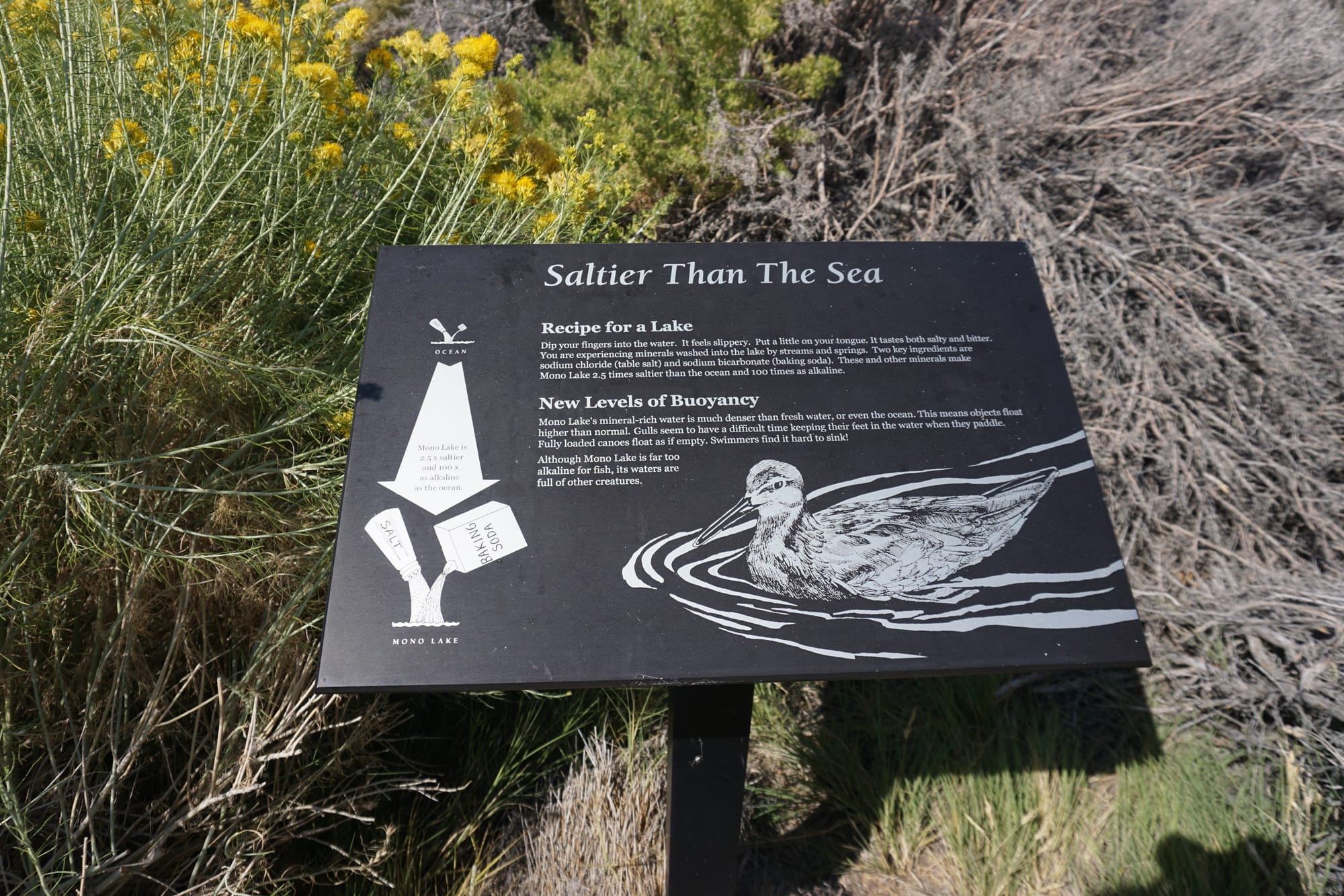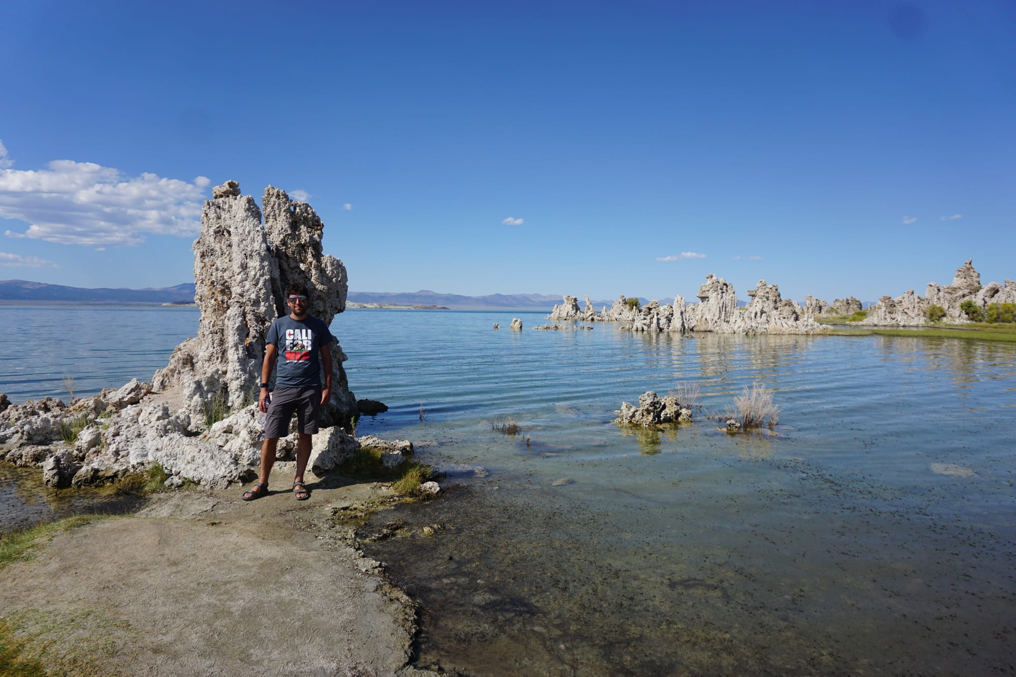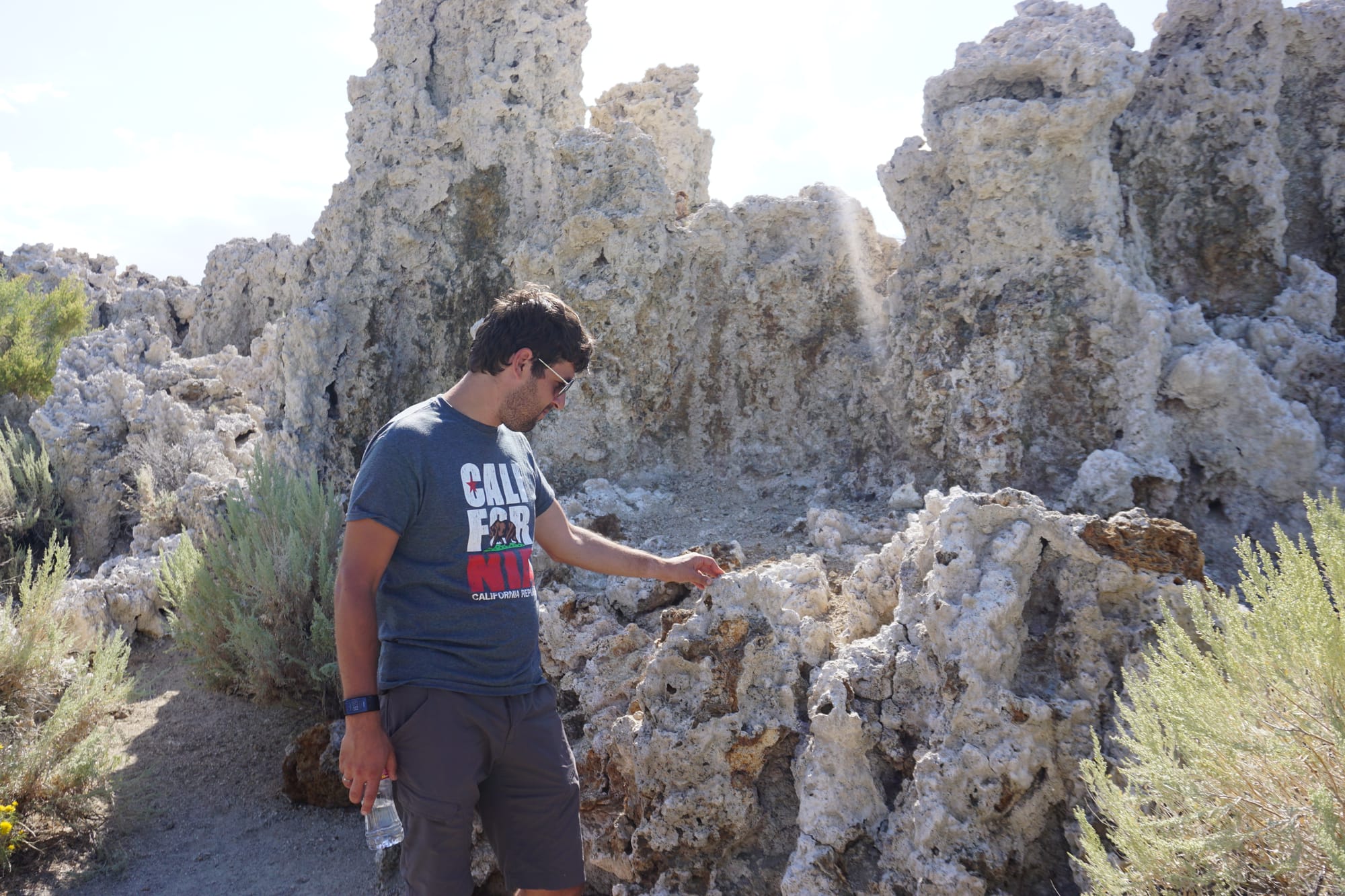 Tą dieną šiek tiek išvažiavome iš parko, kad aplankytume Mono Lake. Įdomus jis tuo, kad kadaise čia buvo jūra, todėl ežeras yra sūrus, bene keturis kartus sūresnis už vandenyną. Dėl to prie ežero formuojasi įspūdingi druskos stulpai. Mistinis tas toks ežeras, su keista smulkia flora ir fauna.