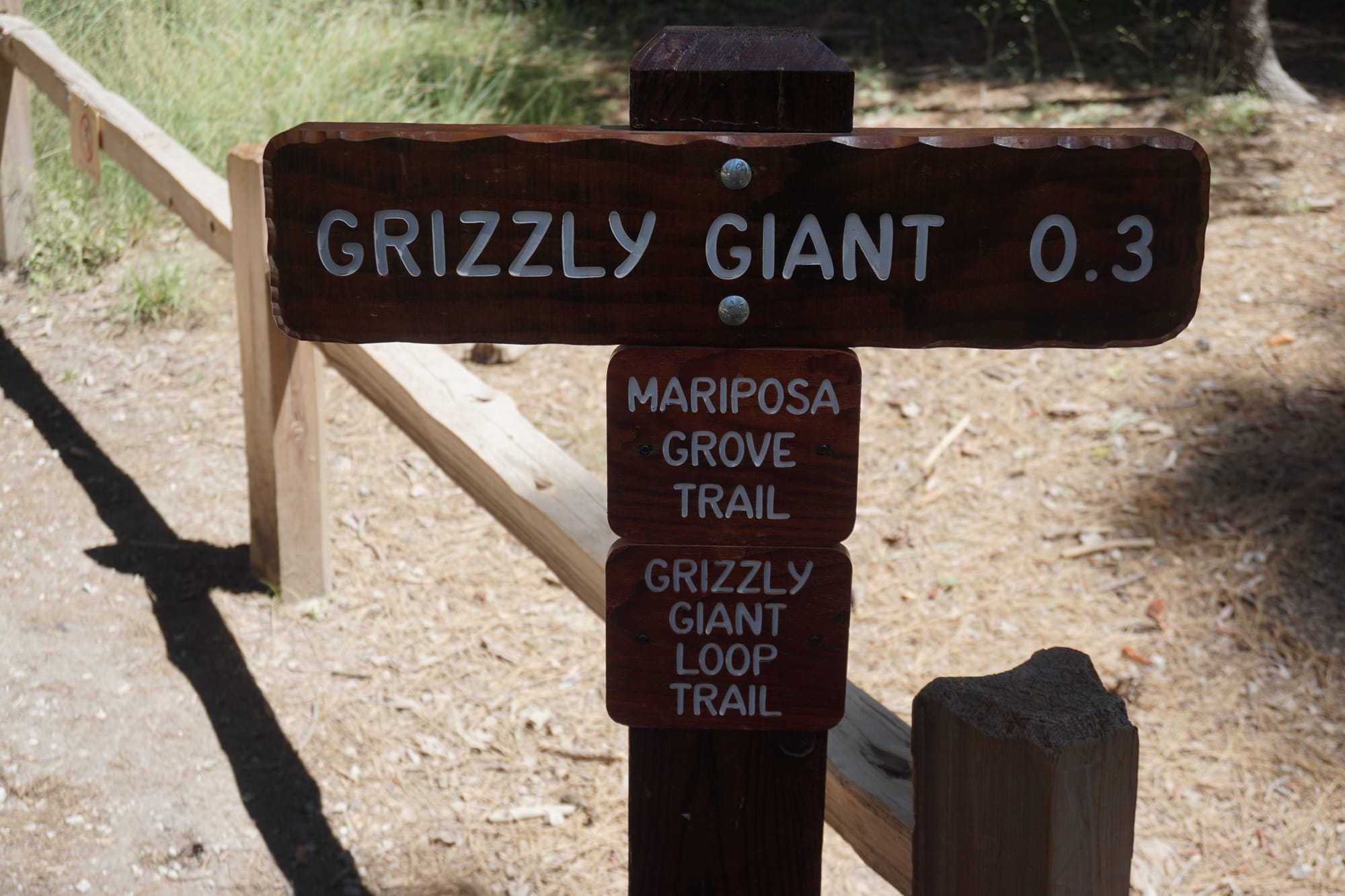 Yosemite pakraštyje yra Mariposa Grove, kur galima pamatyti keletą nemažų sekvojų. Vieną iš jų, Grizlį, ėjome pamatyti.