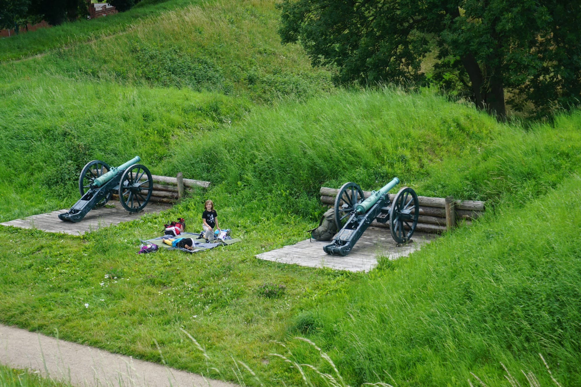We took the train and started our trip from Birkerød to Fredericia without any stops, so it was our first stop in Jutland. We have spent only few ours in Fredericia, had a walk, visited cemetery and a fort, where we had a short break next to the cannons.