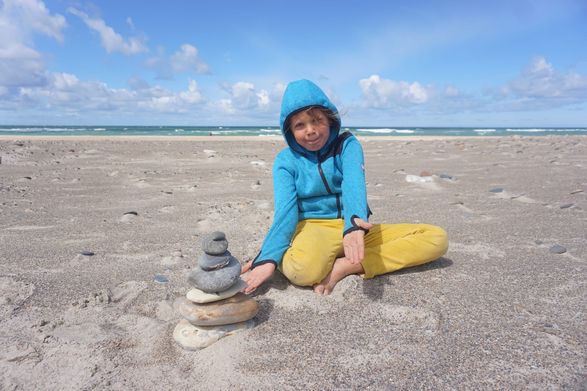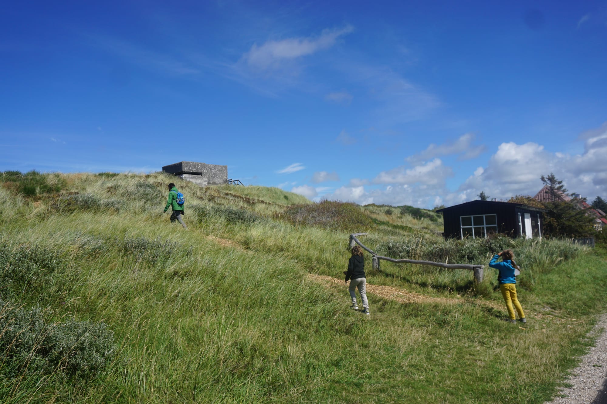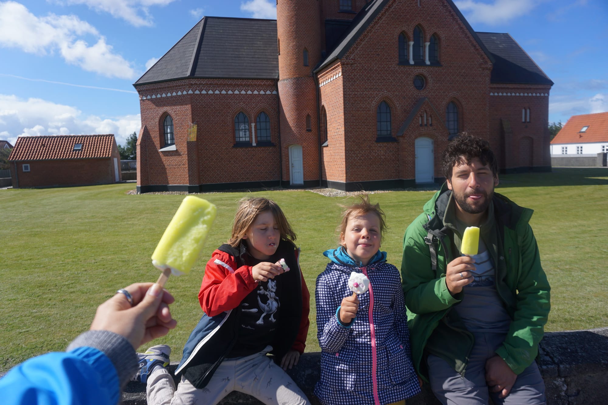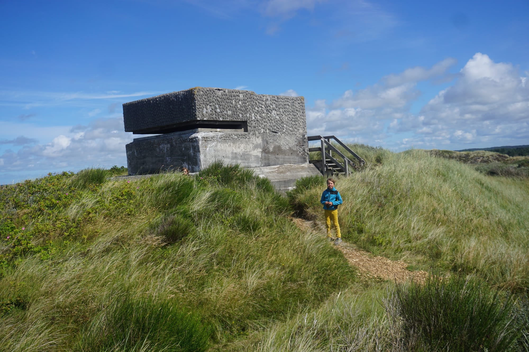 Next morning we had a hike by the sea and small hills, where we found also some interesting bunkers that are hidden here from World War II. Kids were doing great (also all other days, when we walked a lot of kilometers per day with all those backpacks). We have reached a town called Stenbjerg and took a bus back to Vorupør from there. All these small towns remind me of villages in Lithuania – there is always a church, few nice houses and silence.