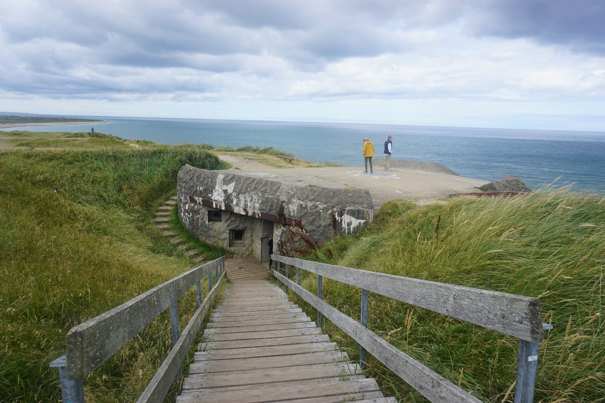 Ryte (mūsų nenupūtė) leidomės į žygį pajūriu ir kopomis, aplankydami bunkerių liekanas, kurių ten labai daug ir tiesiog mėgaudamiesi kopomis. Vaikai puikai laikėsi (ir visas kitas dienas toliau, kai kartais reikėjo eiti ne vieną ir net ne penkis km per dieną su kuprinėmis ant pečių). Ėjome iki Stenbjerg miestelio, iš kurio grįžome autobusu. Tie maži miesteliai (iš šiaip visi Jullando laukai ir slėniai) man labai primena Lietuvą – tokie bažnytkaimiai, kuriuose labai tylu, bet tvarkinga.