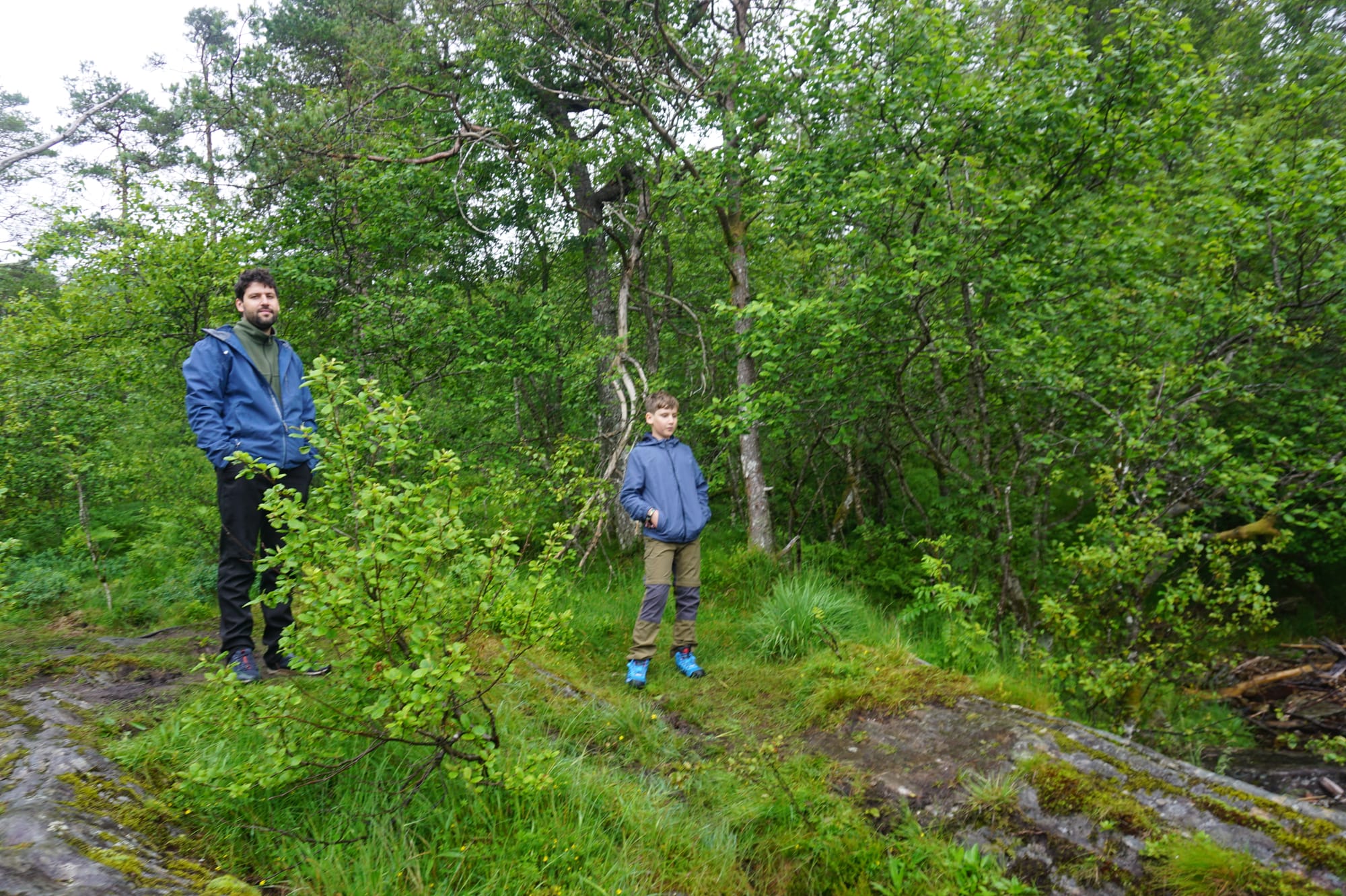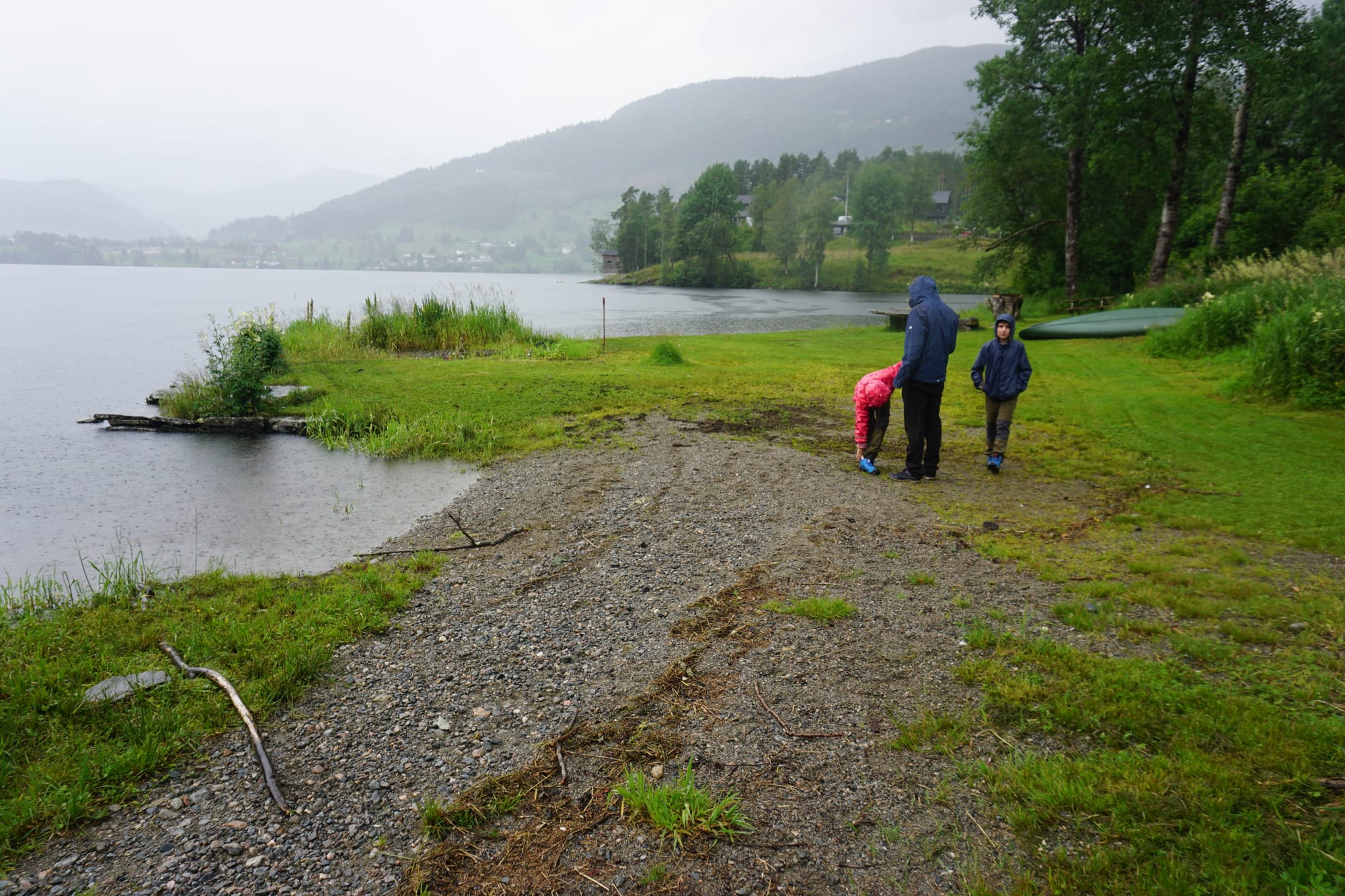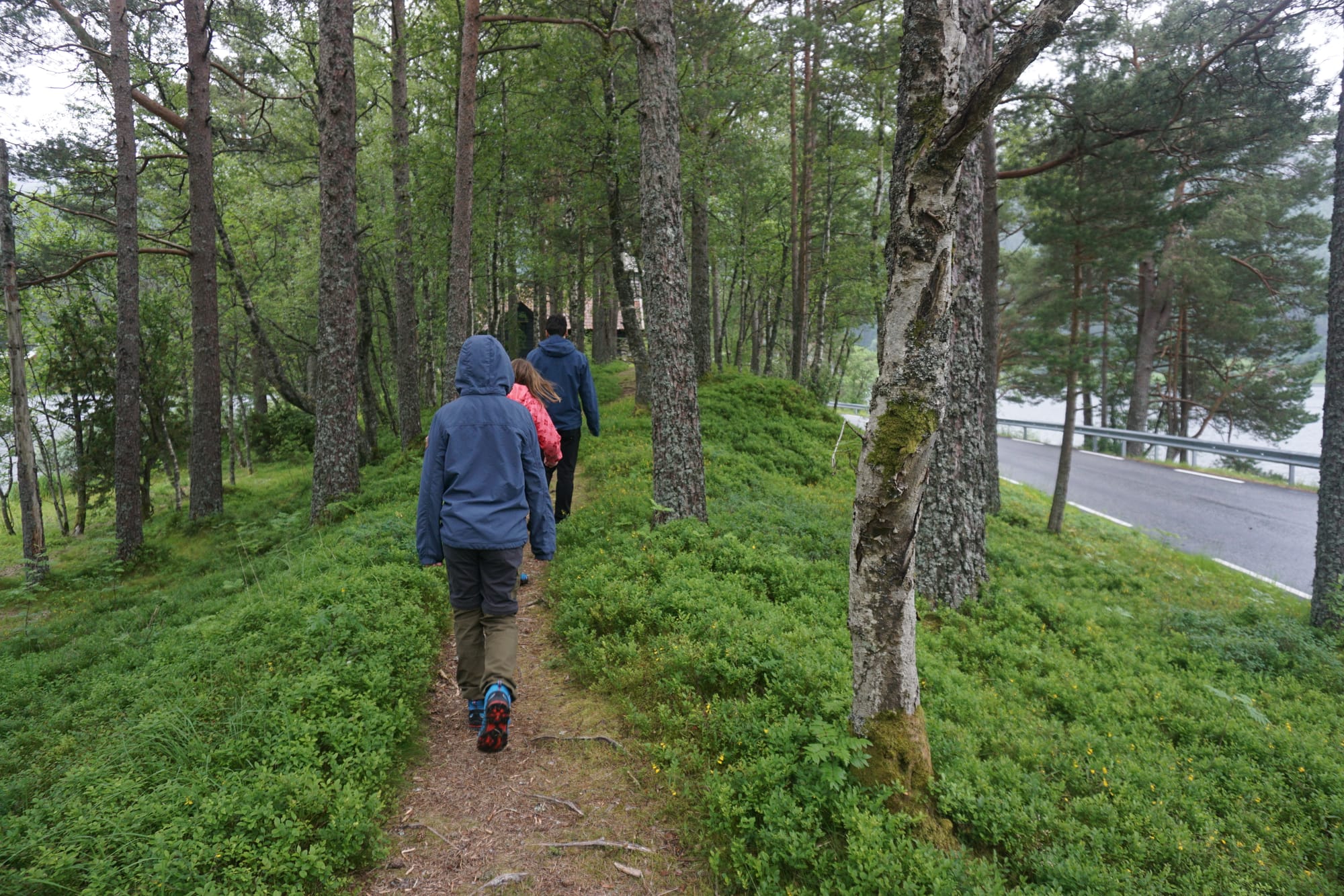 Pirmiausia, susiradome namelį Vik miestelyje savaitei, 7 valandos kelio nuo Oslo, tad pakeliui pernakvojome mažutėlyje namelyje kempinge pakeliui, Vang komunoje. Atvykę į Vik apsistojome namelyje (jis matosi paskutinėje nuotraukoje viršuje) ir ten tiesiog ilgai miegojom, skaniai valgėm, slėpėmės nuo lietaus ir kasdien ėjom bent mažą žygelį. Aplankėme nedidelius Sande ir Førde miestukus, įvairiausius oficialius ir neoficialius pasivaikščiojimo takus. Vaikai pazyzdavo prieš, bet paskui jiems patikdavo ir kuo daugiau iššūkių kelyje, tuo patikdavo labiau.