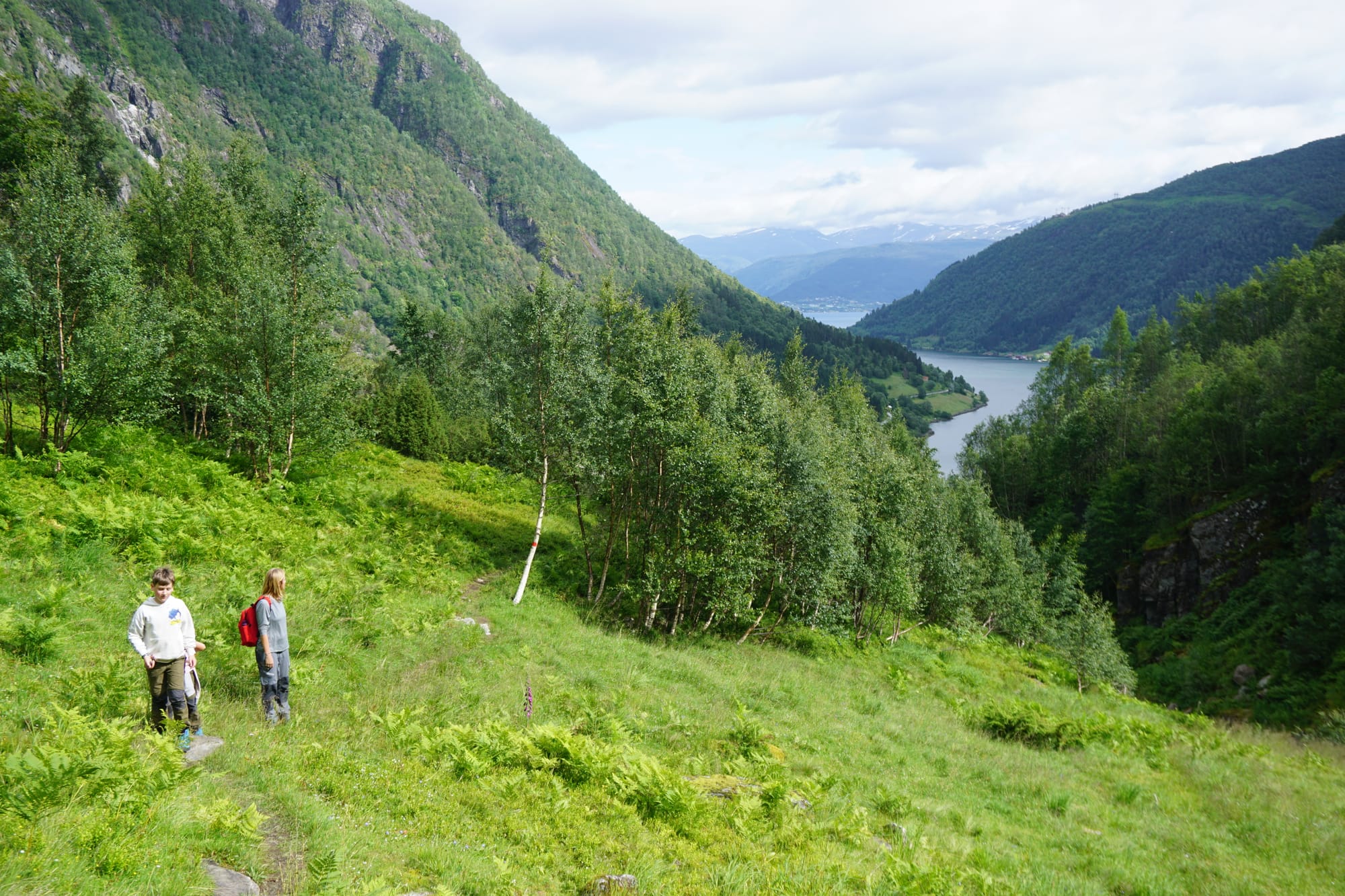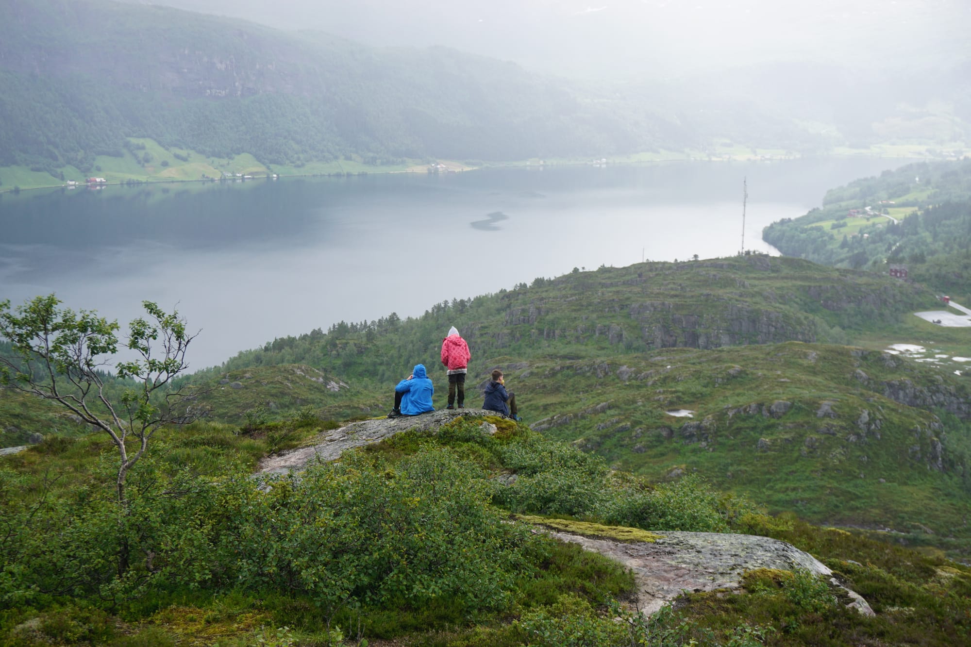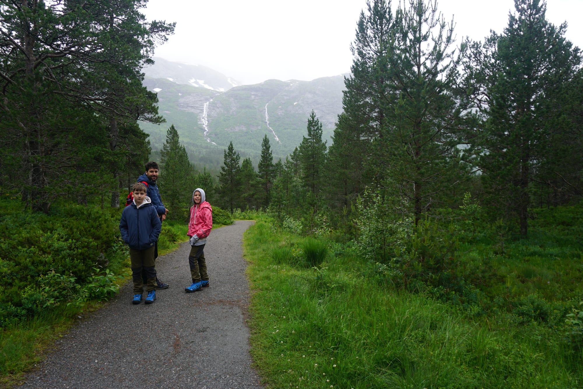 Pirmiausia, susiradome namelį Vik miestelyje savaitei, 7 valandos kelio nuo Oslo, tad pakeliui pernakvojome mažutėlyje namelyje kempinge pakeliui, Vang komunoje. Atvykę į Vik apsistojome namelyje (jis matosi paskutinėje nuotraukoje viršuje) ir ten tiesiog ilgai miegojom, skaniai valgėm, slėpėmės nuo lietaus ir kasdien ėjom bent mažą žygelį. Aplankėme nedidelius Sande ir Førde miestukus, įvairiausius oficialius ir neoficialius pasivaikščiojimo takus. Vaikai pazyzdavo prieš, bet paskui jiems patikdavo ir kuo daugiau iššūkių kelyje, tuo patikdavo labiau.