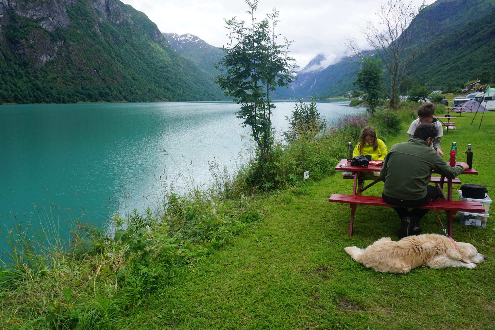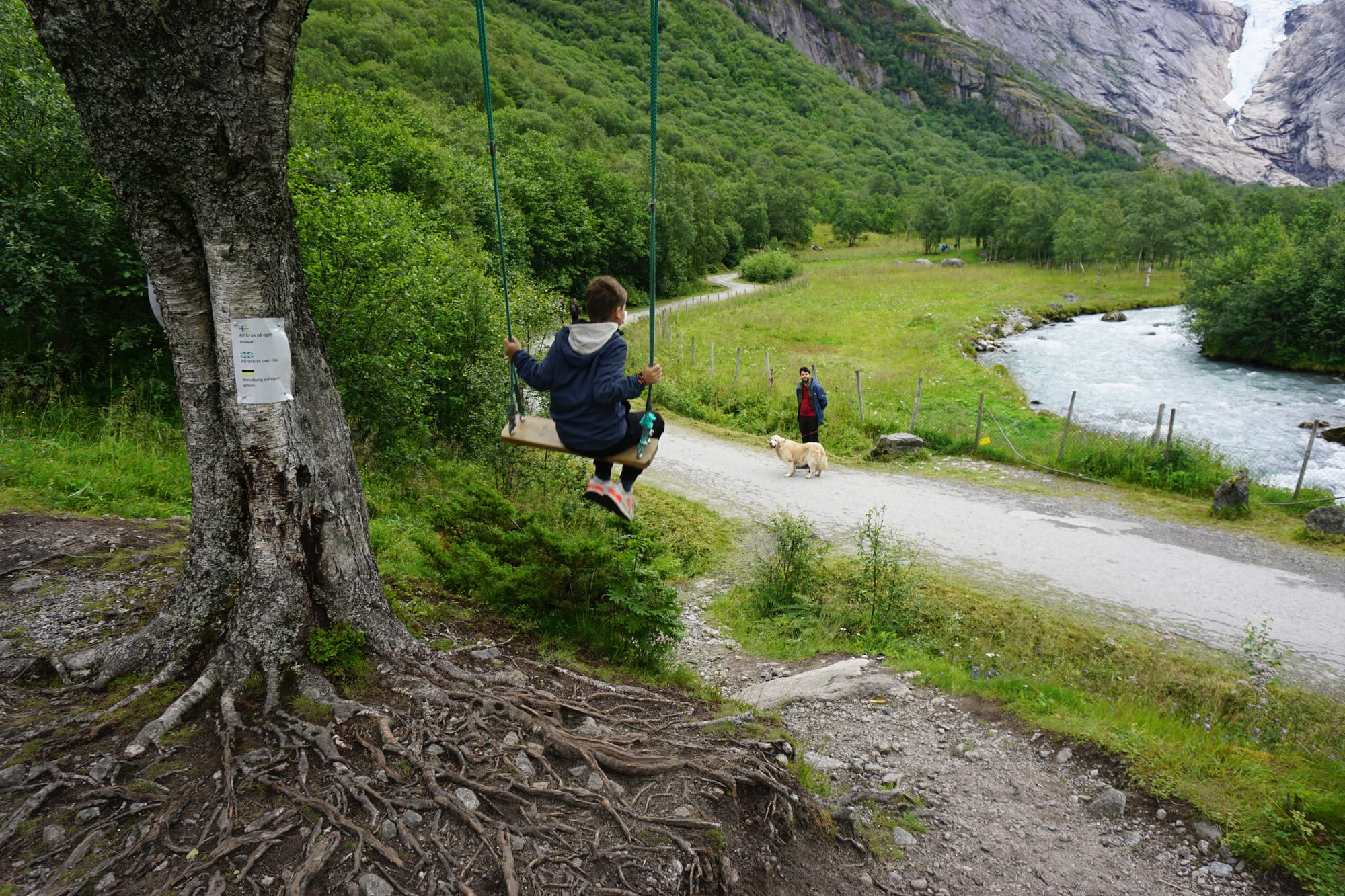 Tad važiavome ir stojome, kur atrodė, kad mums tinka. Keliaujant link Lillehamerio, užsukome į Olden miestelį, ten išsukome iš kelio aplankyti ledyno.