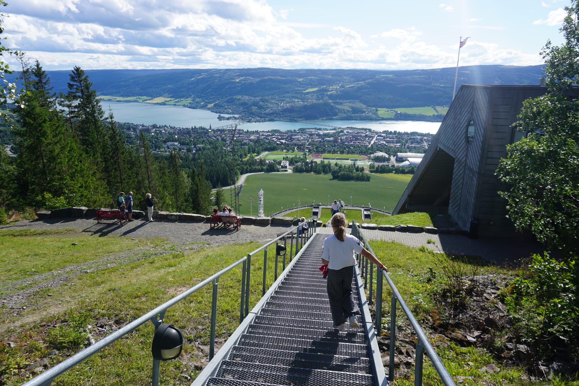 Lillehameris pasirodė mielas, nedidelis, jaukus miestelis, su išlikusiomis olimpiados liekanomis, mes nukeliavome iki senos šuolių slidėmis trasos, kur užkilome į kalną keltuvu pasigėrėti vaizdais ir pajausti aukštį. Kažkiek pasivaikščiojome ir po patį miestelį.