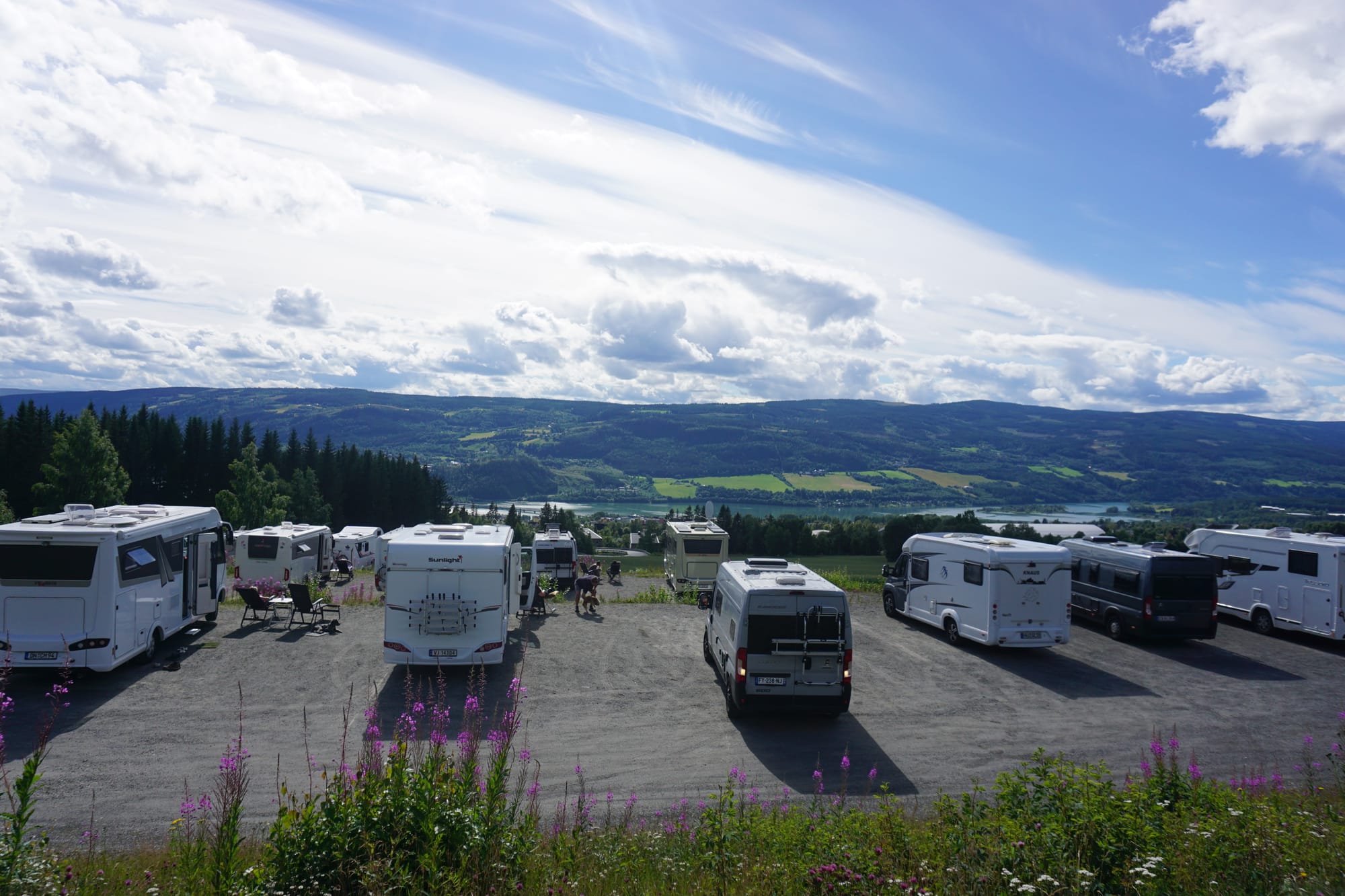 Toliau keliavome iki Lom miesto, vis sustodami palaipioti, pavaikščioti, buvom užkilę iki visiškai snieguotos viršūnės, kur galima slidinėti net vasarą. Lom jau sutikome daugiau žmonių, turistinių autobusų. Čia taip pat nakvojome kempinge palapinėj, bet dvi naktis iš eilės mirkome joje, tad ekspromtu ateinančioms kelioms nakvynėms susiradome namuką prie Lillehamerio, kad išdžiūt.