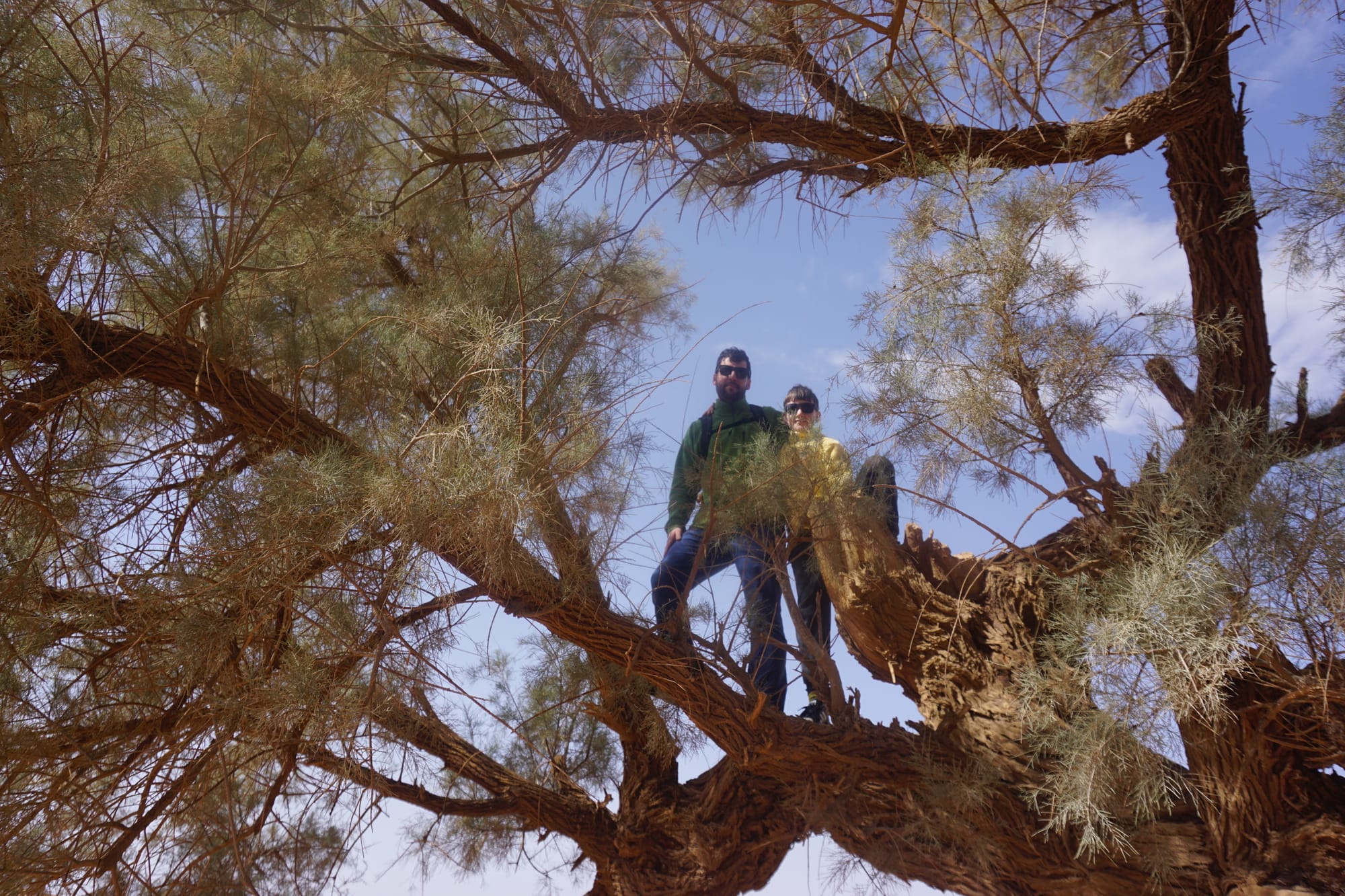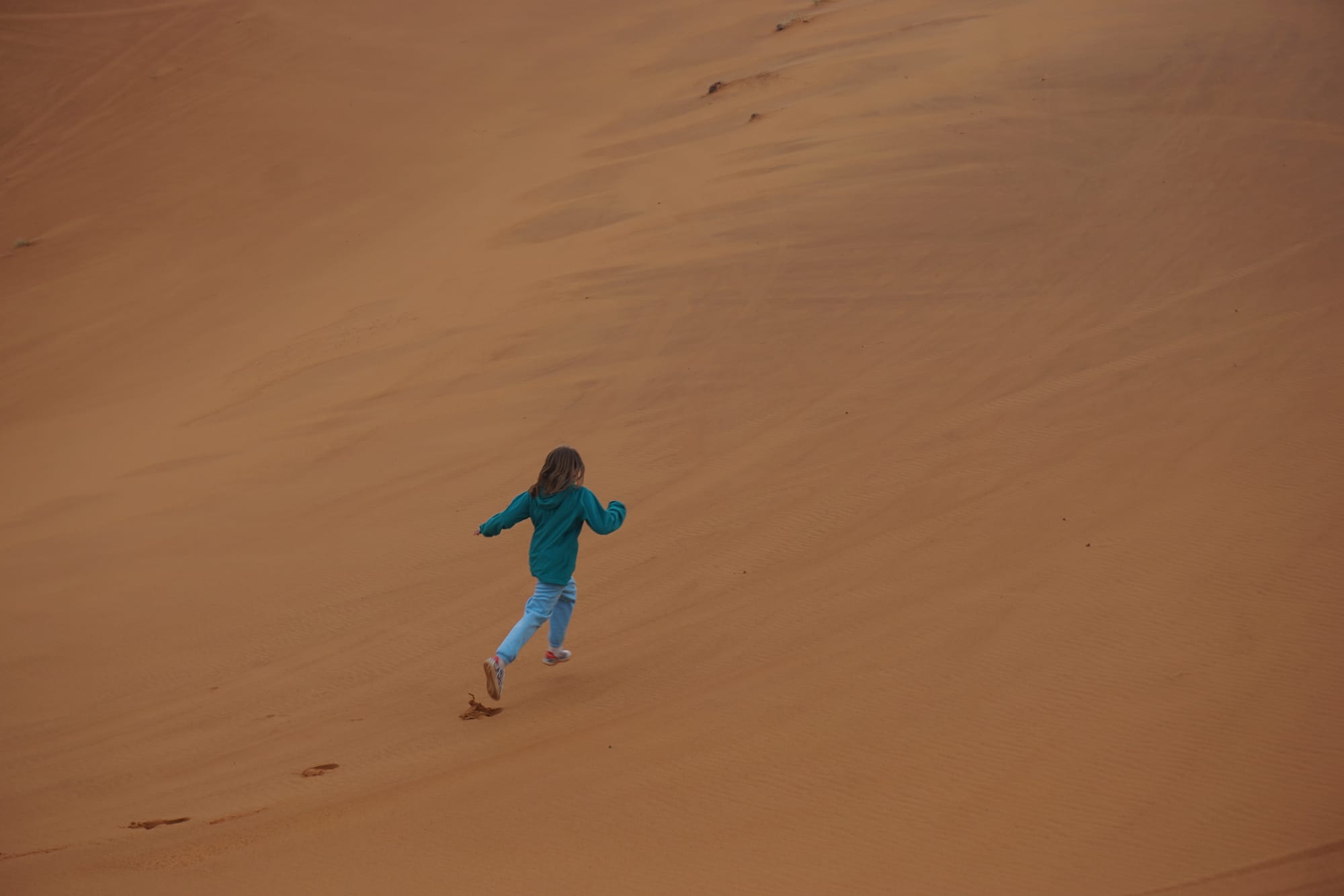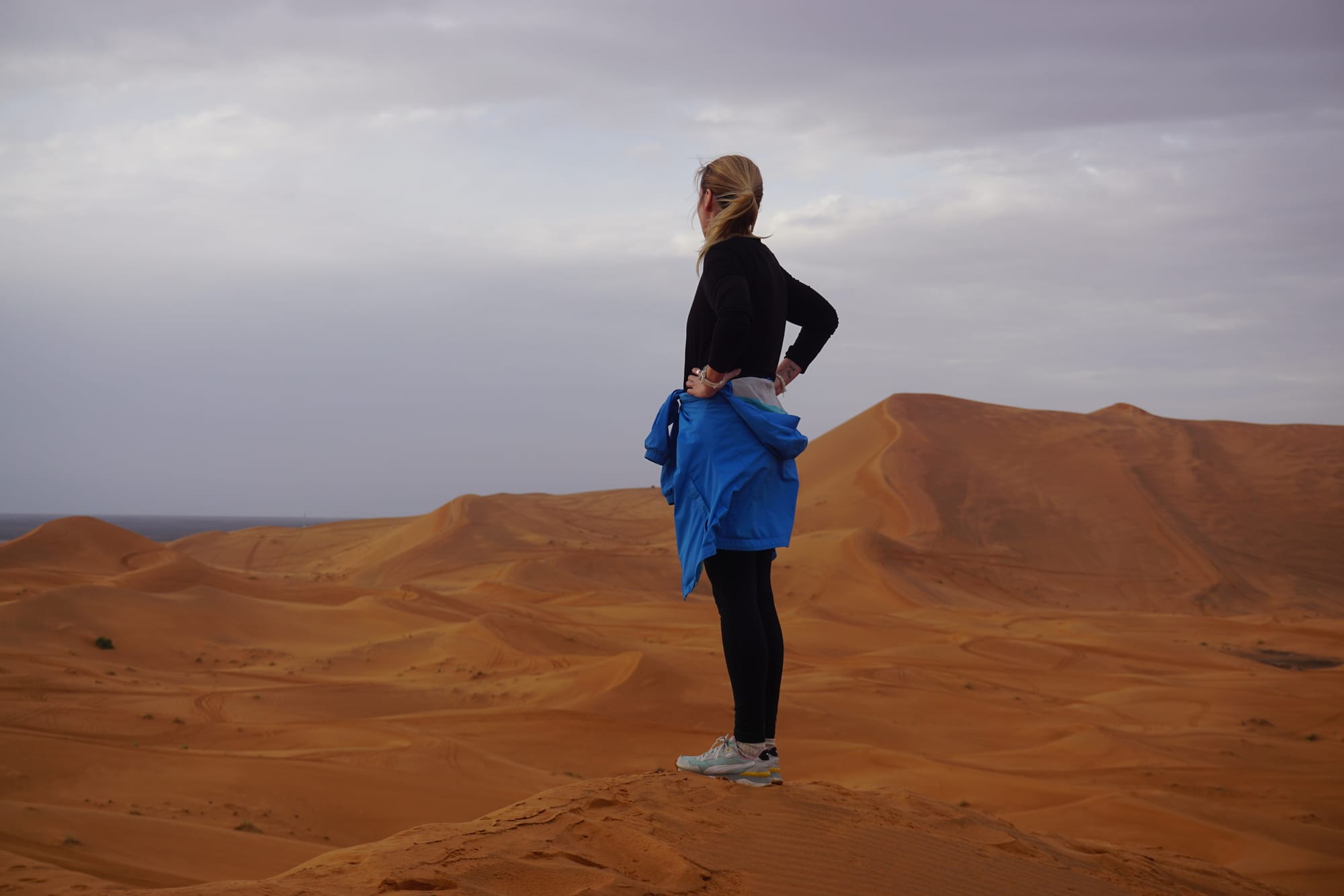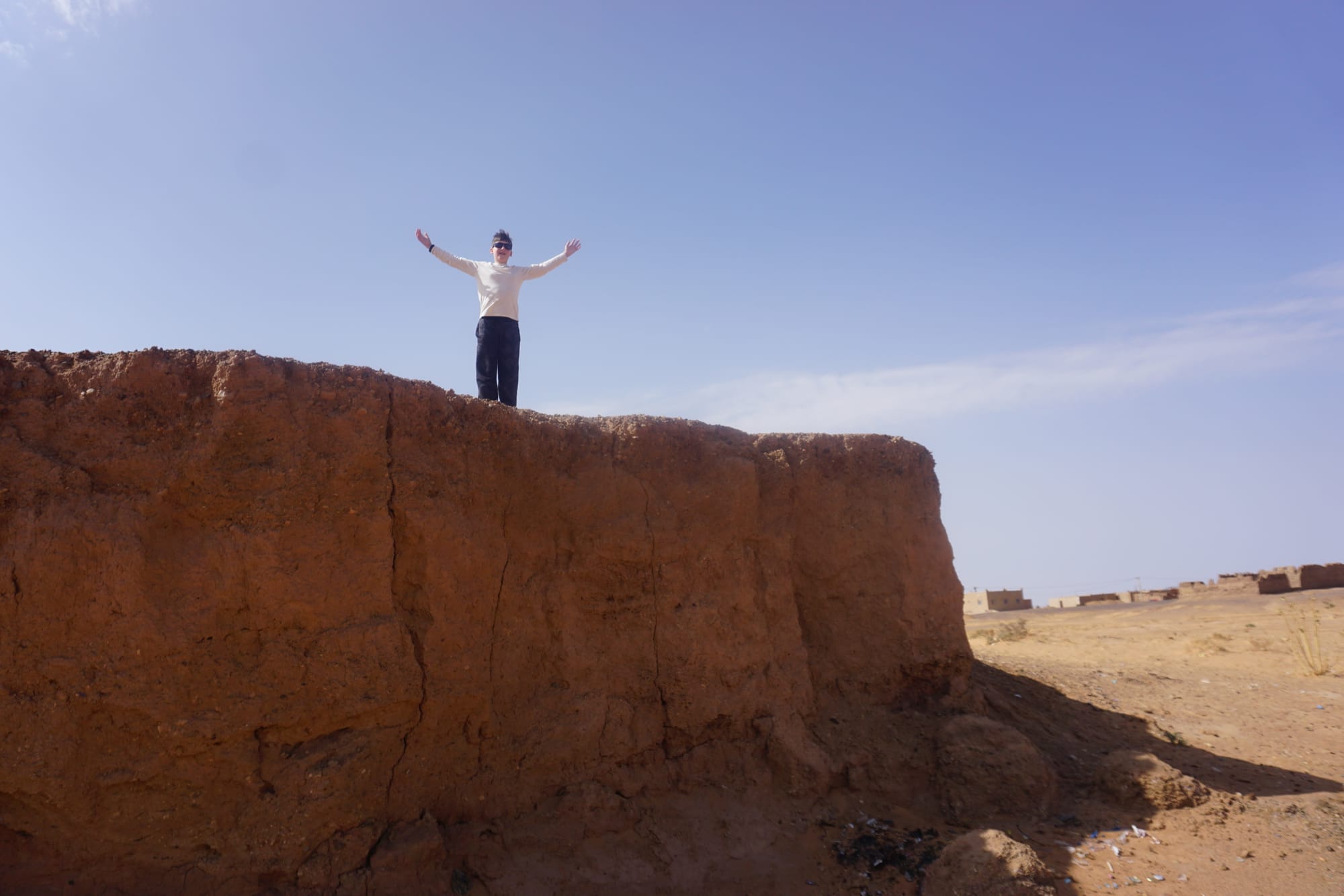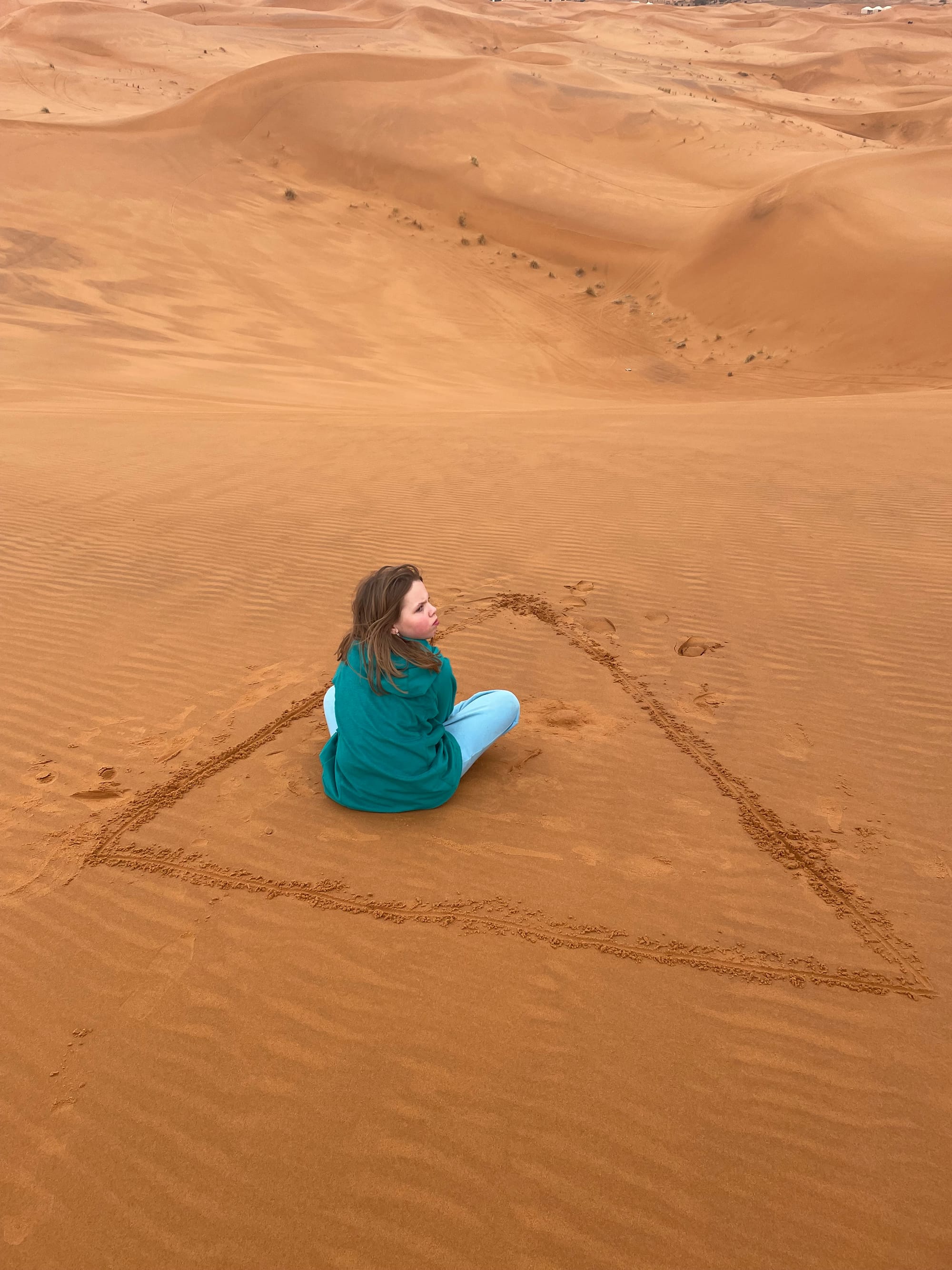 Po iššūkių pilnos kelionės nuo Essouiros iki Merzougos, pagaliau pasiekėme Saharos dykumą. Čia turėjome praleisti dvi naktis, tokioje palapinių stovykloje vidury dykumos, kur palapinės yra su patogiom lovom, dušu, tualetu ir maistu. Labai fainas konceptas, tik šaltoka buvo naktimis. Mus pasitiko Merzourga mieste ir džipu nuvežė apie 4km į dykumą. Ten pirmą vakarą įsikūrėme, pavakarieniavome ir susidėliojome rytojaus planą. Šią dieną dar lynojo, dykuma buvo šlapia ir apniukusi!